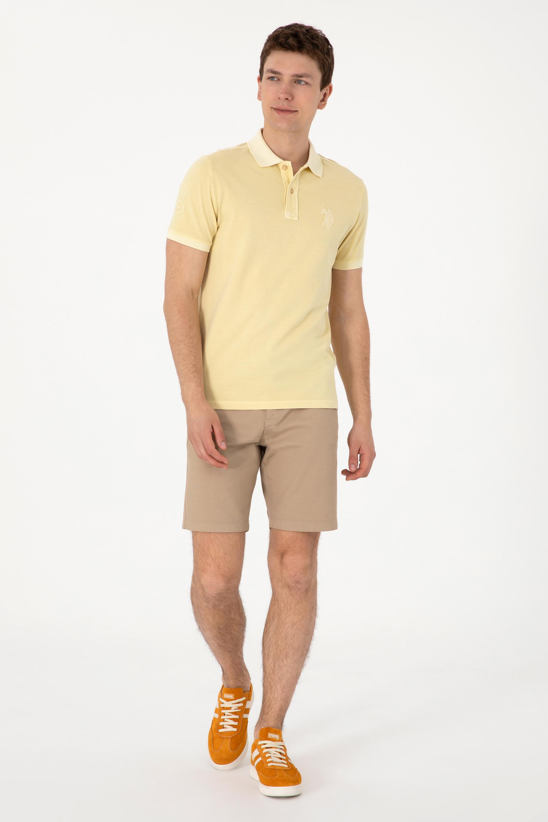 - Erkek Slim Fit Polo Yaka Açık Haki Yıkamalı Basic Tişört