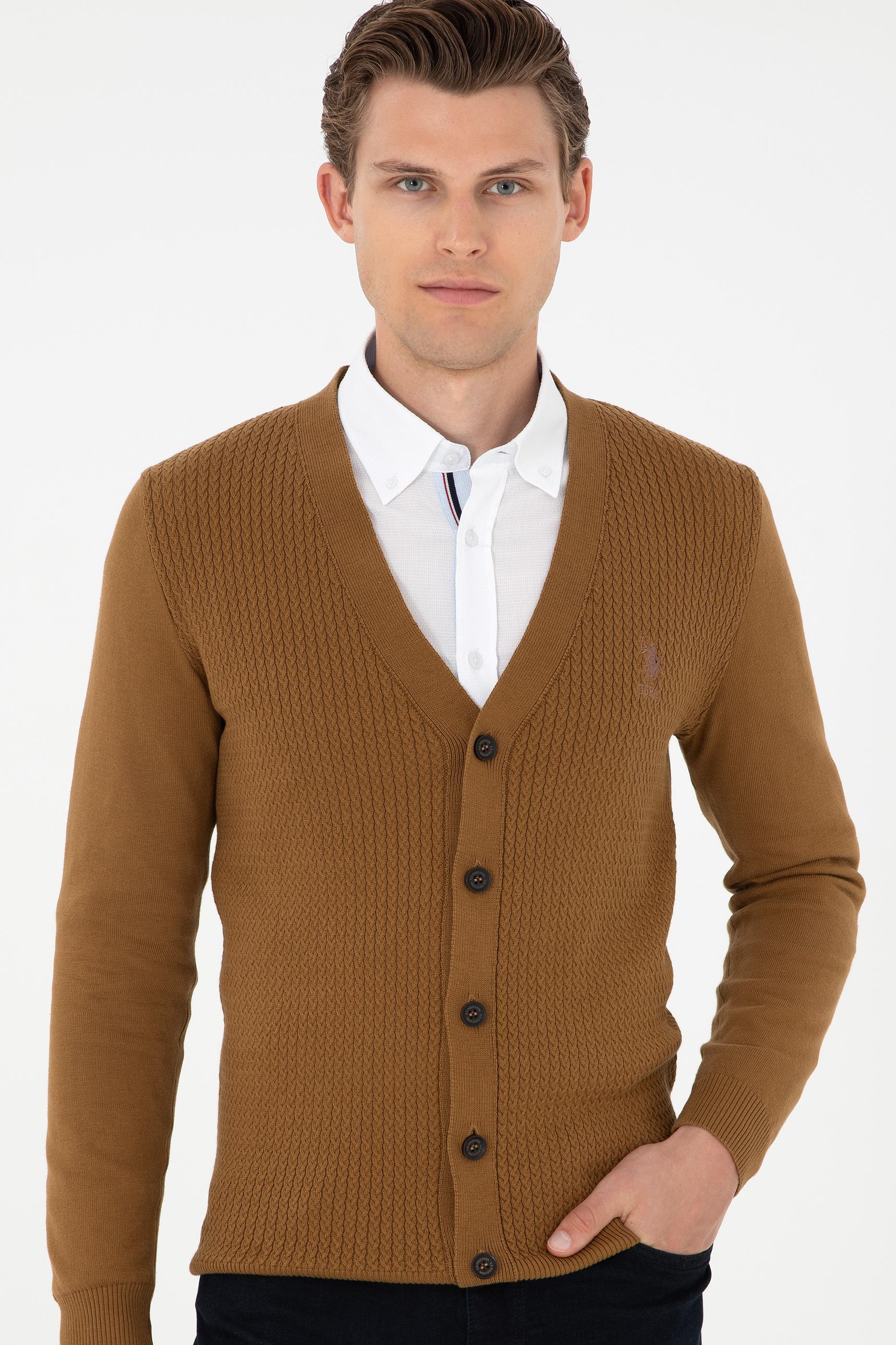 "name": "Erkek Açık Haki Basic Triko Hırka",