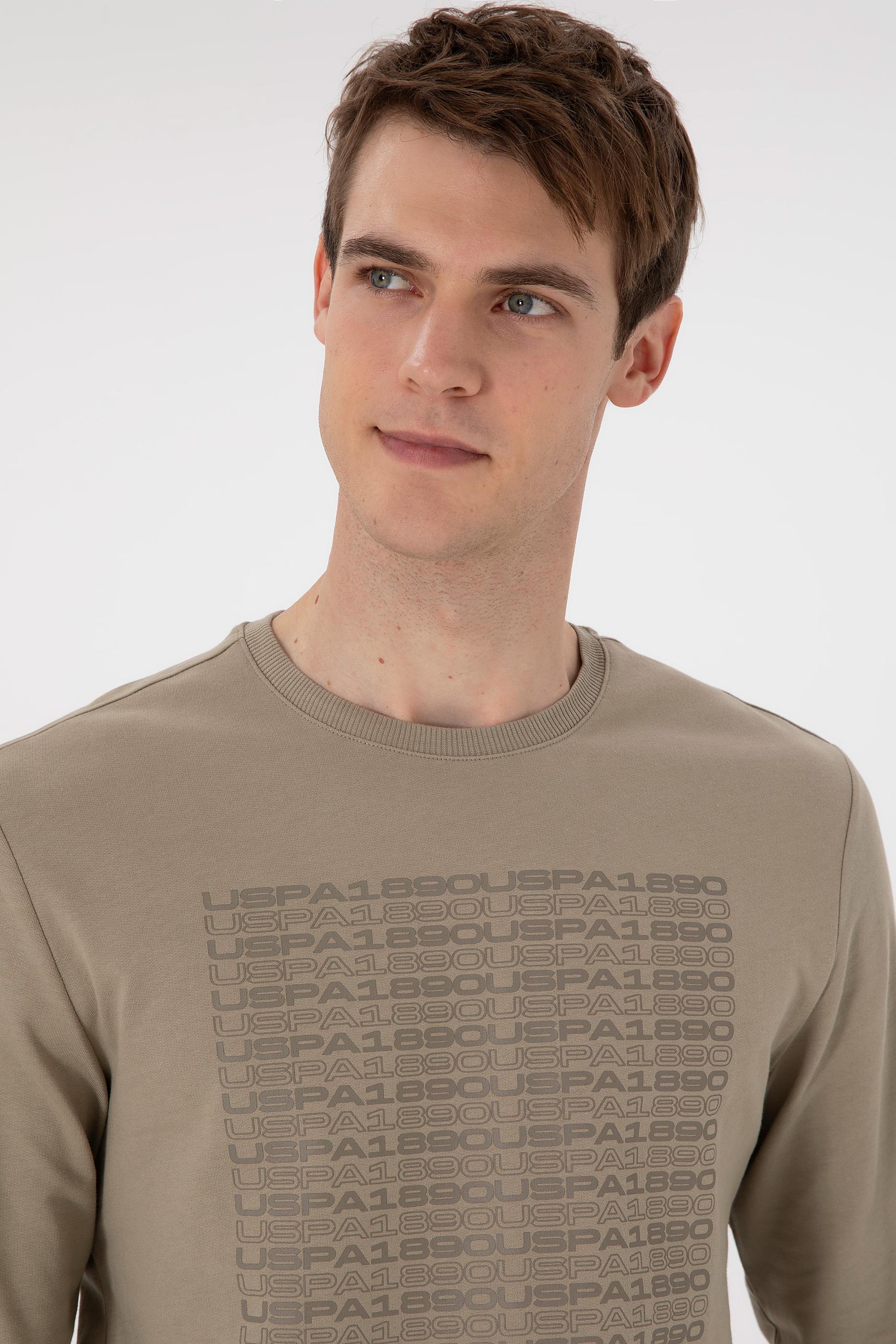 Erkek Regular Fit Bisiklet Yaka Açık Haki Sweatshirt