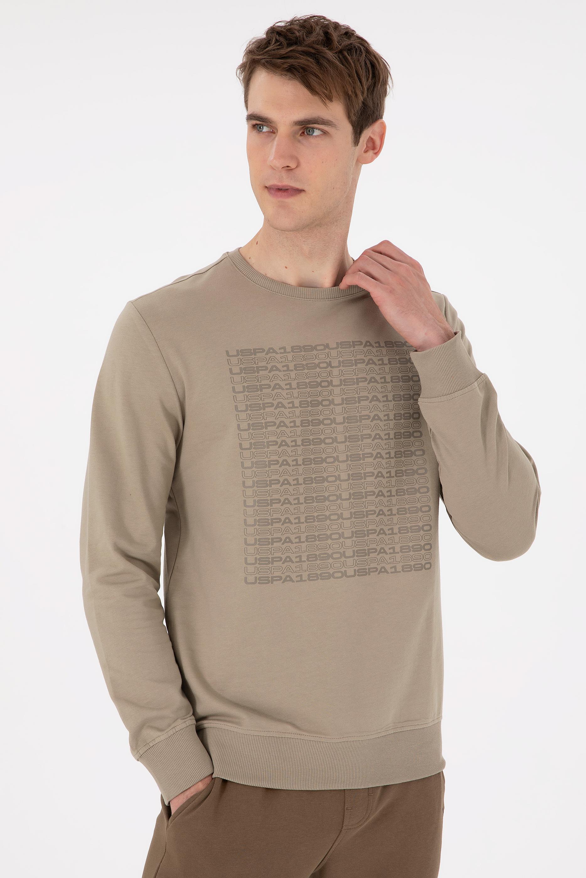 - Erkek Regular Fit Bisiklet Yaka Açık Haki Sweatshirt