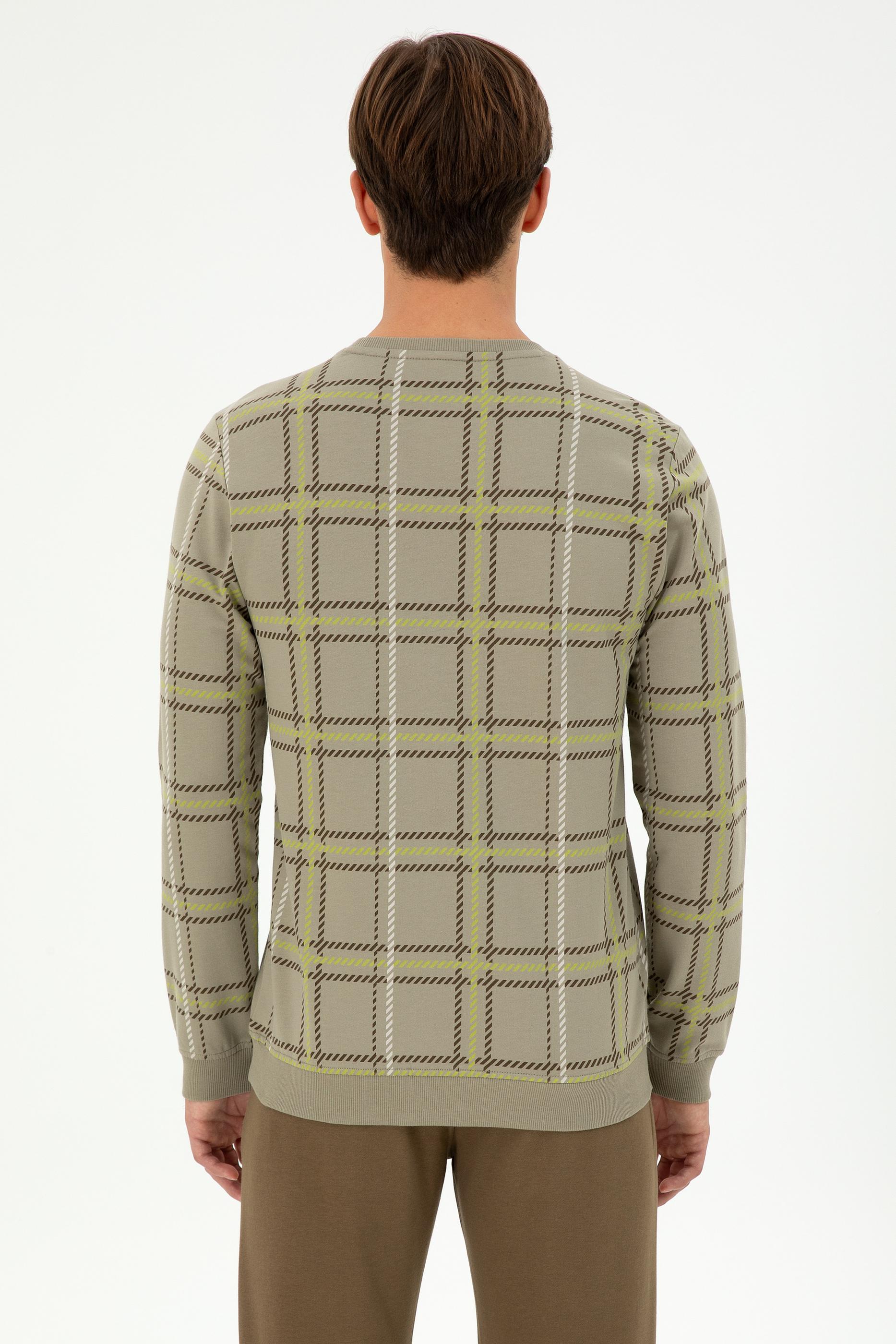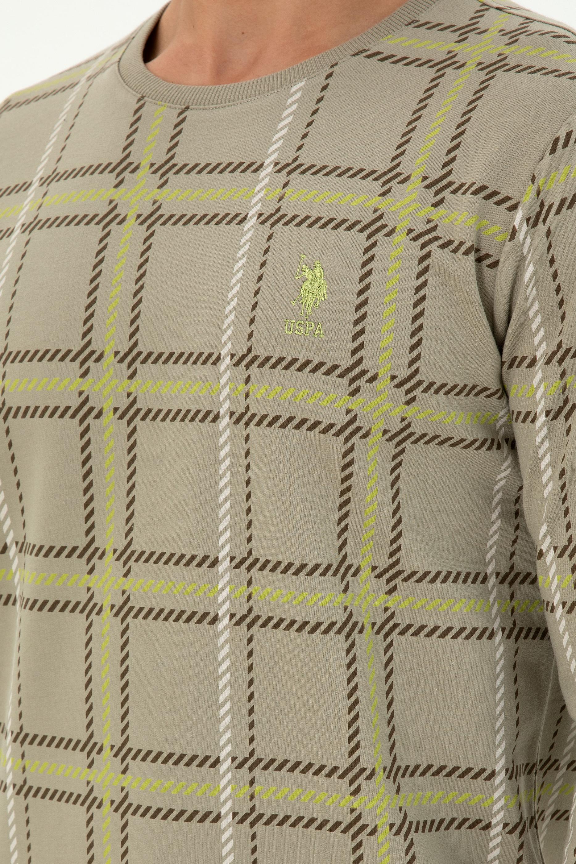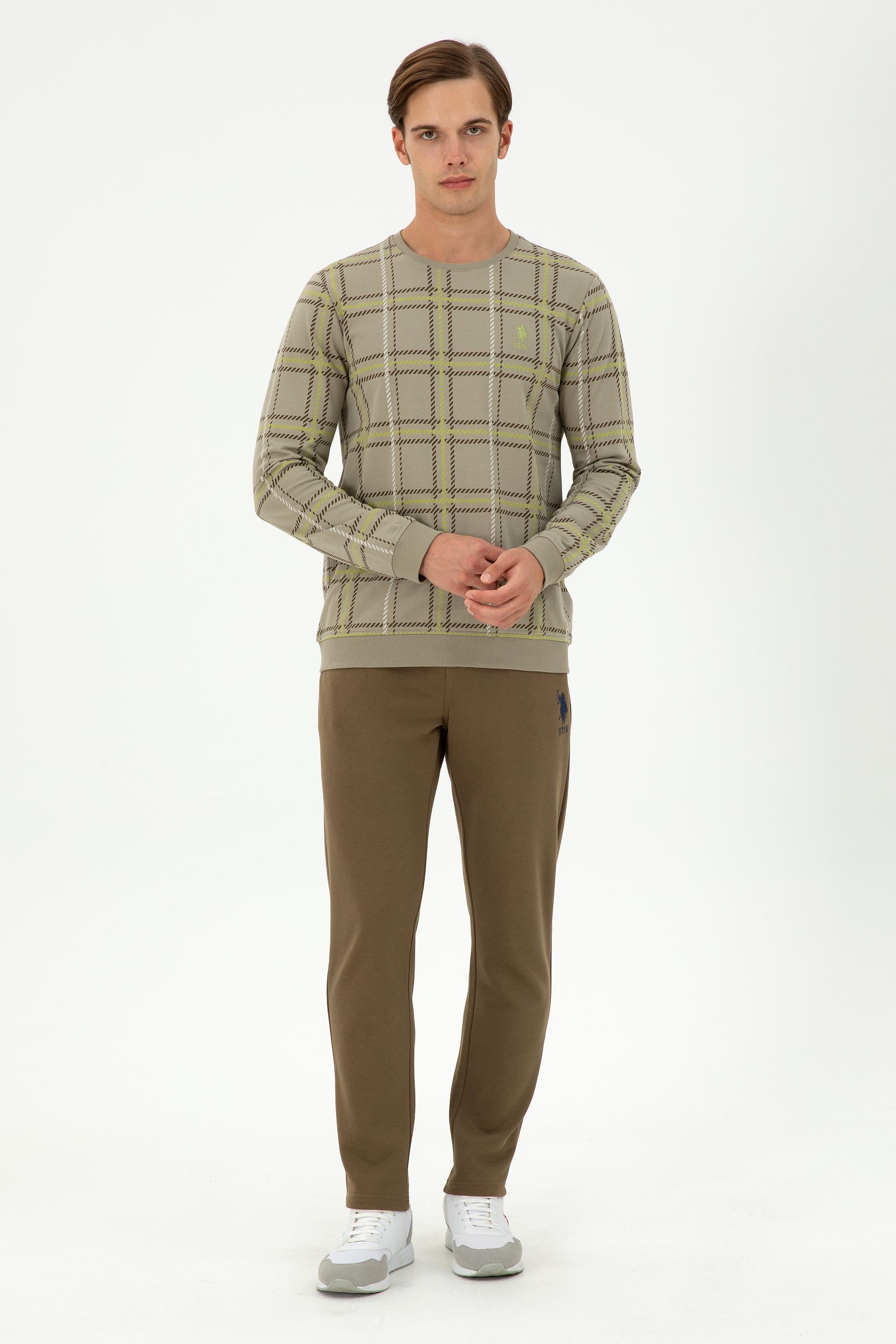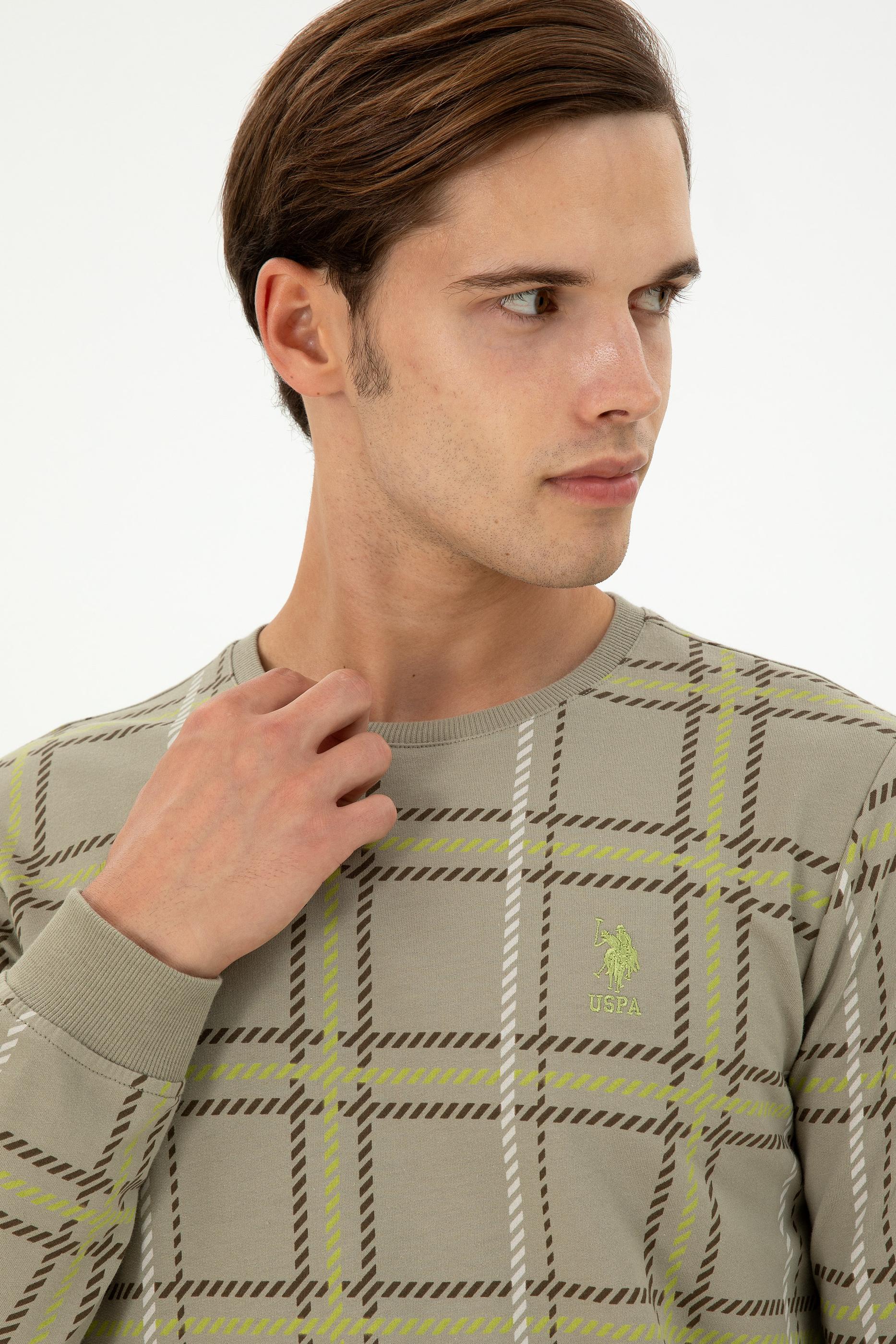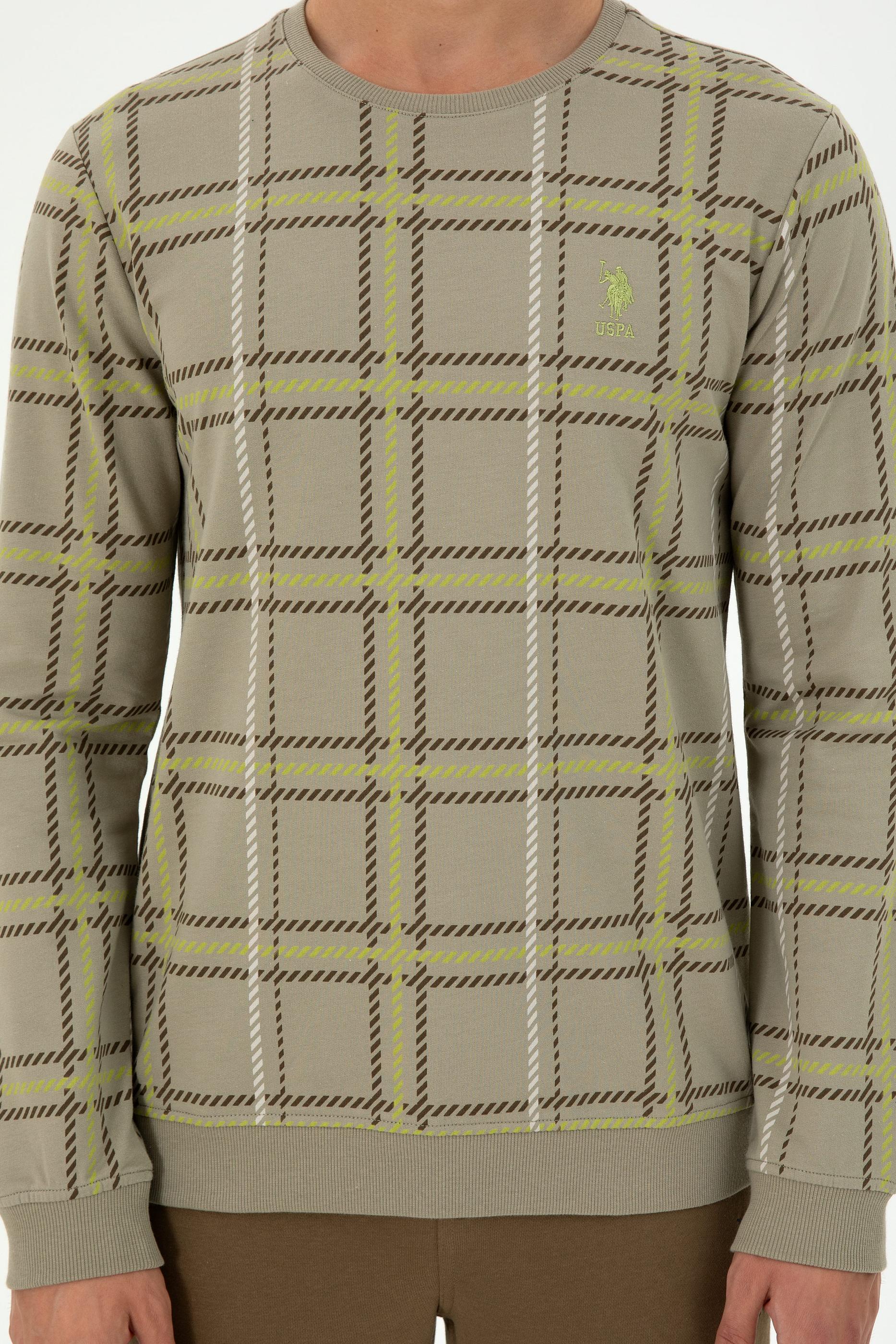 Erkek Regular Fit Bisiklet Yaka Açık Haki Sweatshirt