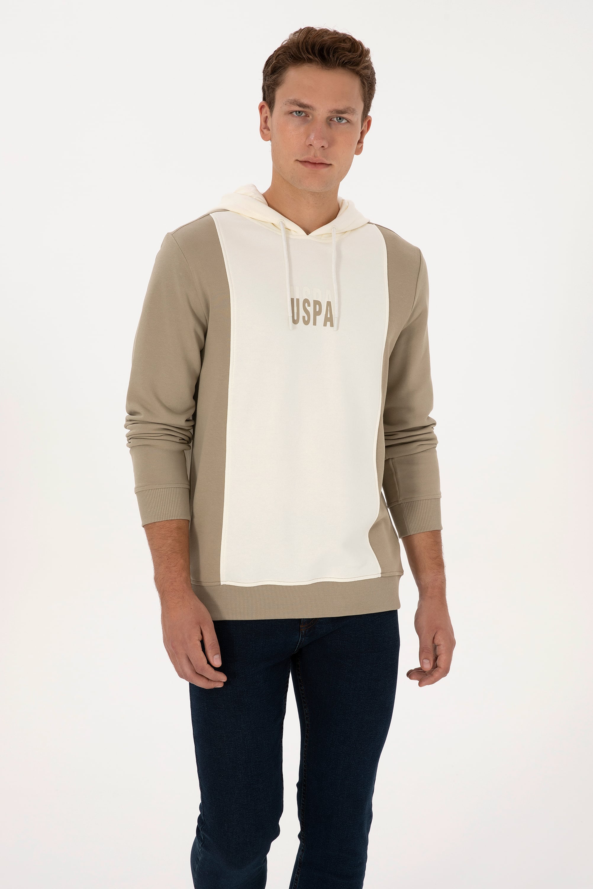 - Erkek Regular Fit Kapüşonlu Açık Haki Sweatshirt