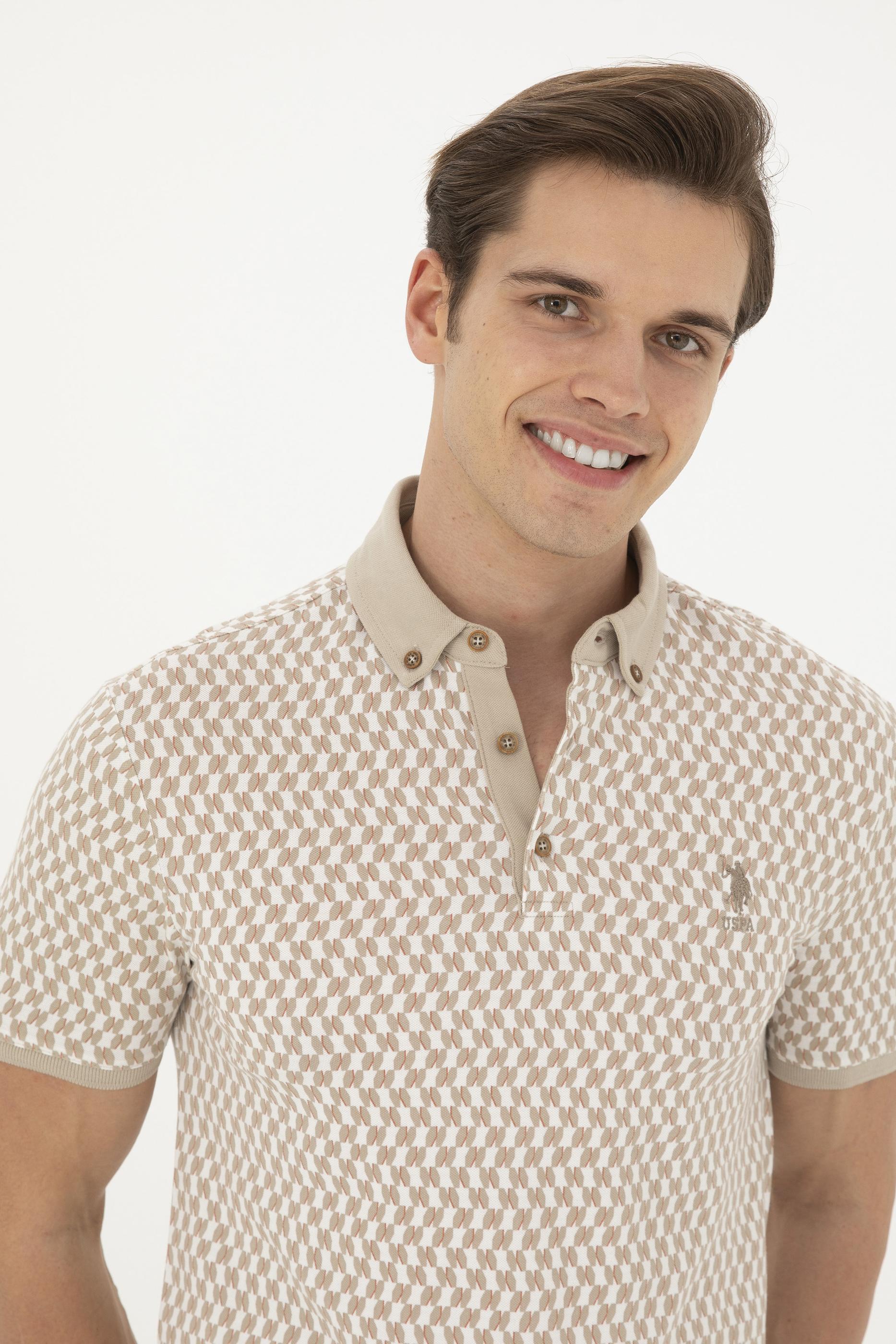 - Erkek Slim Fit Polo Yaka Açık Haki Tişört