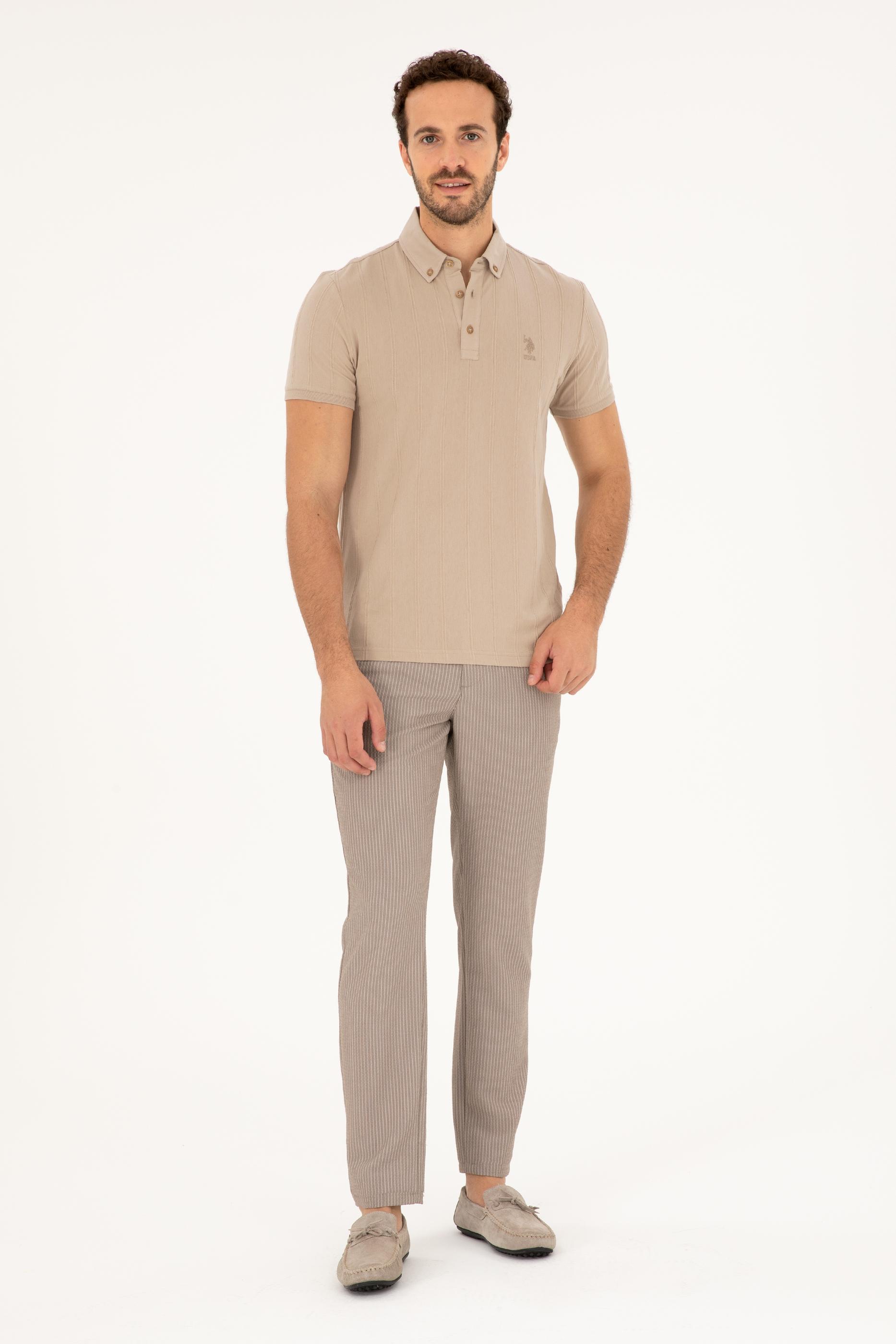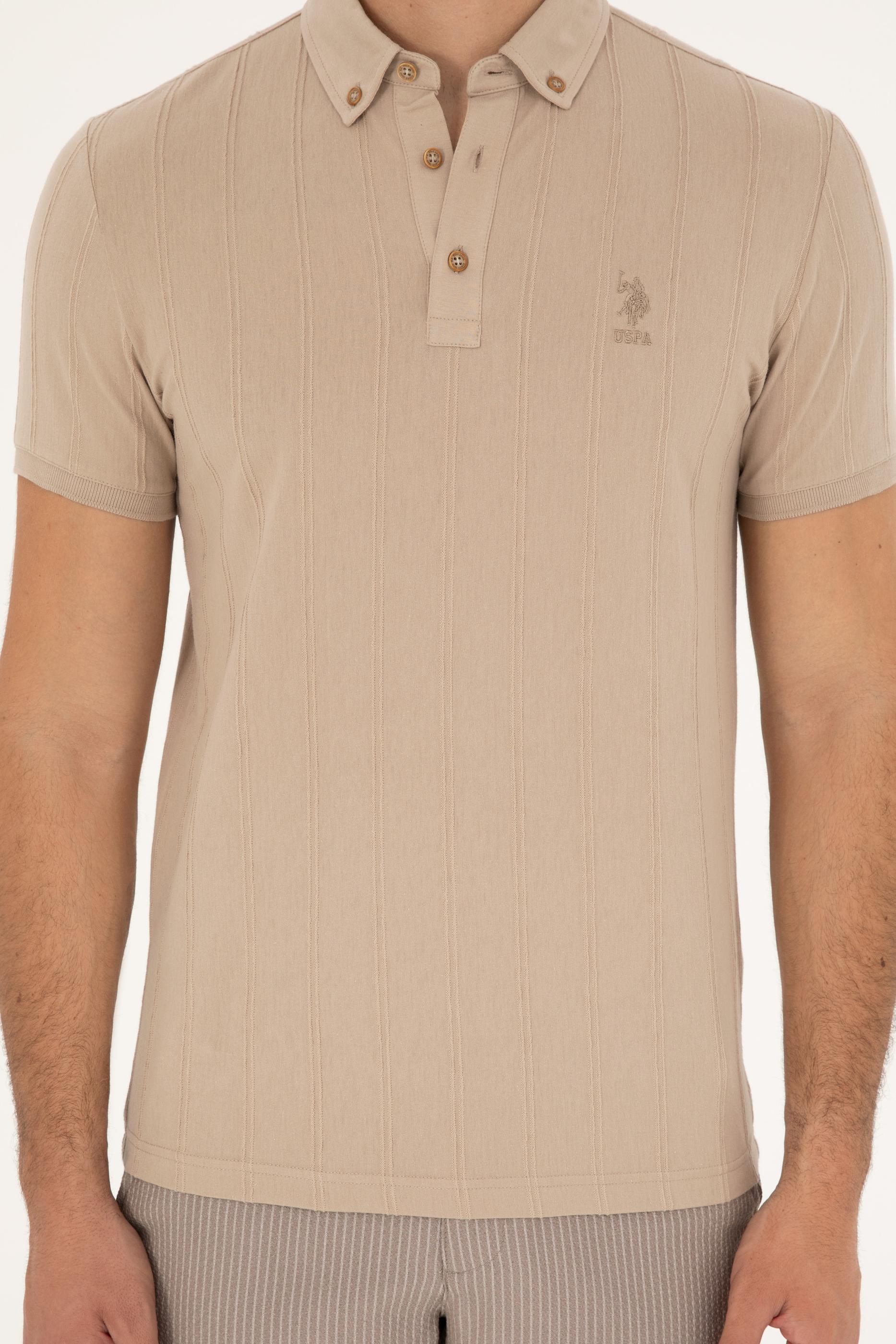 - Erkek Slim Fit Polo Yaka Açık Haki Tişört