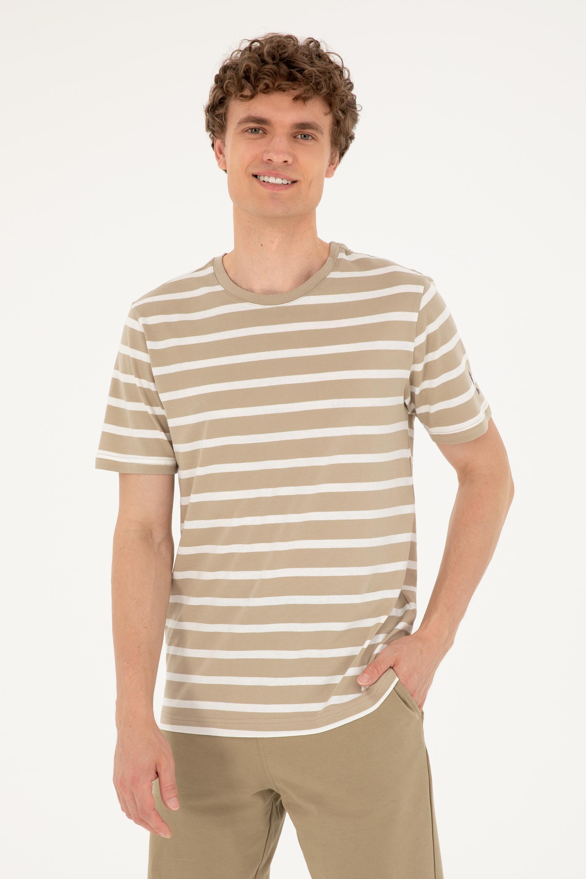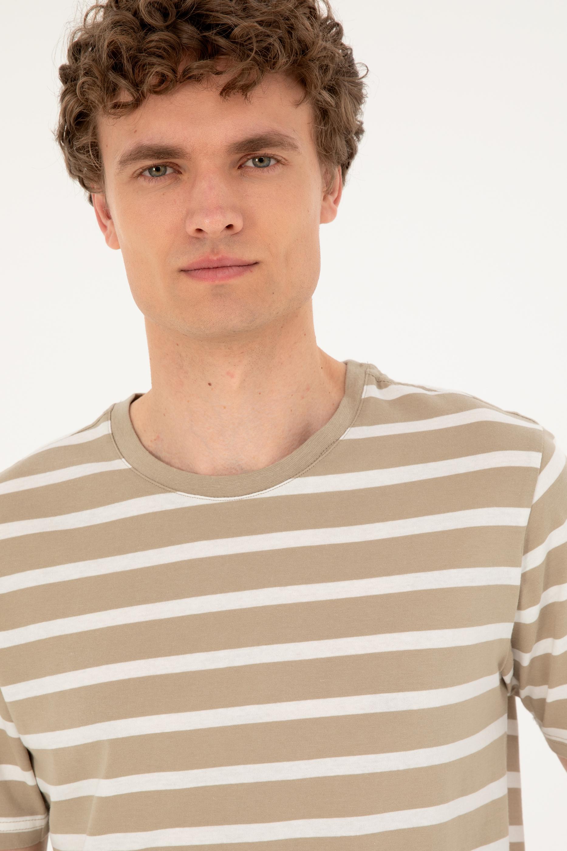 Erkek Regular Fit Bisiklet Yaka Açık Haki Tişört