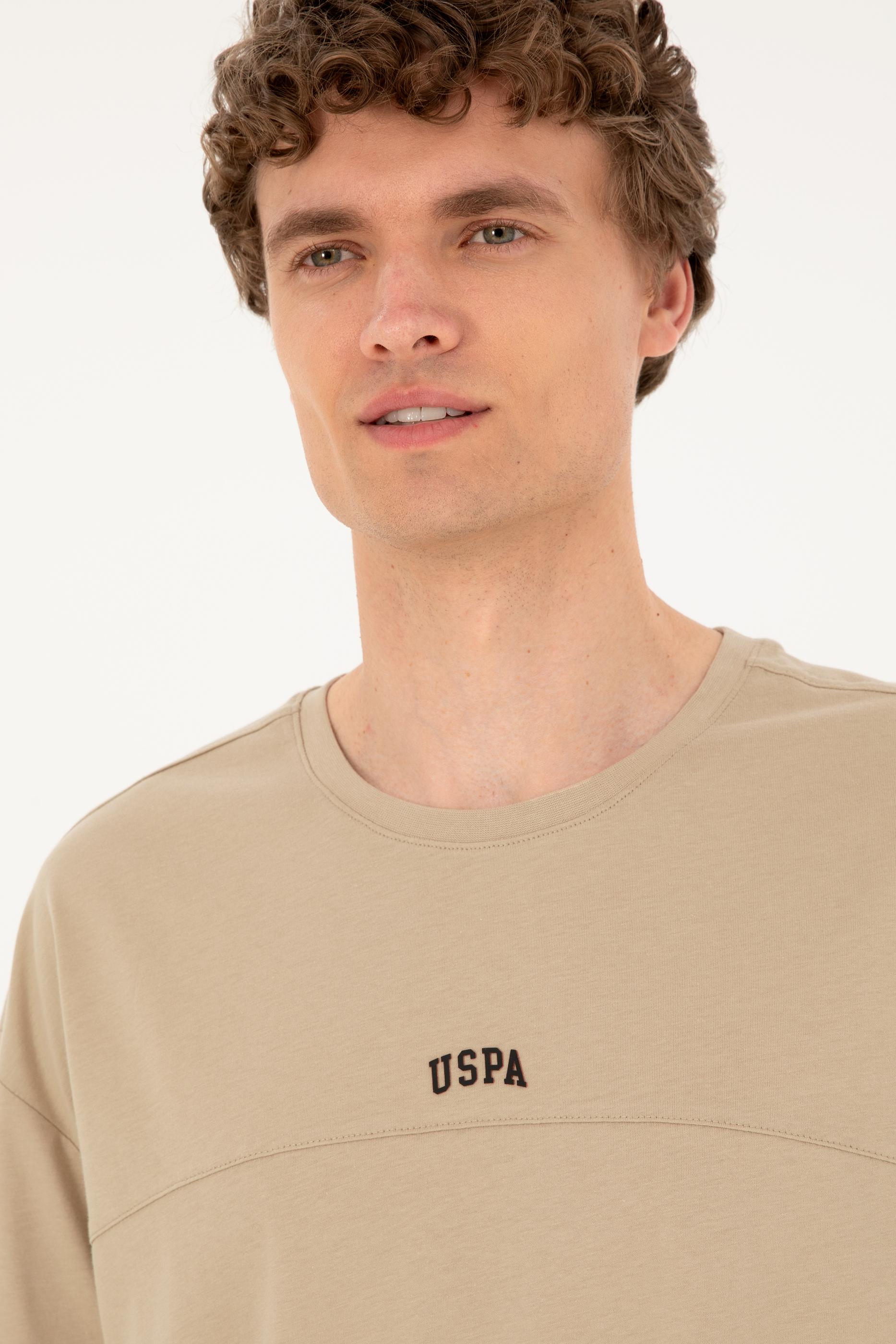 Erkek Comfort Fit Bisiklet Yaka Açık Haki Tişört