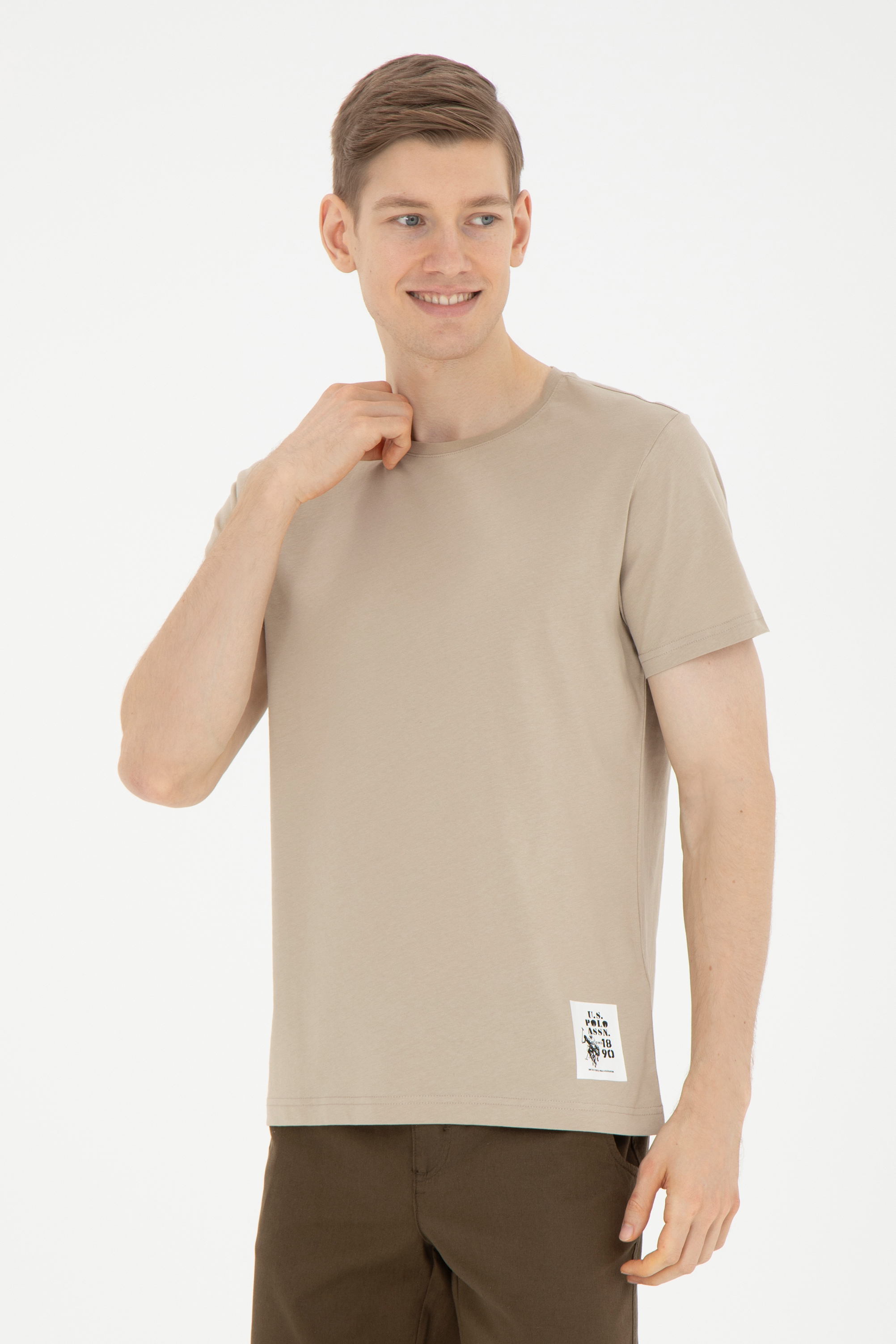 Erkek Regular Fit Bisiklet Yaka Açık Haki Tişört