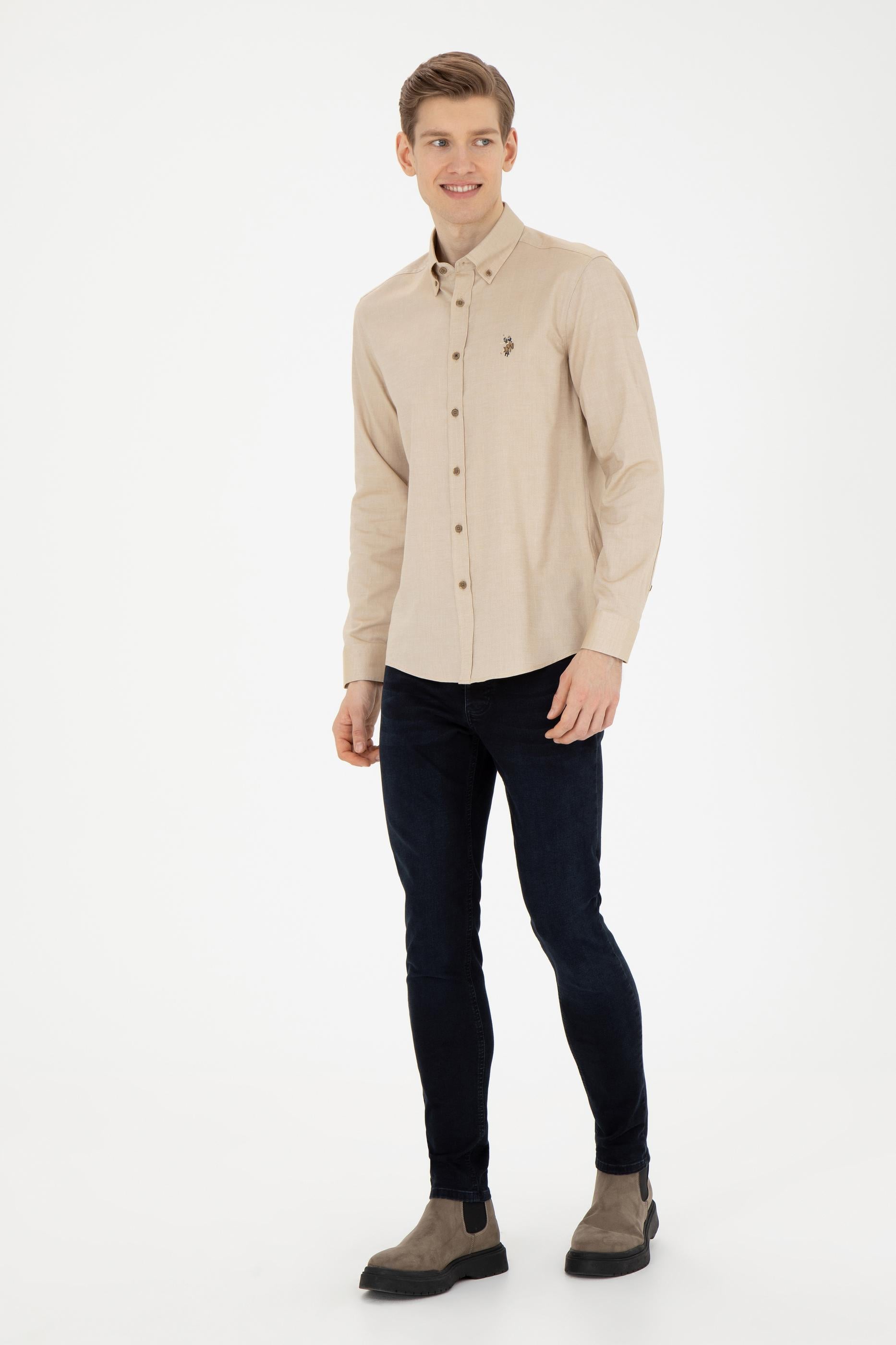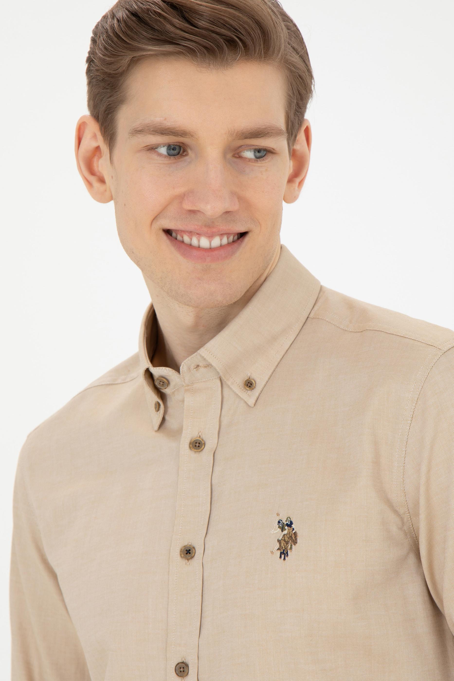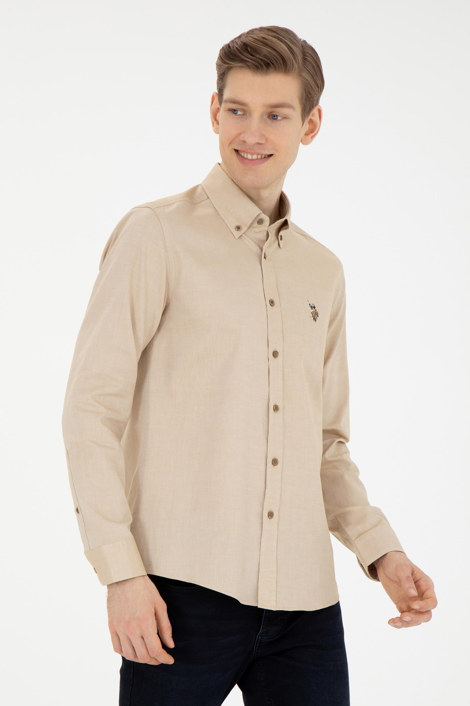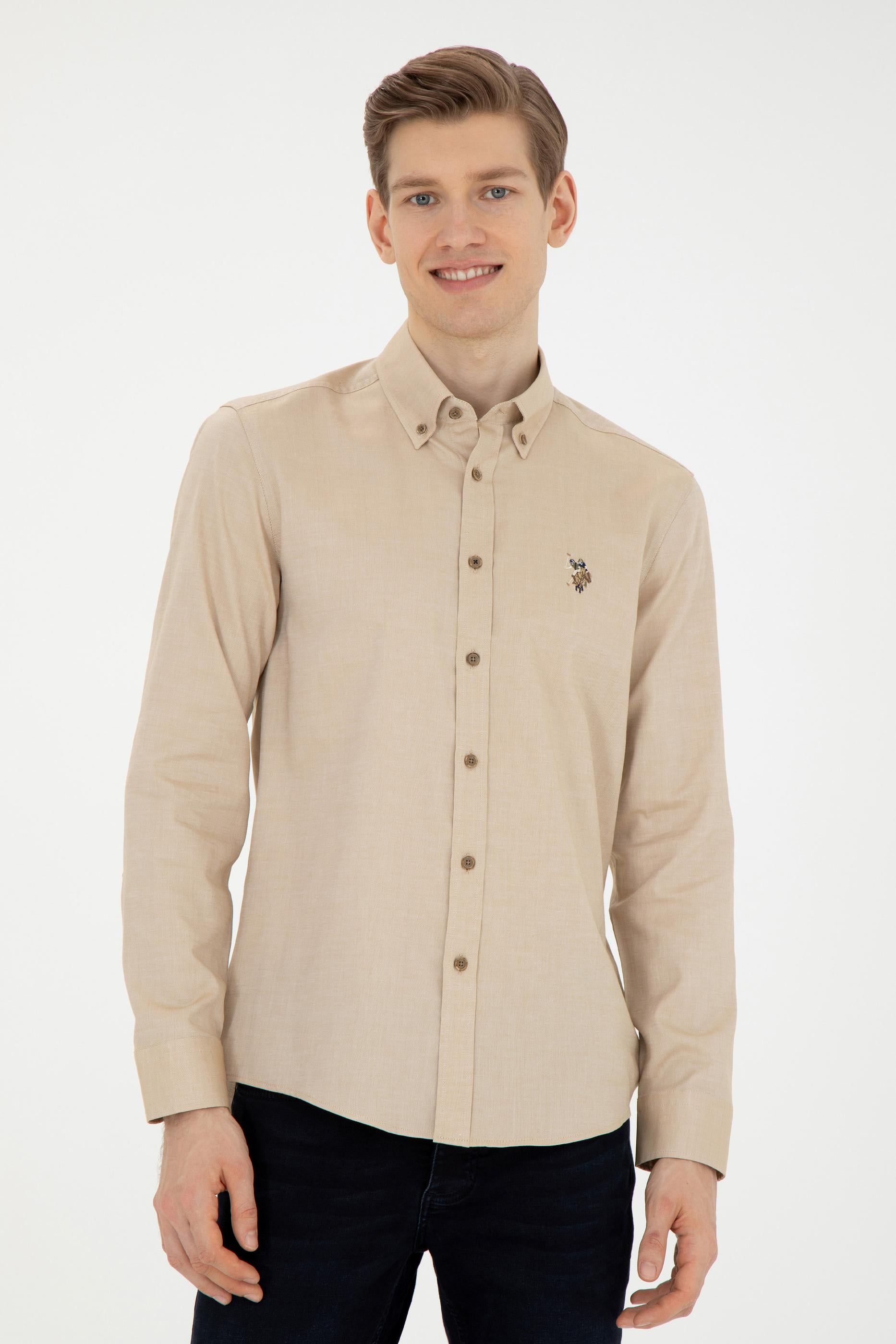 Erkek Açık Haki Uzun Kollu Basic Gömlek