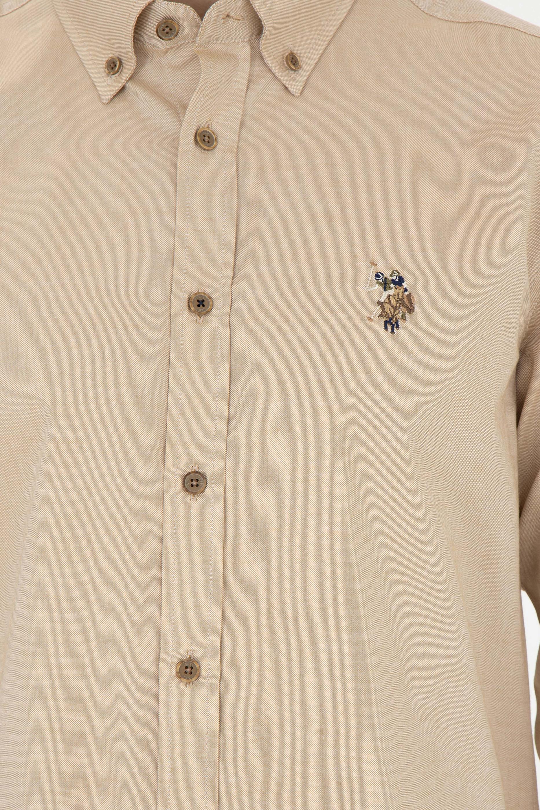 - Erkek Açık Haki Uzun Kollu Basic Gömlek