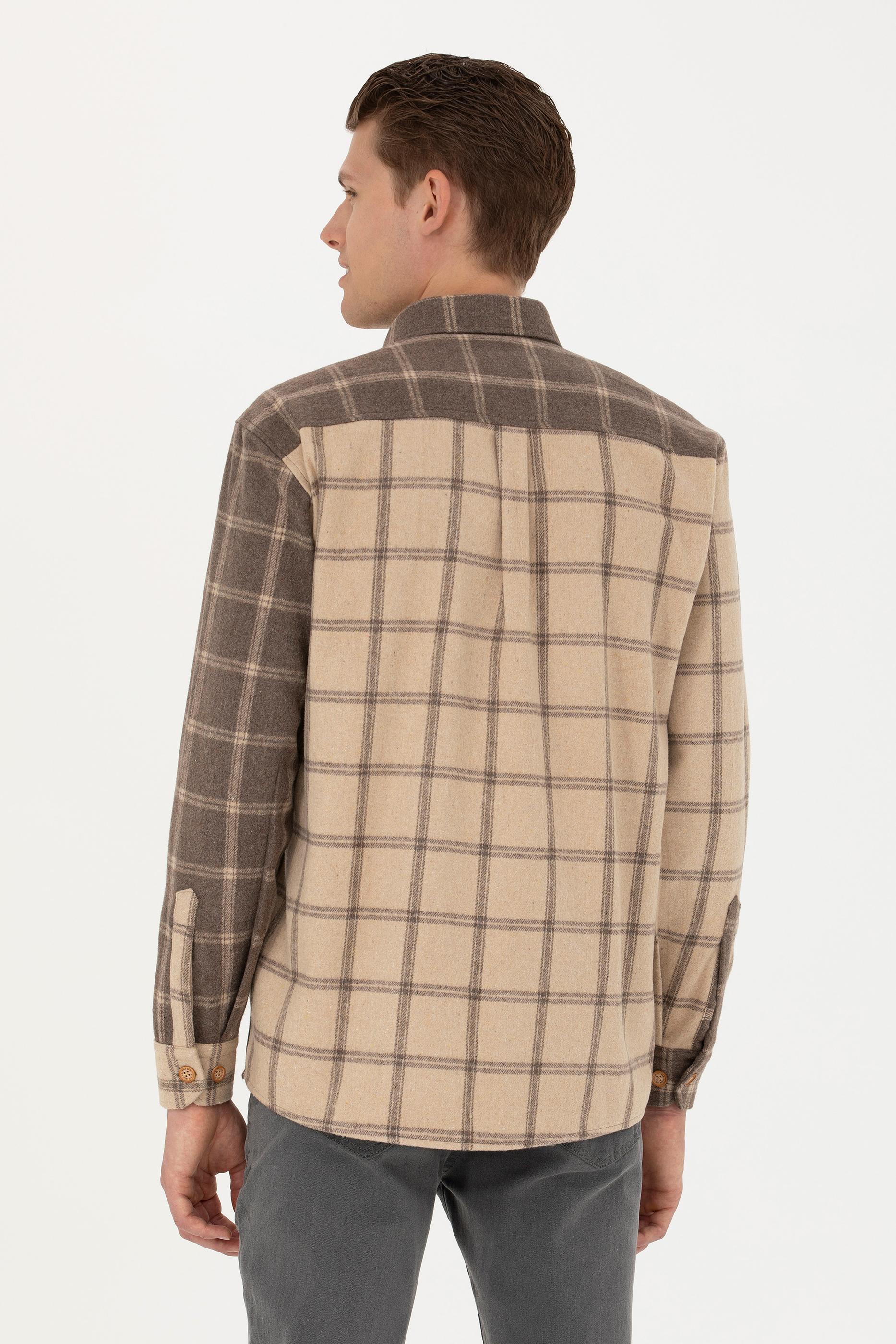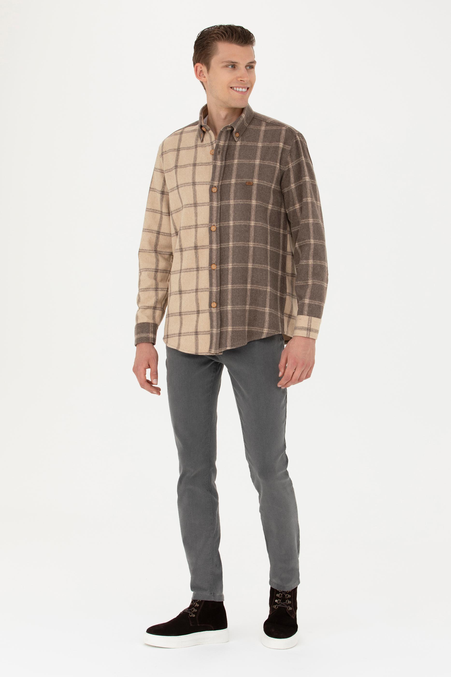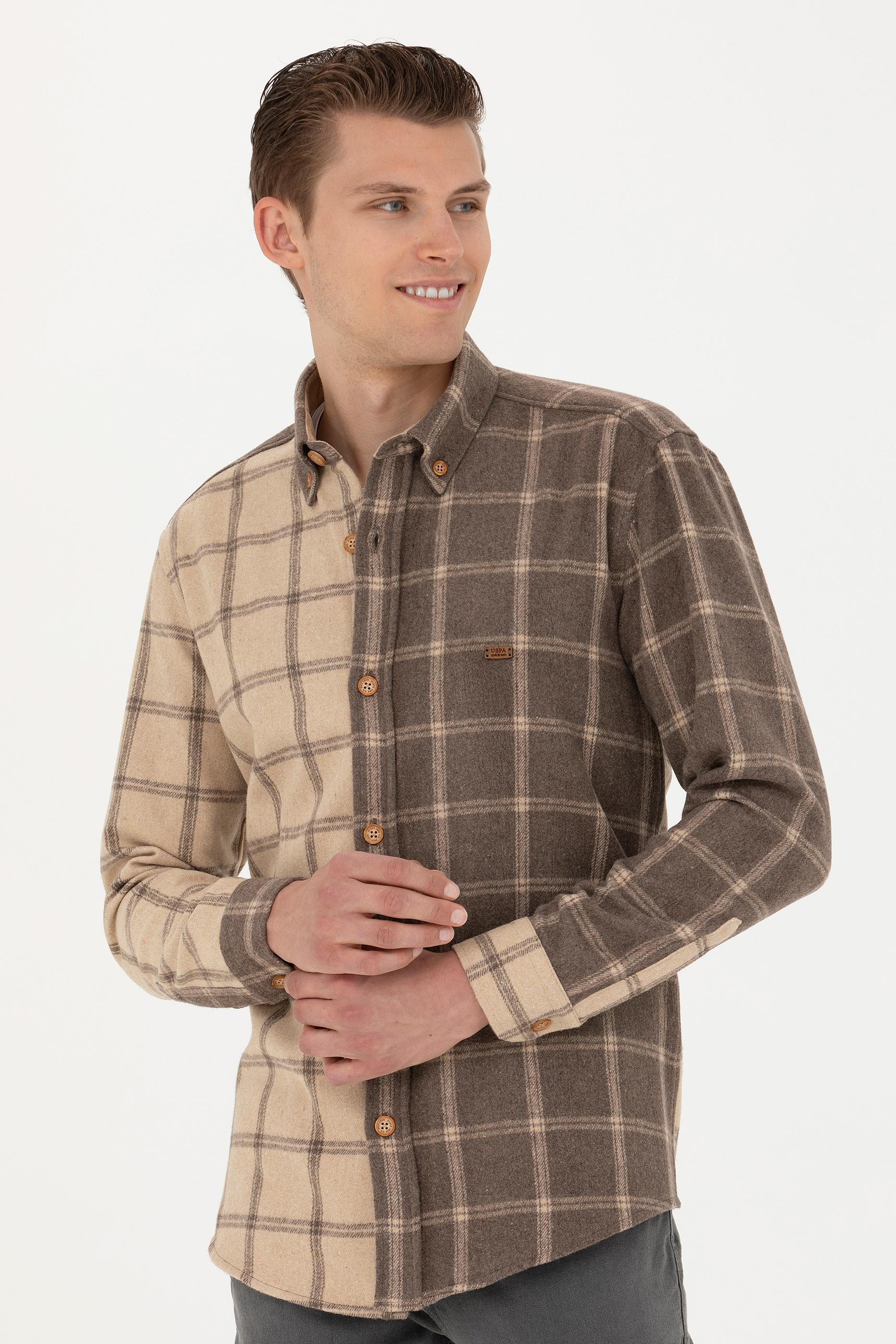 Erkek Açık Haki Uzun Kollu Gömlek