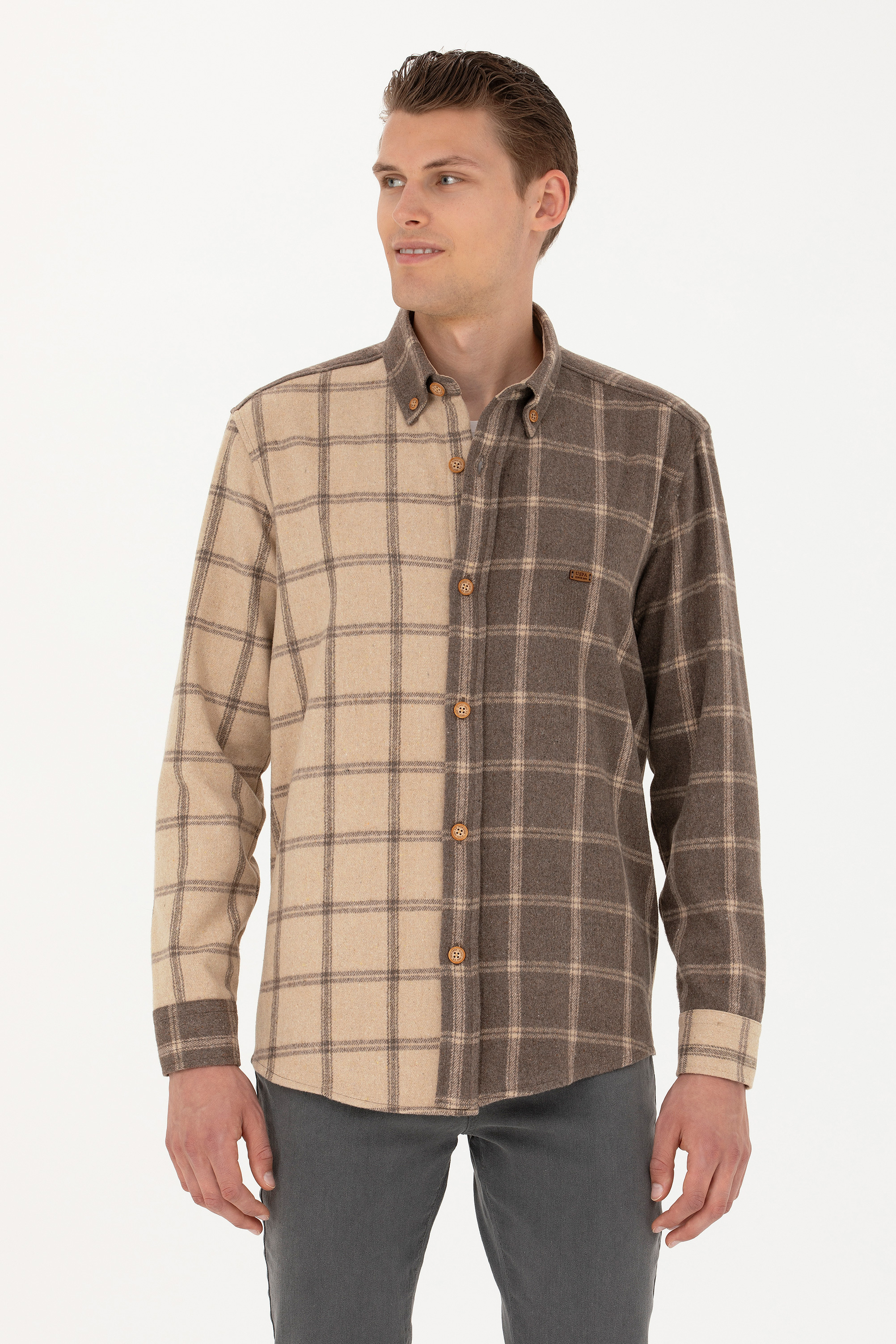 - Erkek Açık Haki Uzun Kollu Gömlek