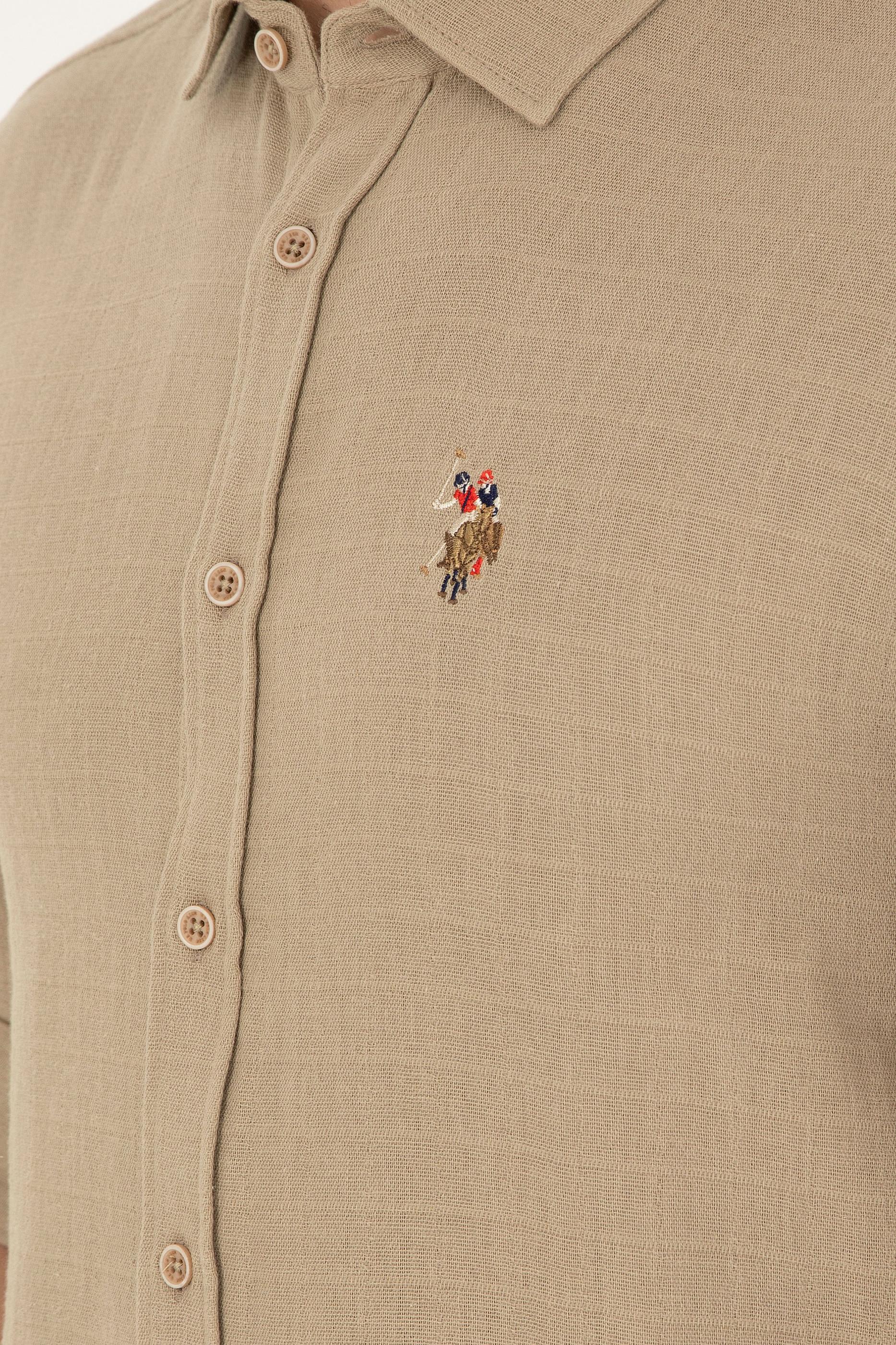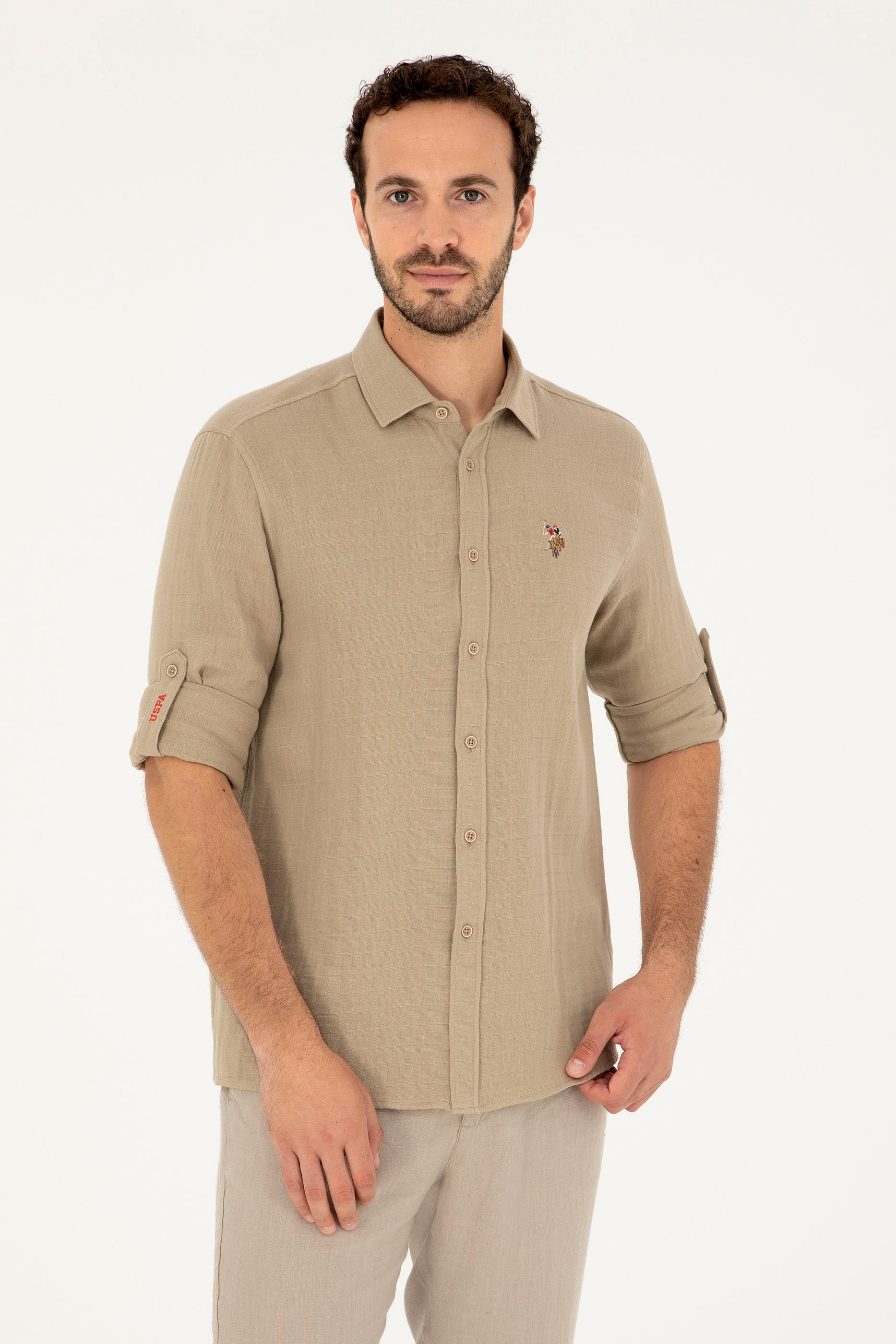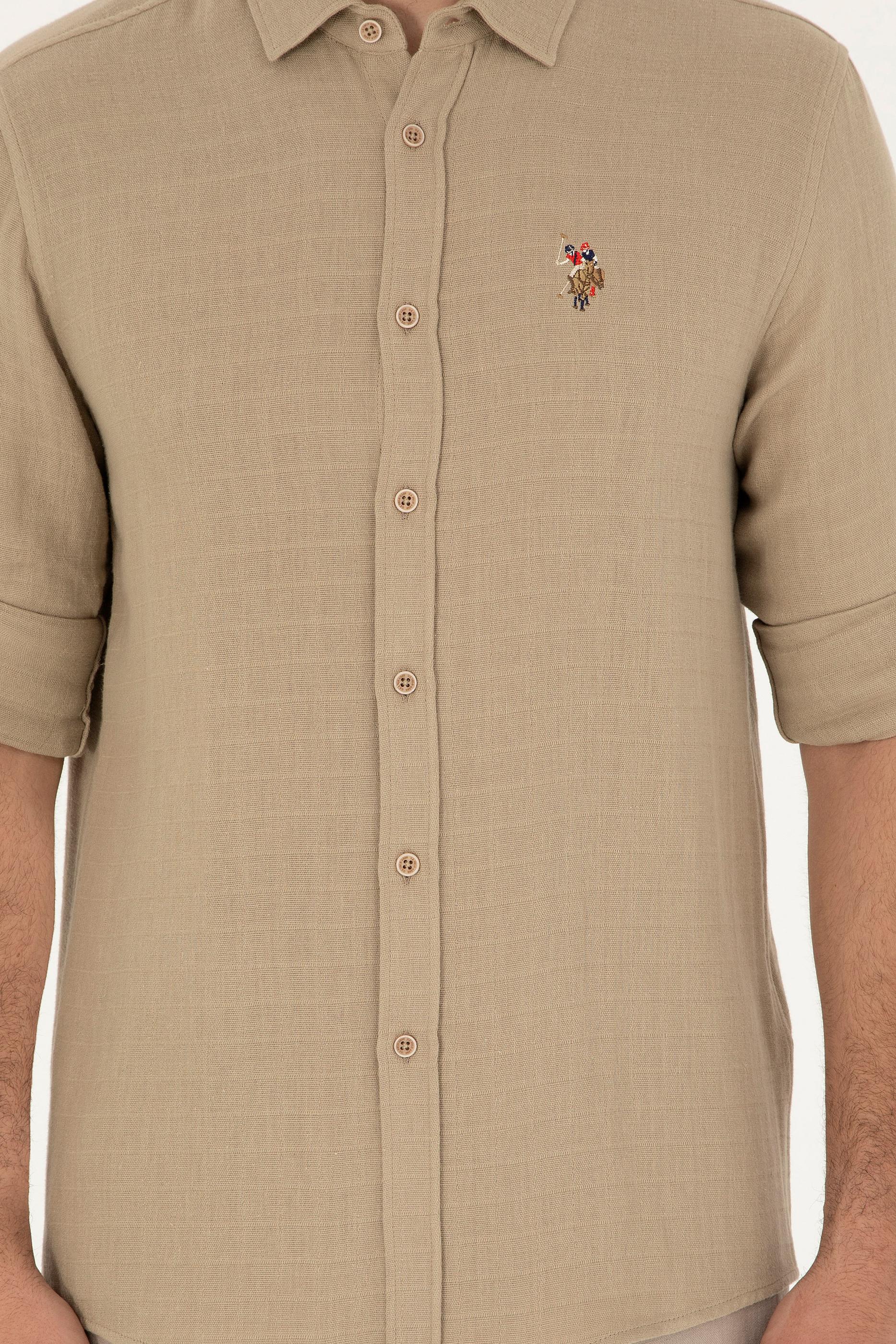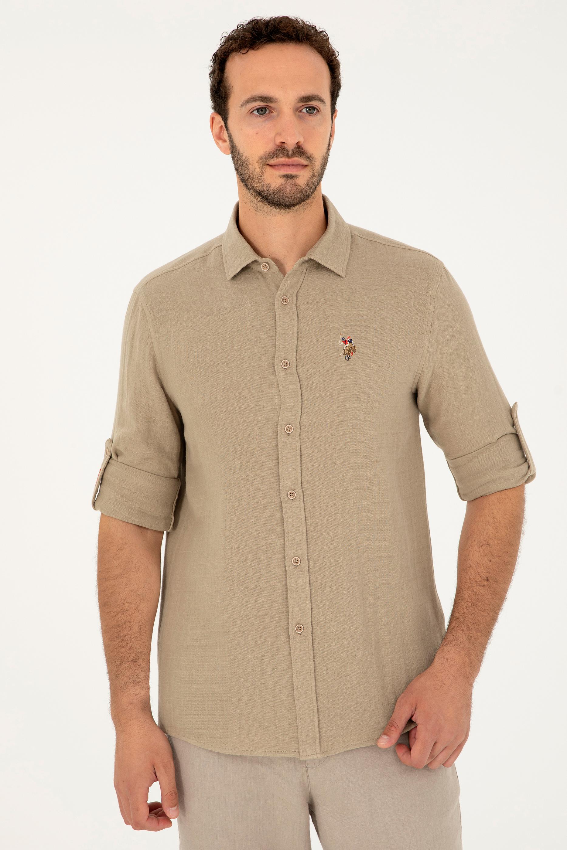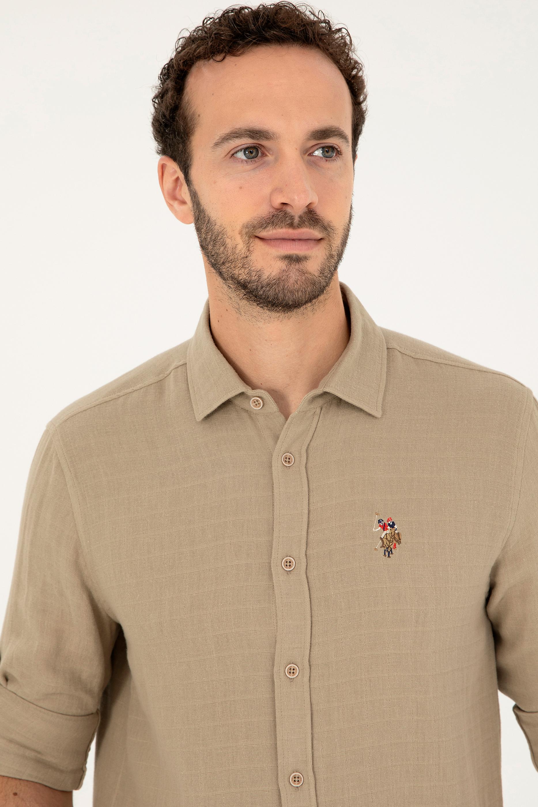 Erkek Açık Haki Uzun Kollu Gömlek