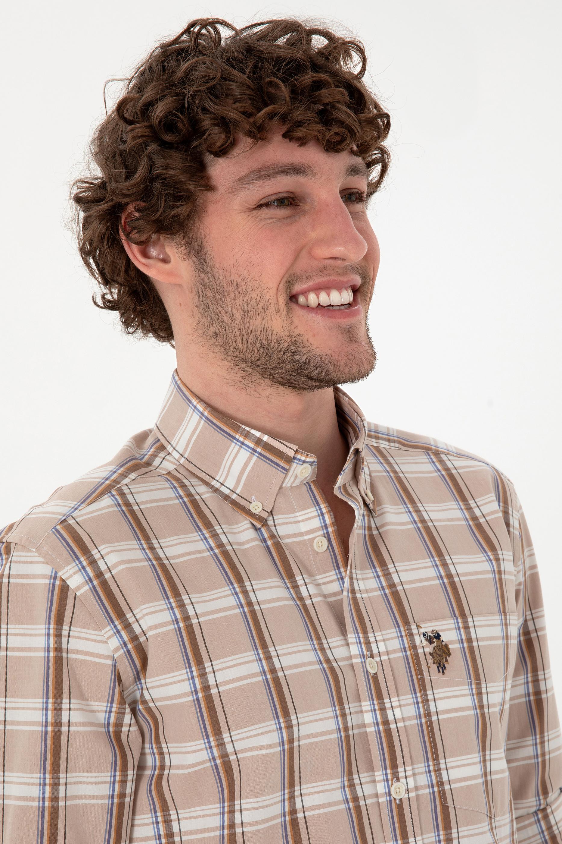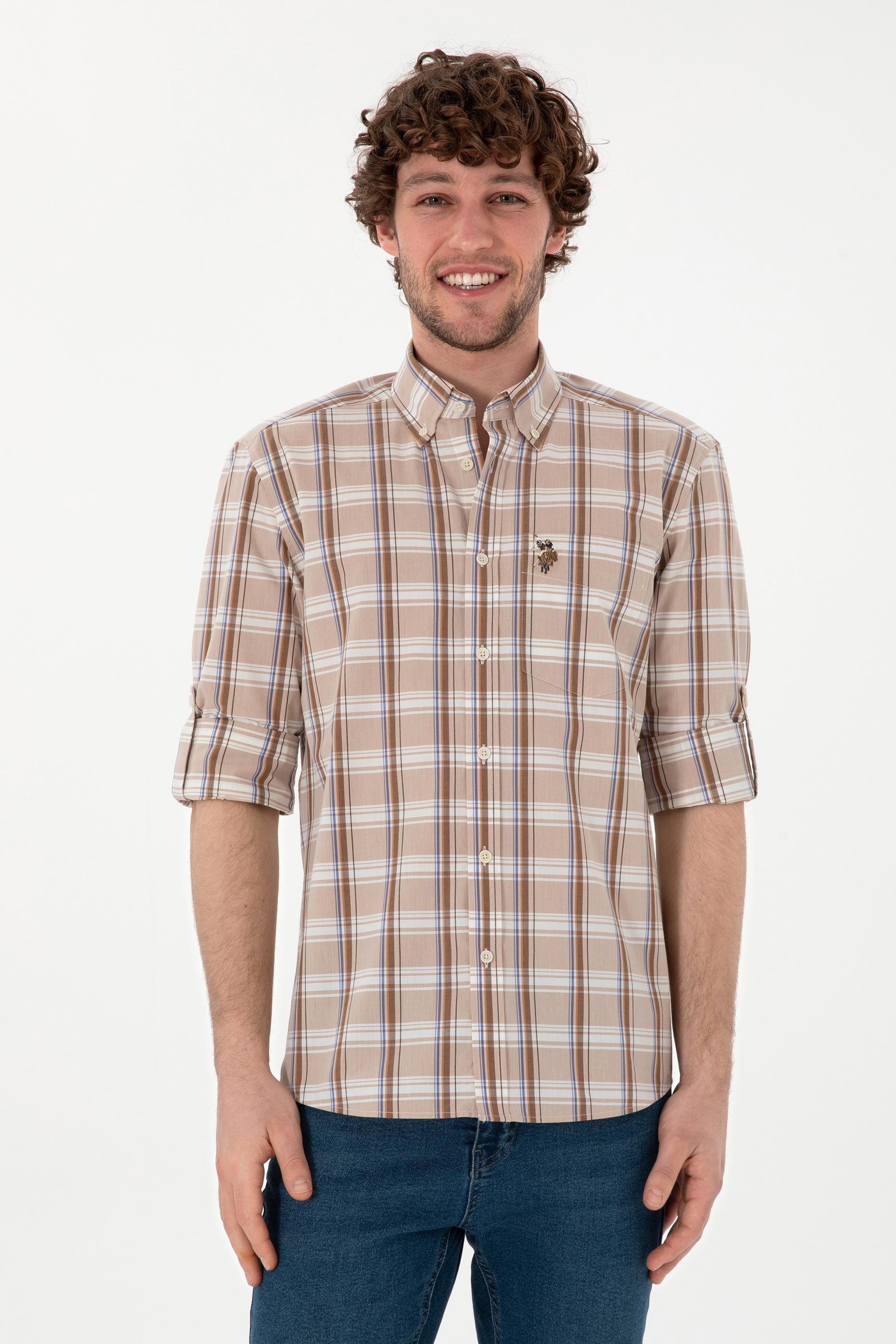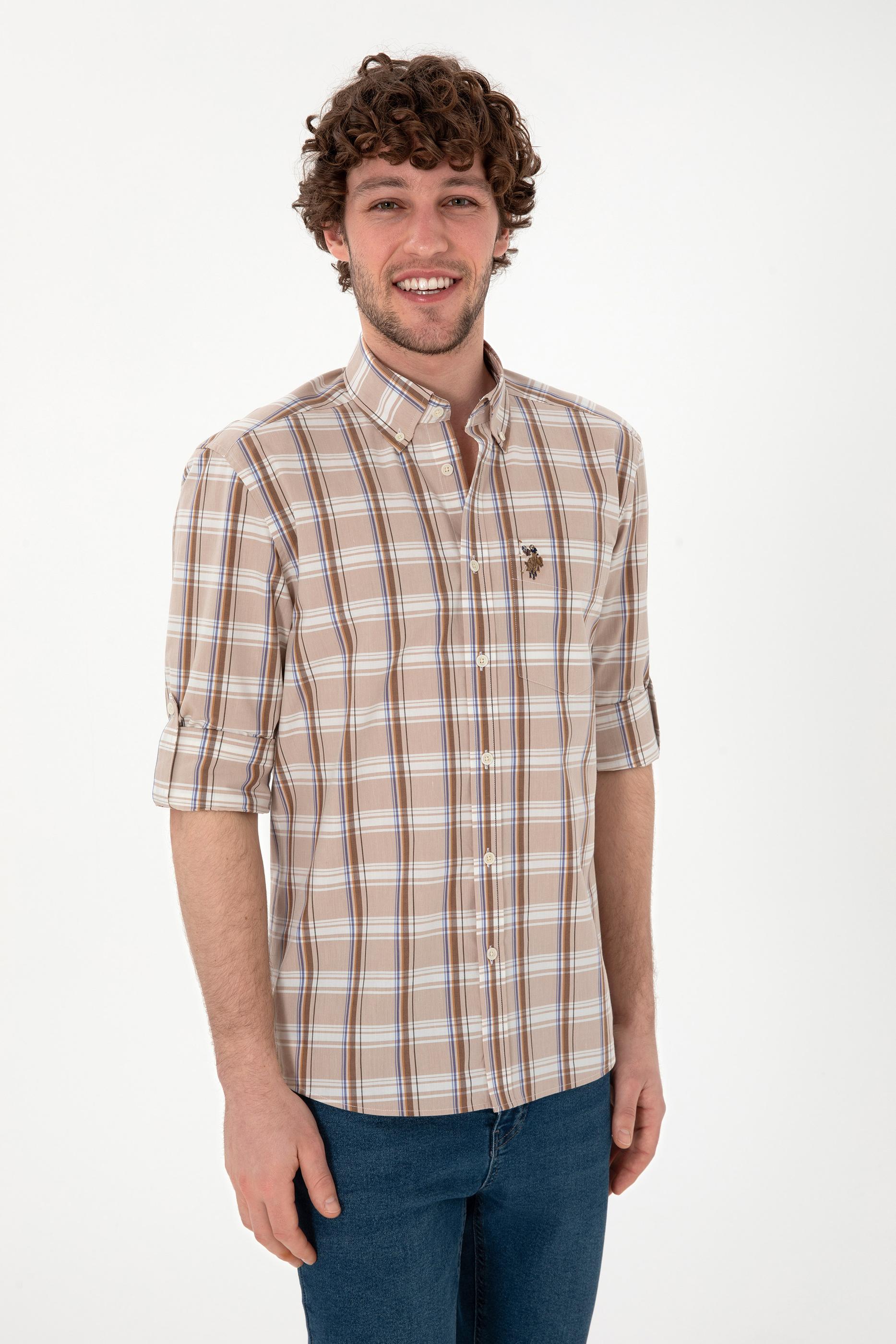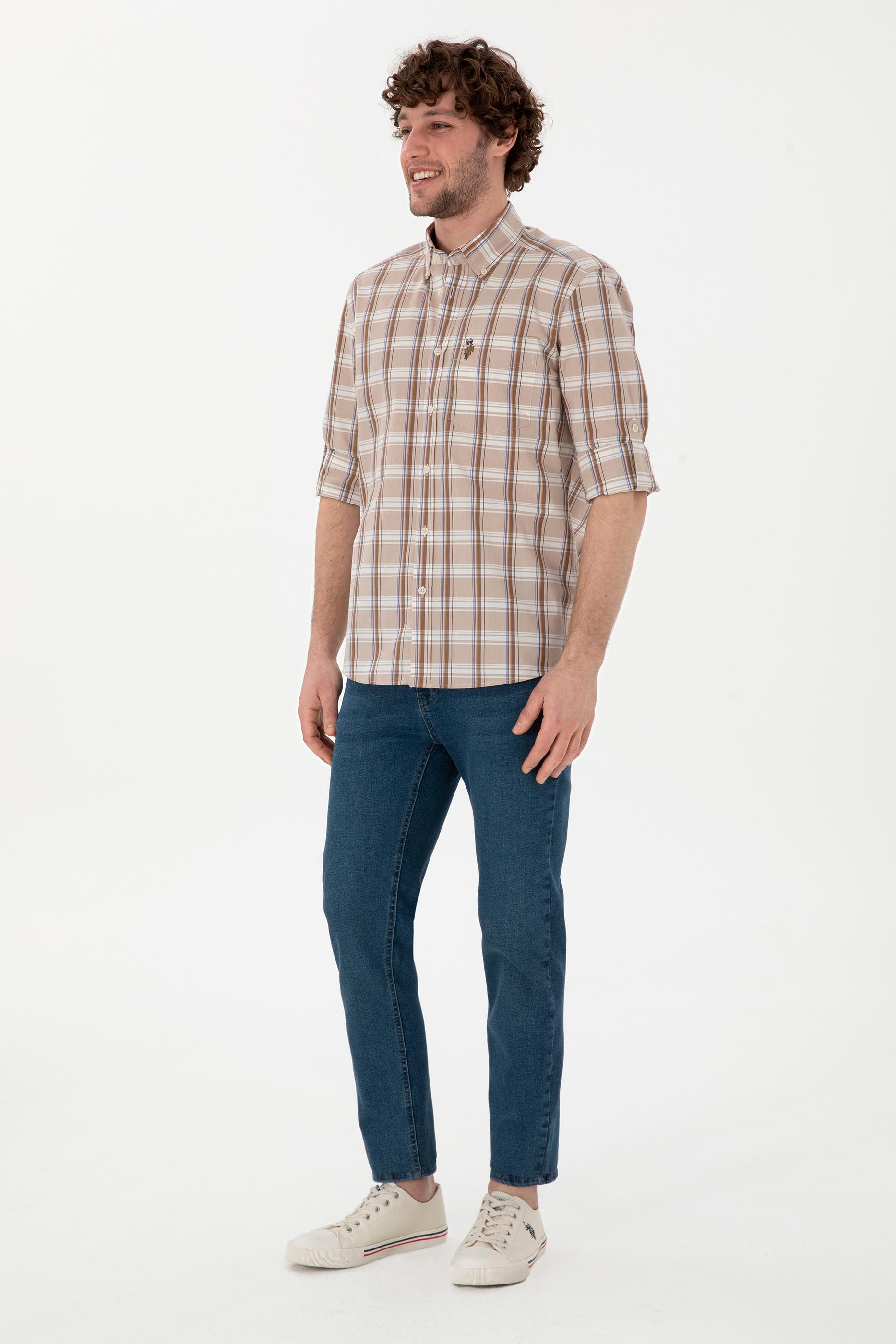 Erkek Açık Haki Uzun Kollu Gömlek