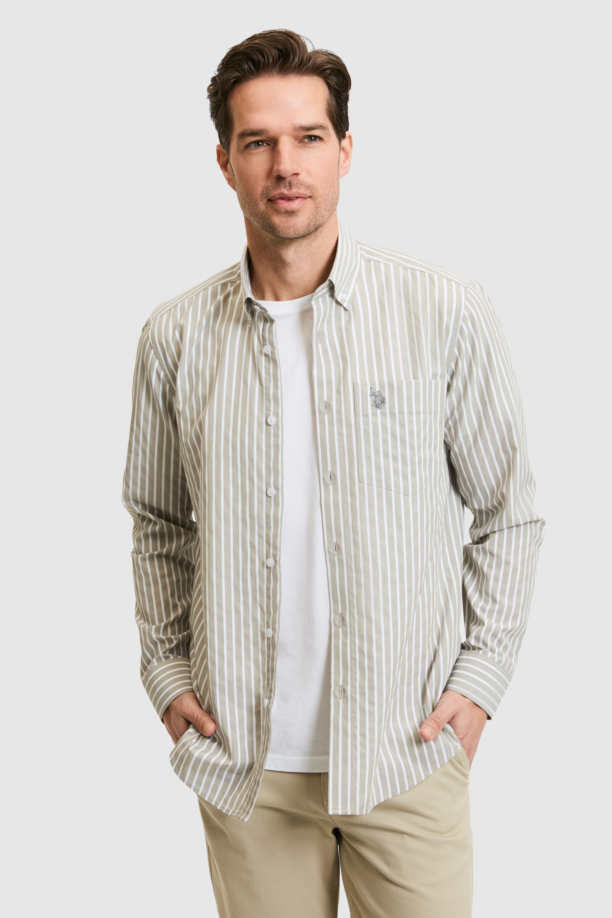 - Erkek Açık Haki Uzun Kollu Gömlek