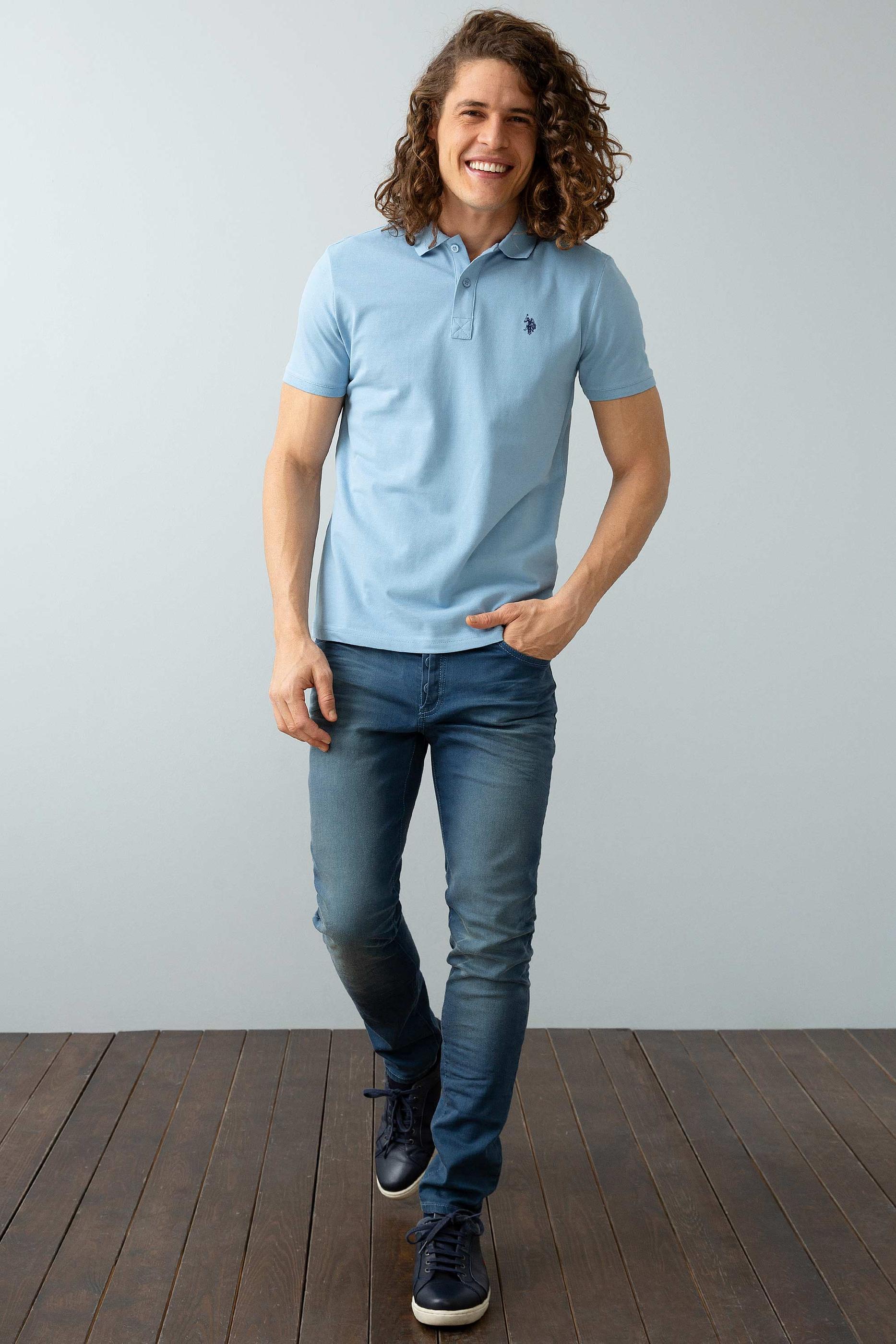 - Erkek Açık İndigo Basic Tişört