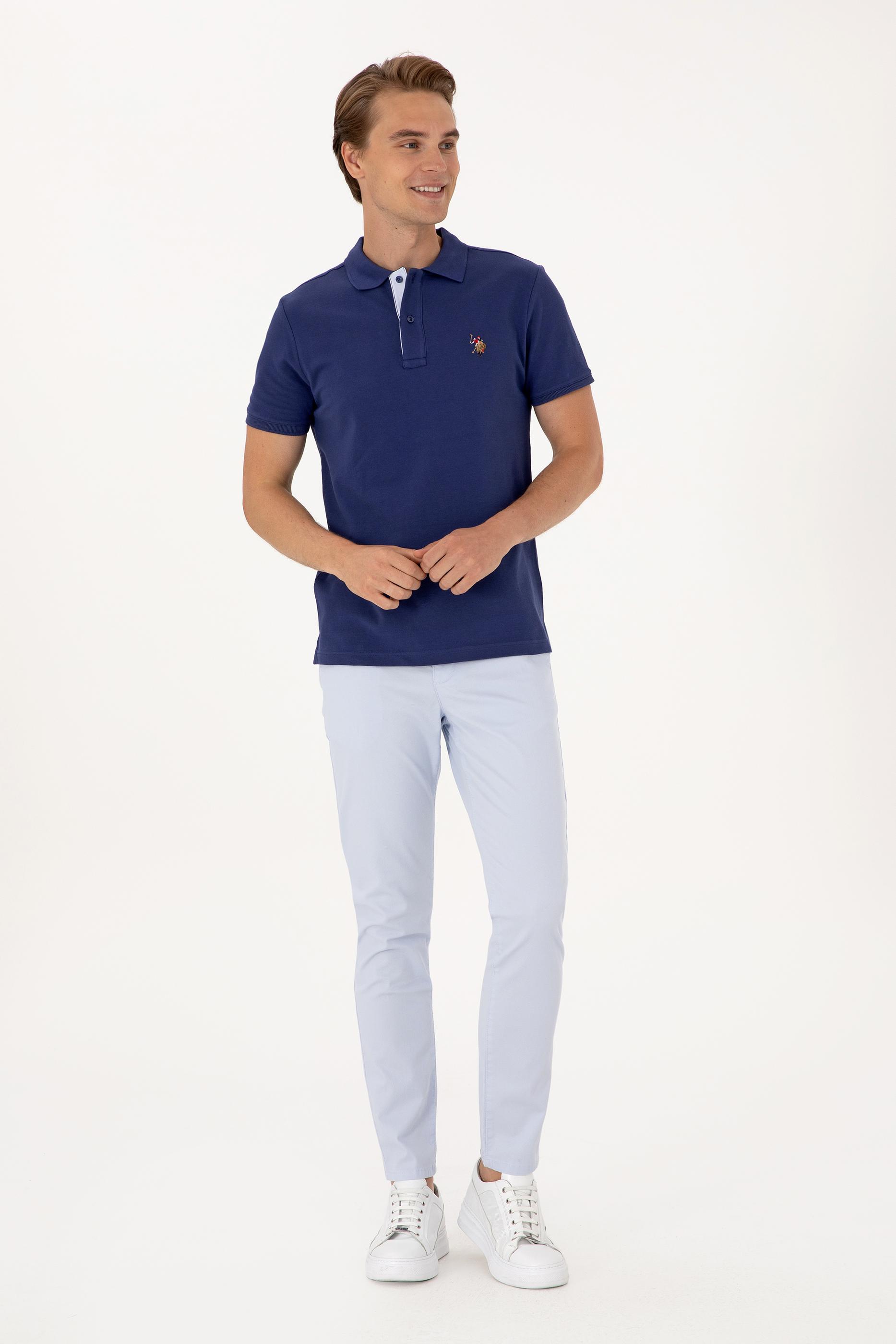 - Erkek Slim Fit Polo Yaka Açık Lacivert Basic Tişört