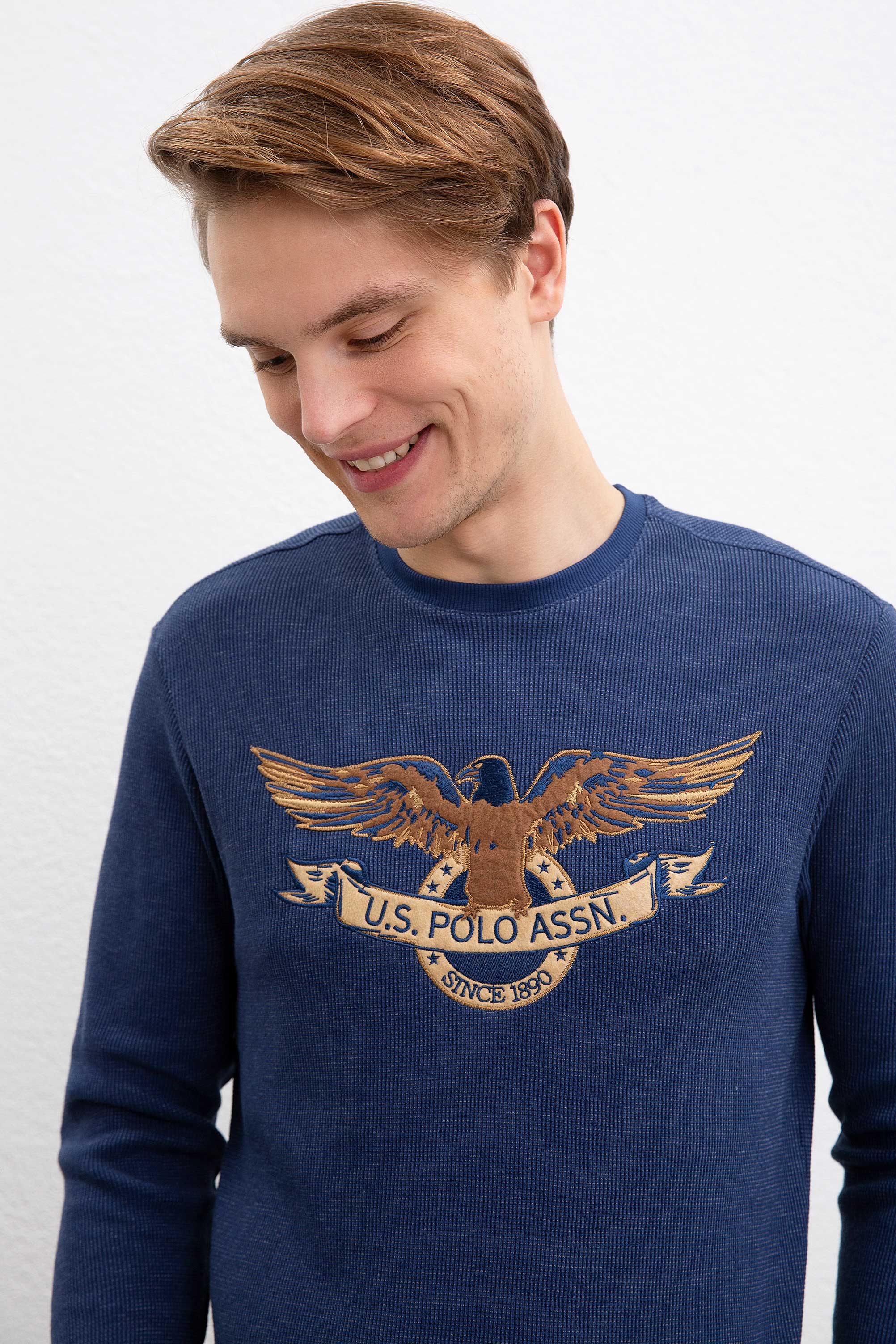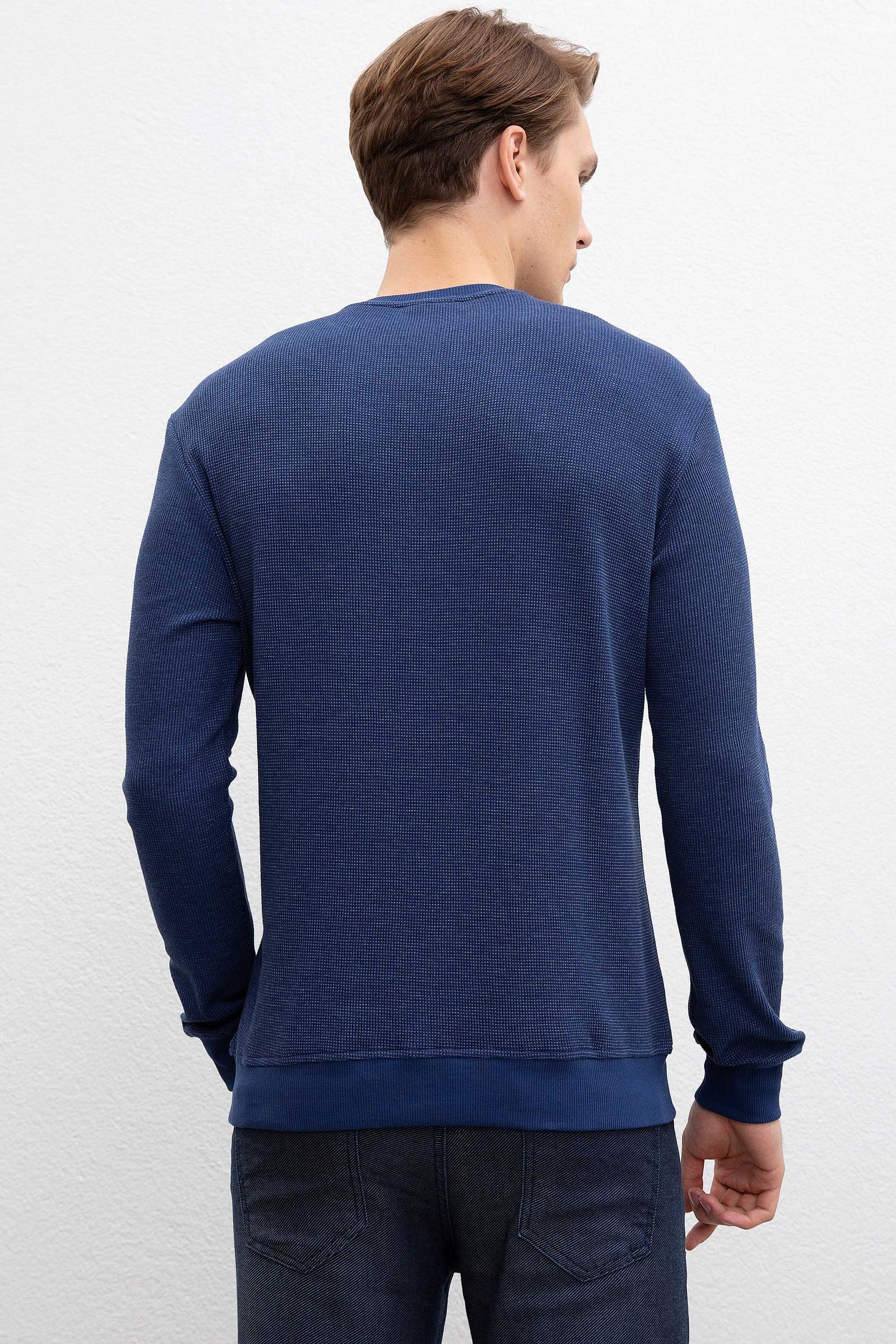 Erkek Açık Lacivert Bisiklet Yaka Sweatshirt