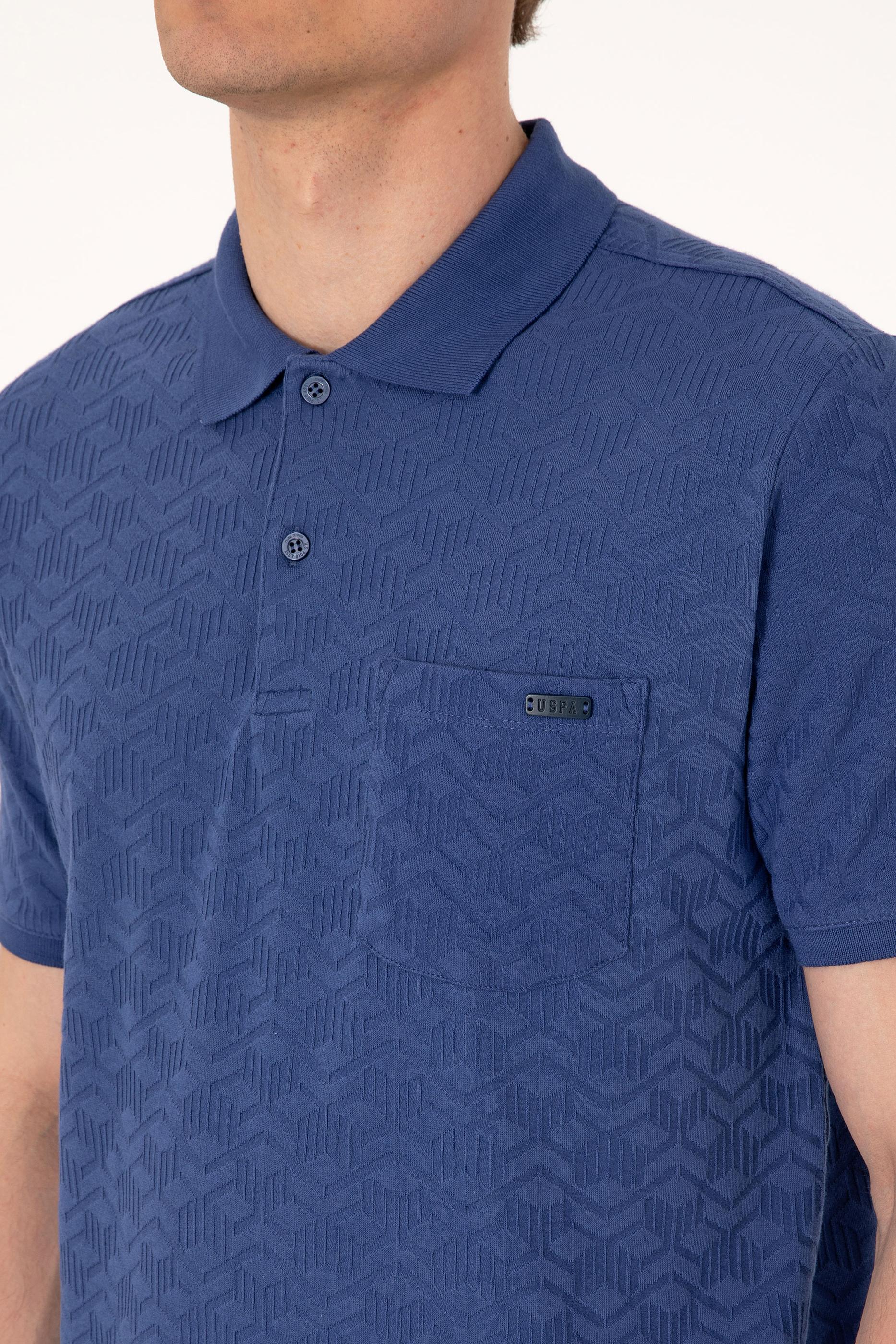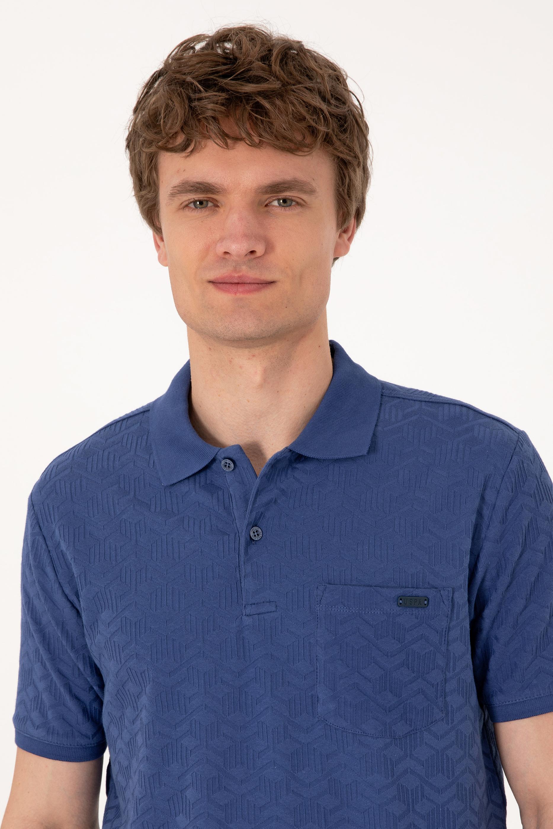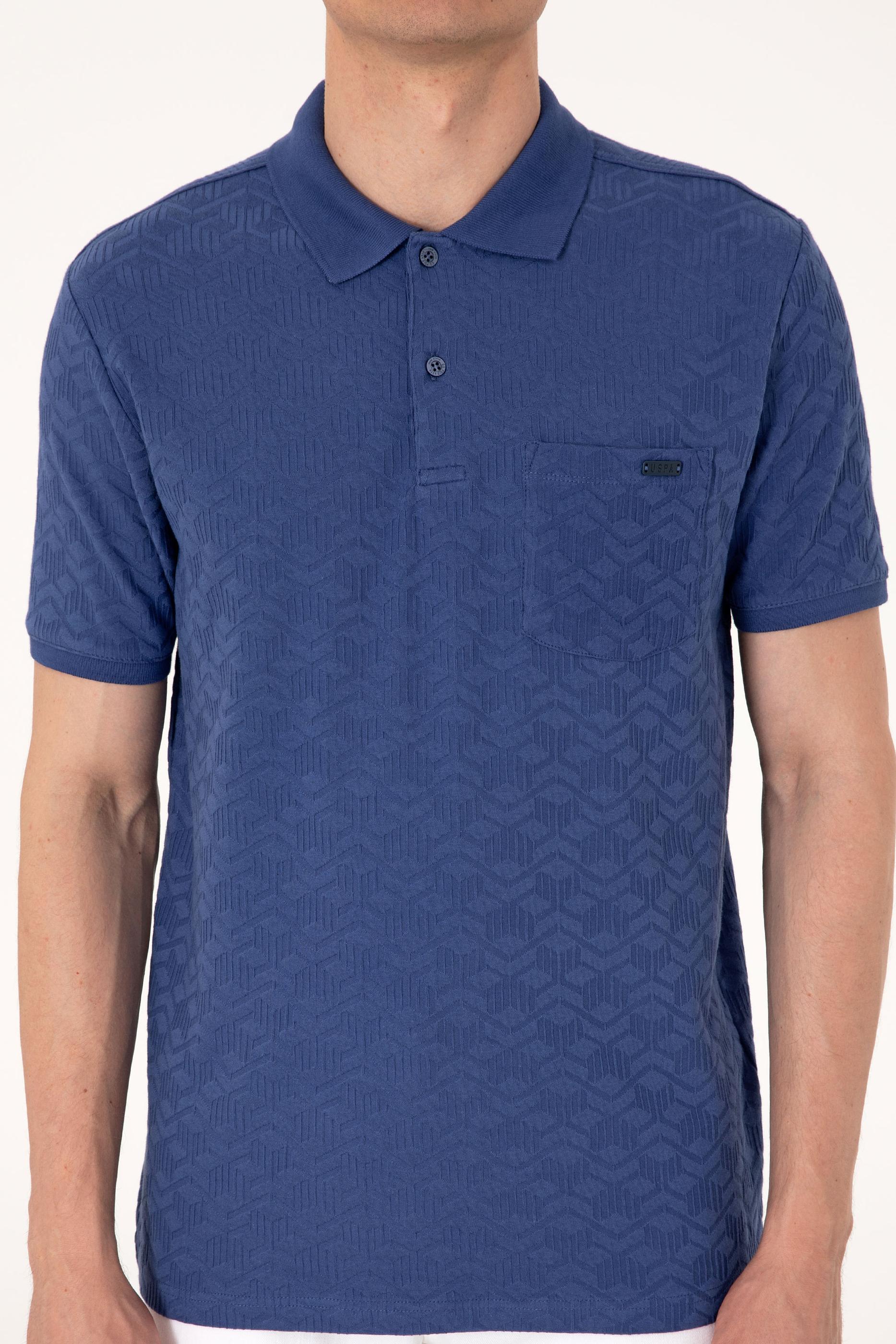 Erkek Regular Fit Polo Yaka Açık Lacivert Dokulu Tişört