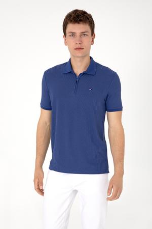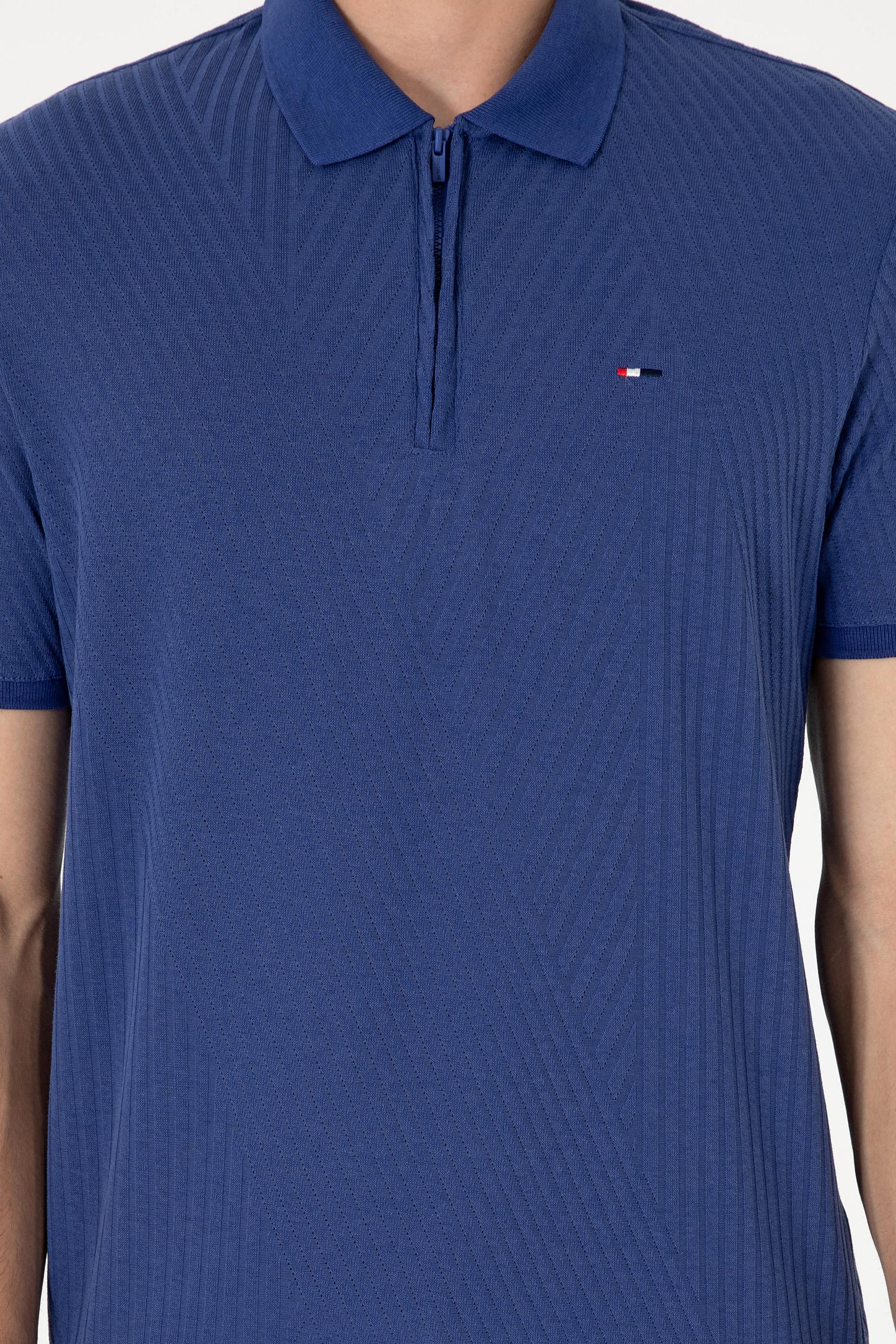 Erkek Regular Fit Fermuarlı Açık Lacivert Dokulu Tişört