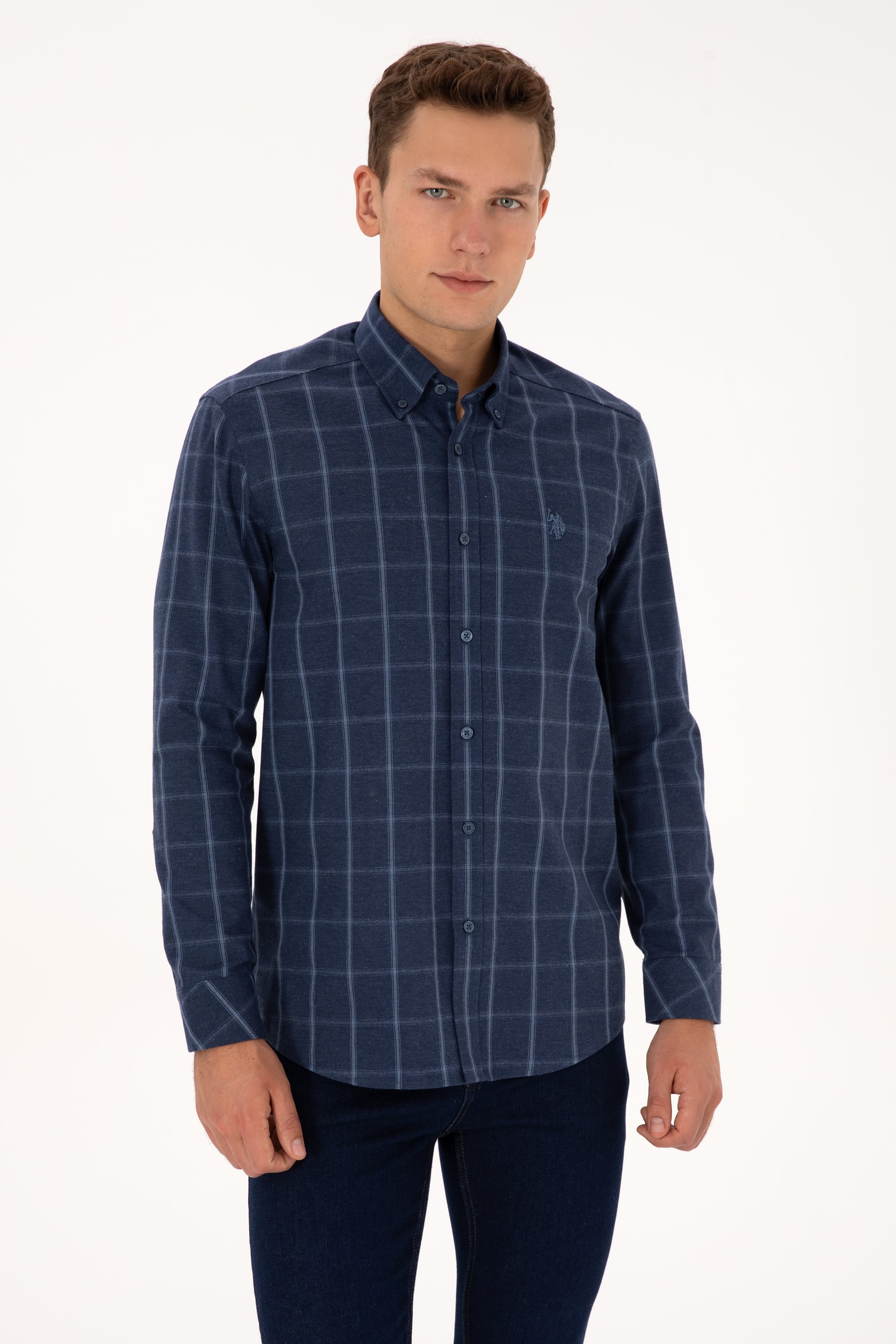 Erkek Açık Lacivert Uzun Kollu Gömlek