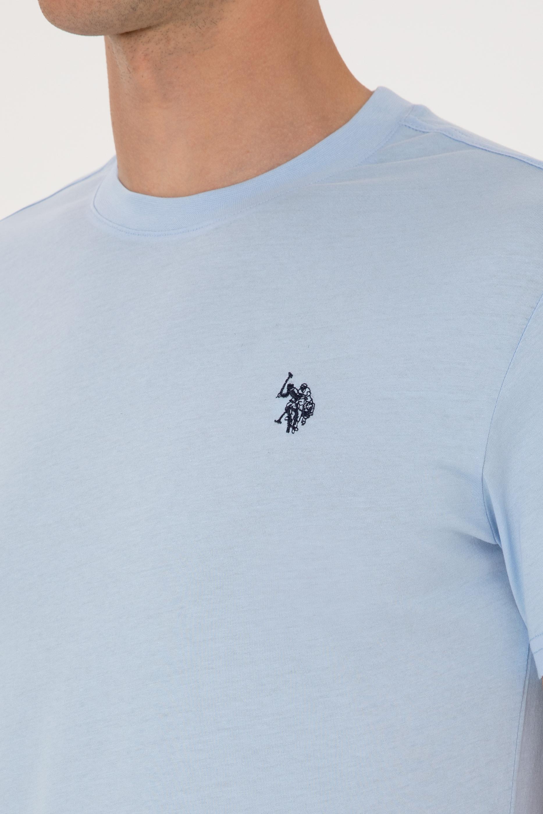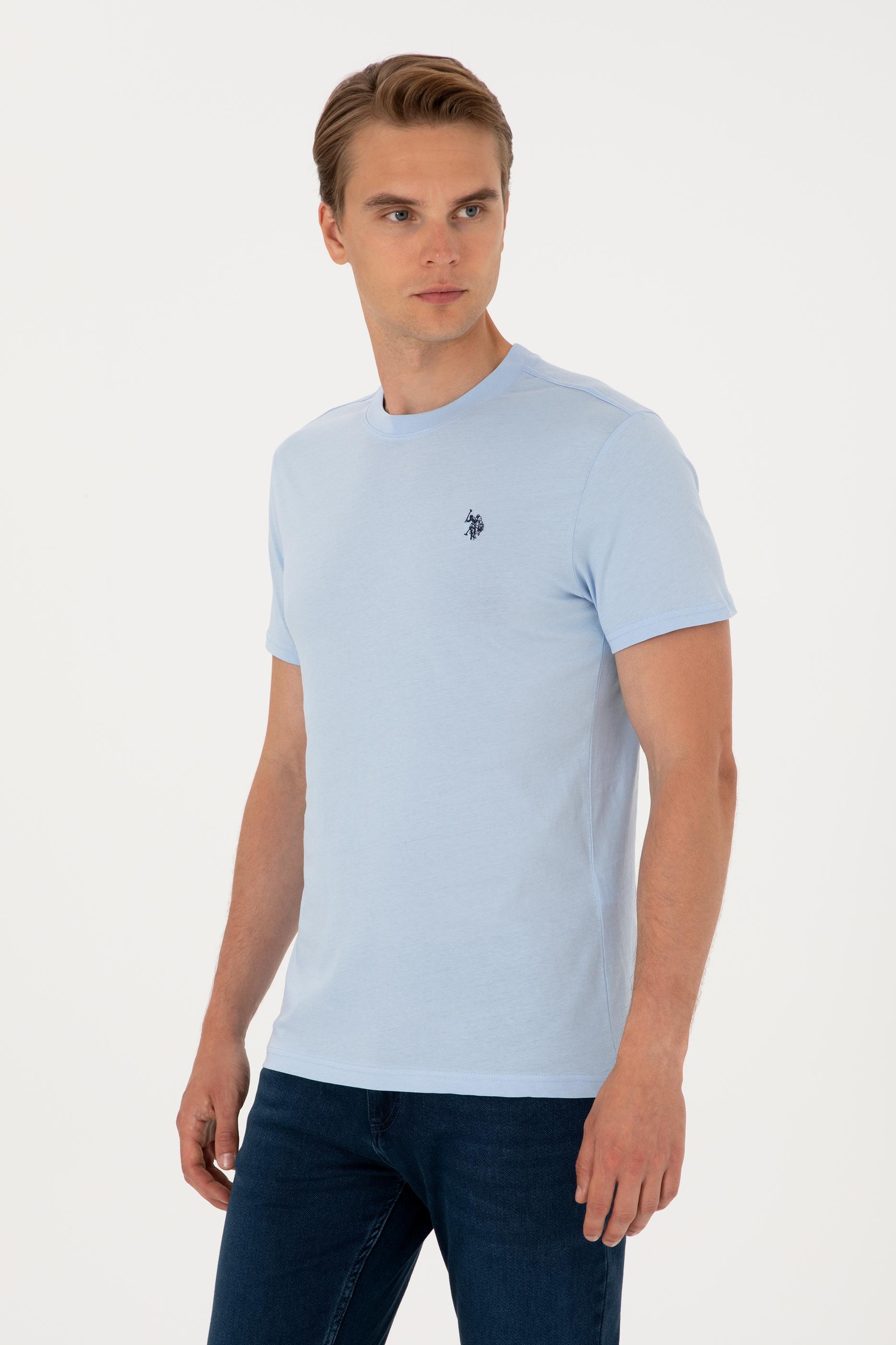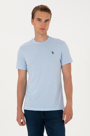 Erkek Regular Fit Bisiklet Yaka Açık Mavi Basic Tişört