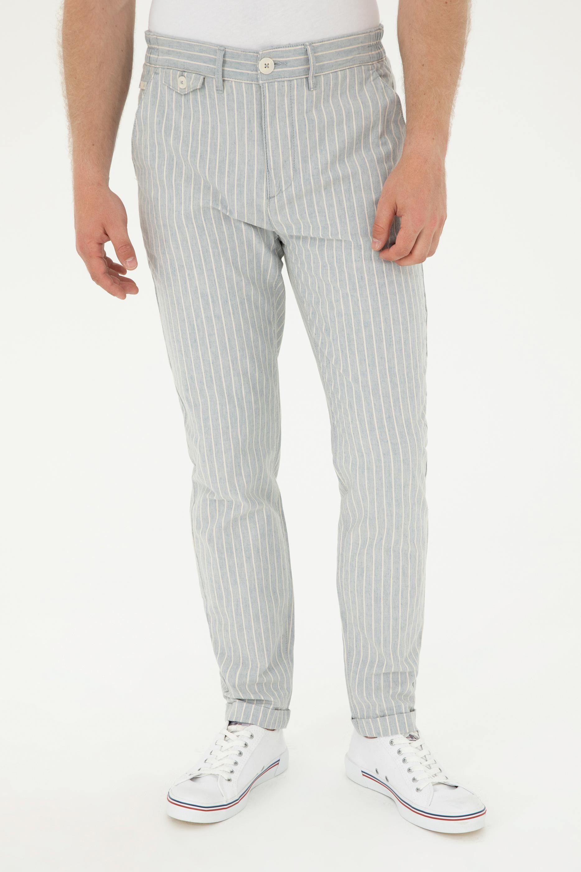 Erkek Açık Mavi Kanvas Pantolon