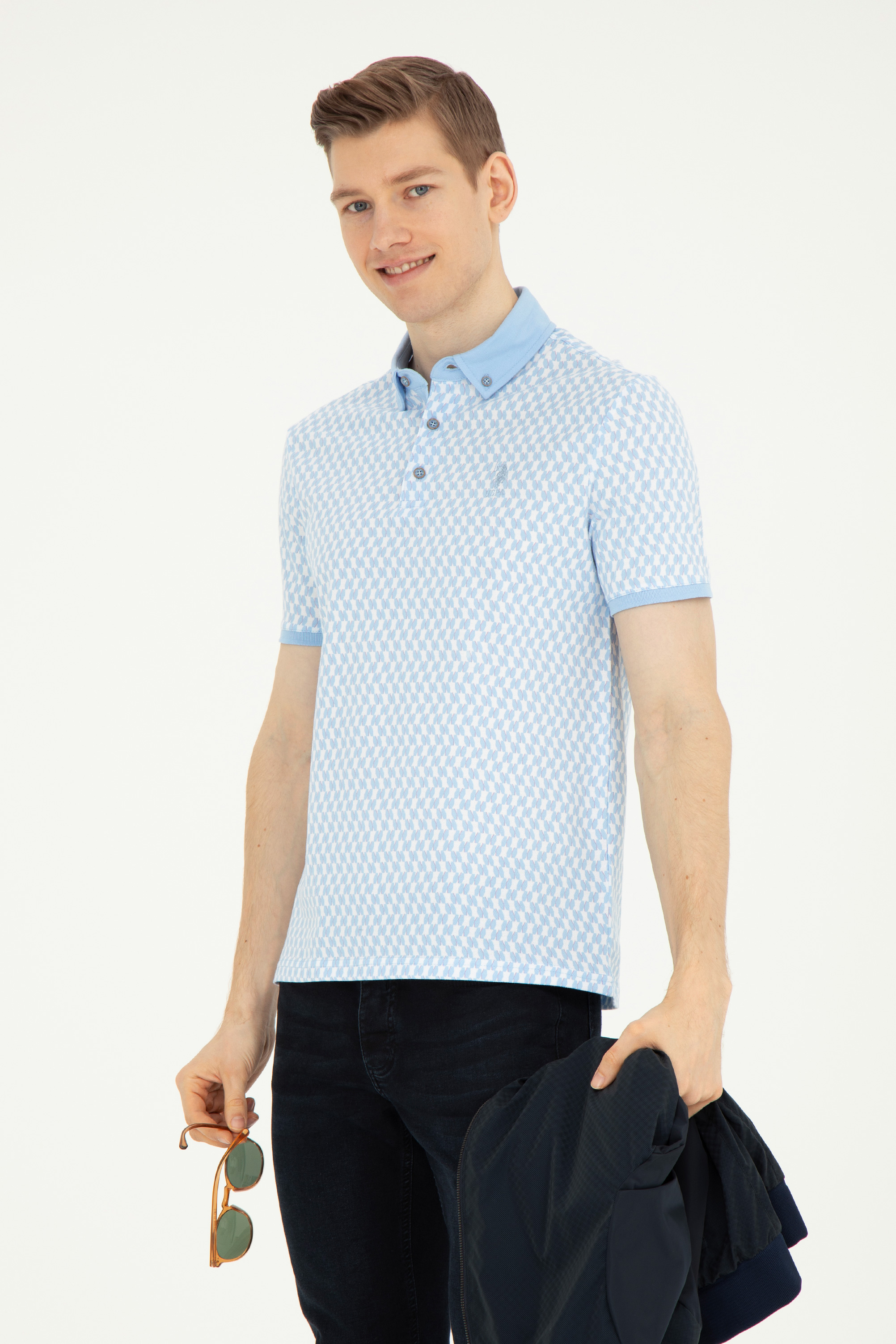 Erkek Slim Fit Polo Yaka Açık Mavi Tişört