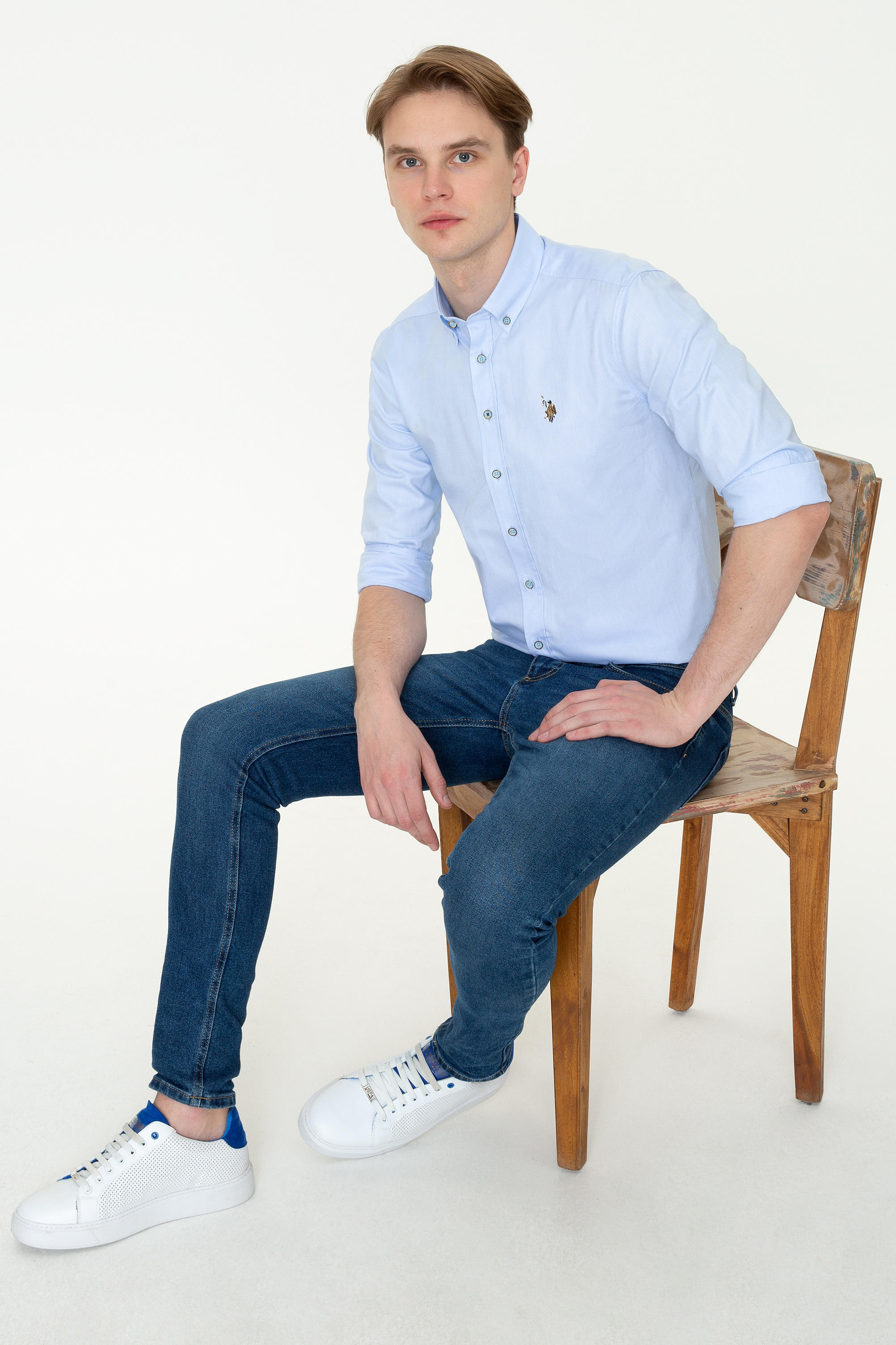 Erkek Açık Mavi Uzun Kollu Basic Gömlek