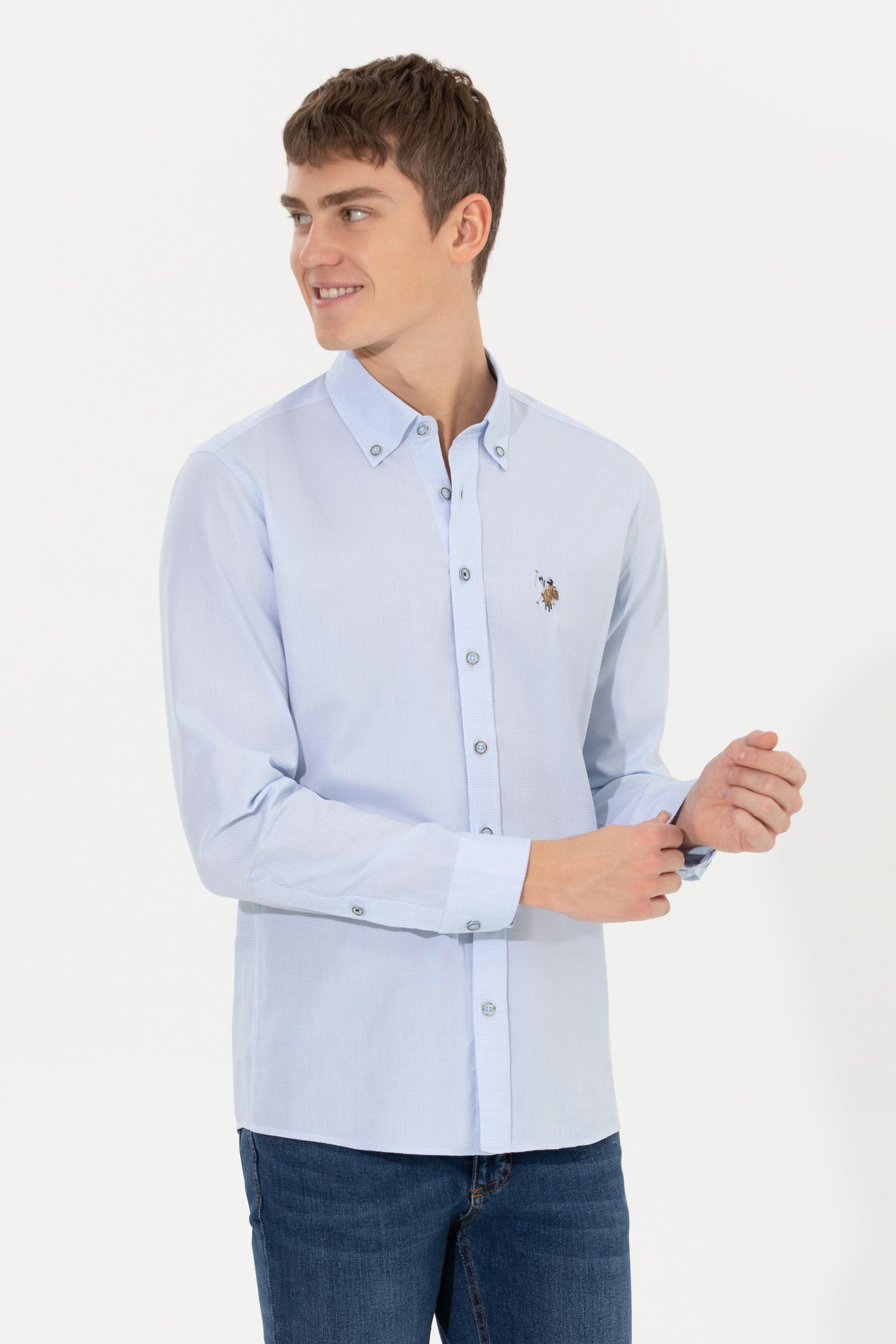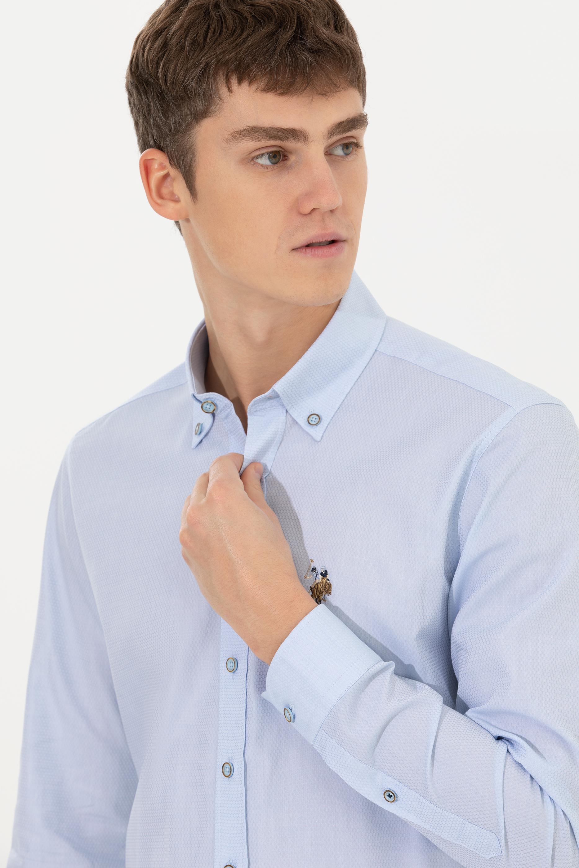 Erkek Açık Mavi Uzun Kollu Basic Gömlek