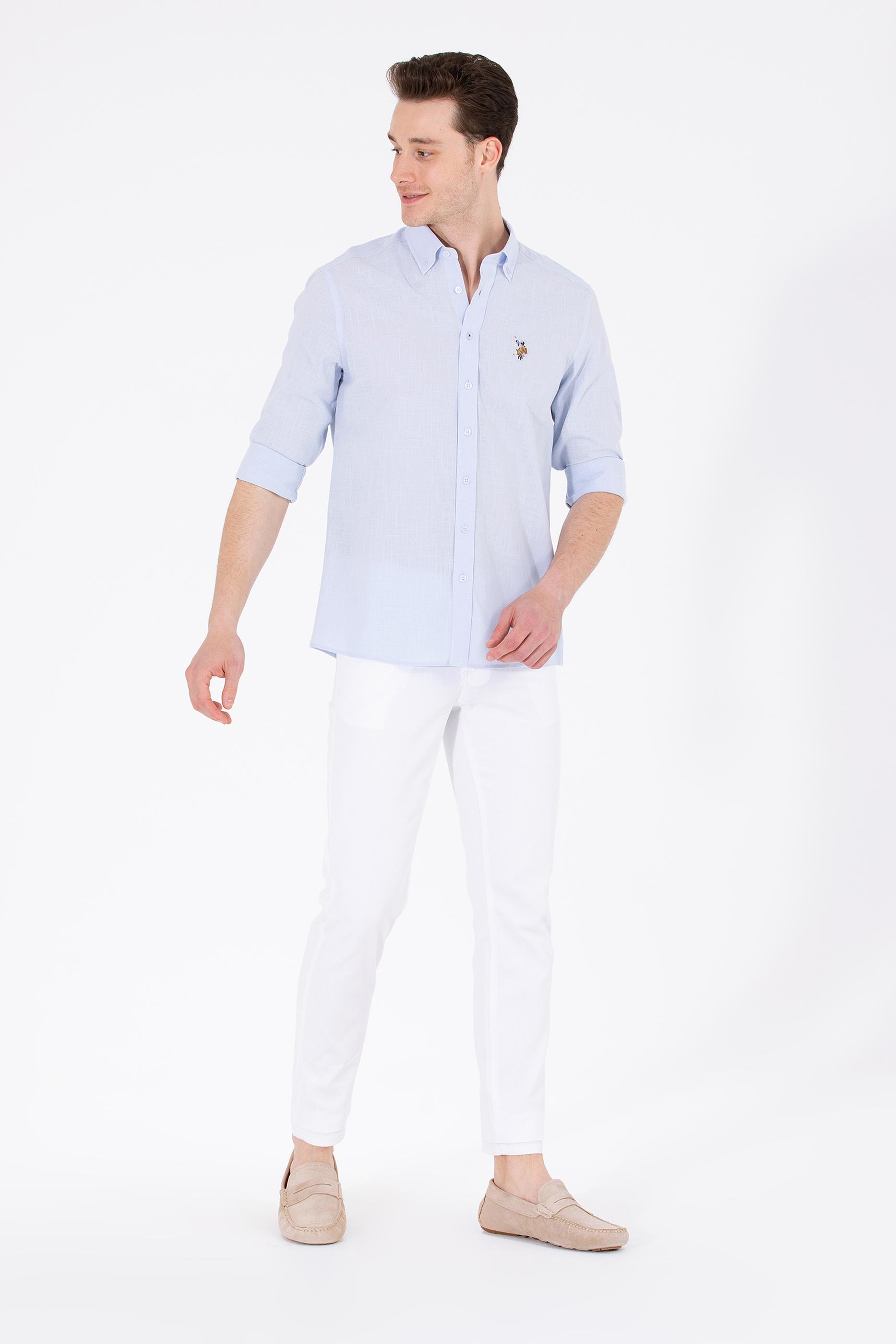 Erkek Açık Mavi Uzun Kollu Basic Gömlek