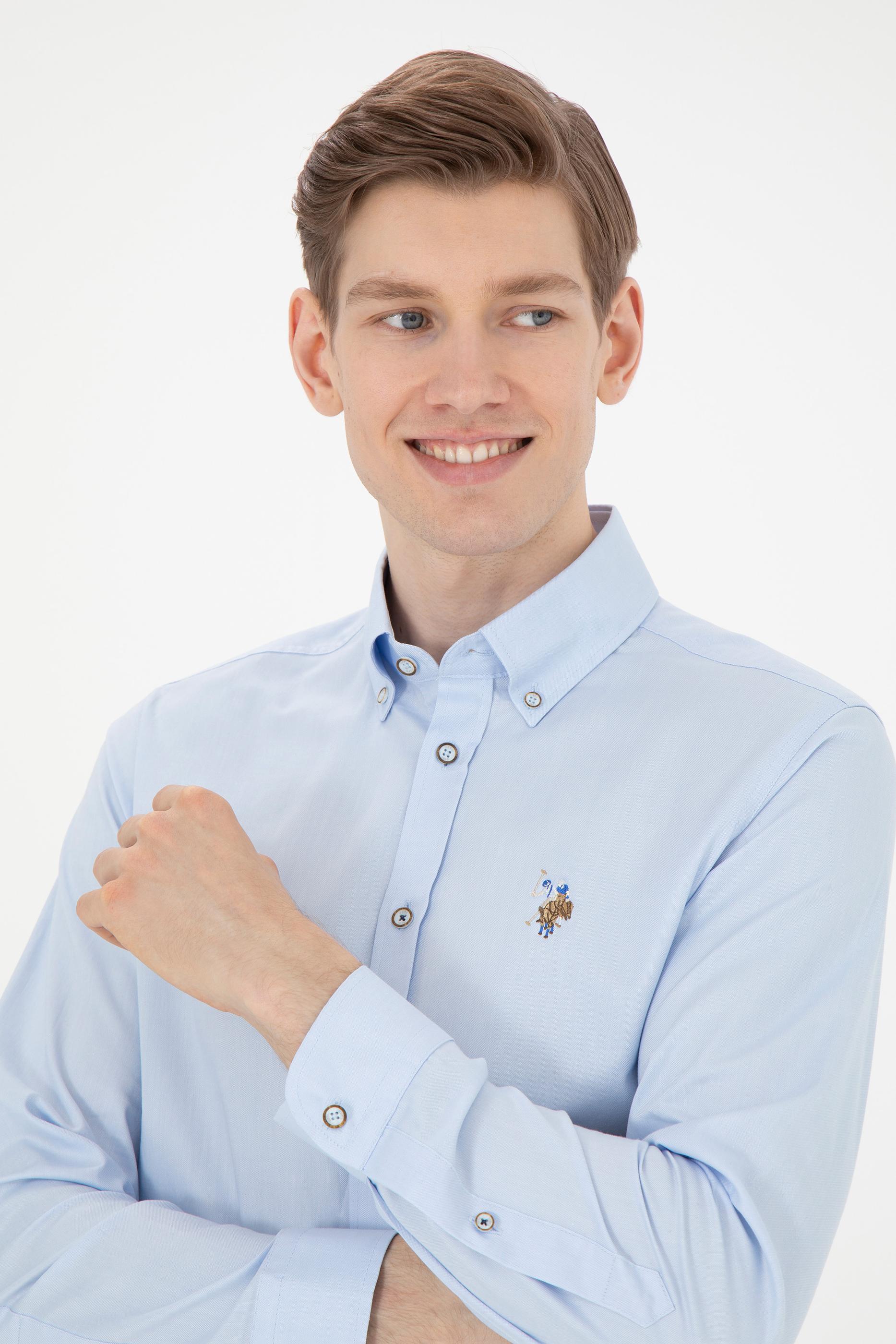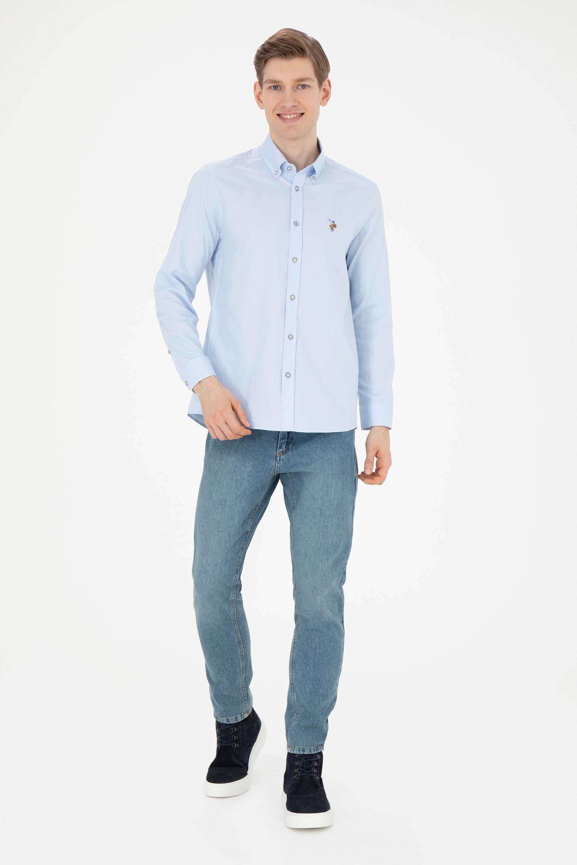 Erkek Açık Mavi Uzun Kollu Basic Gömlek