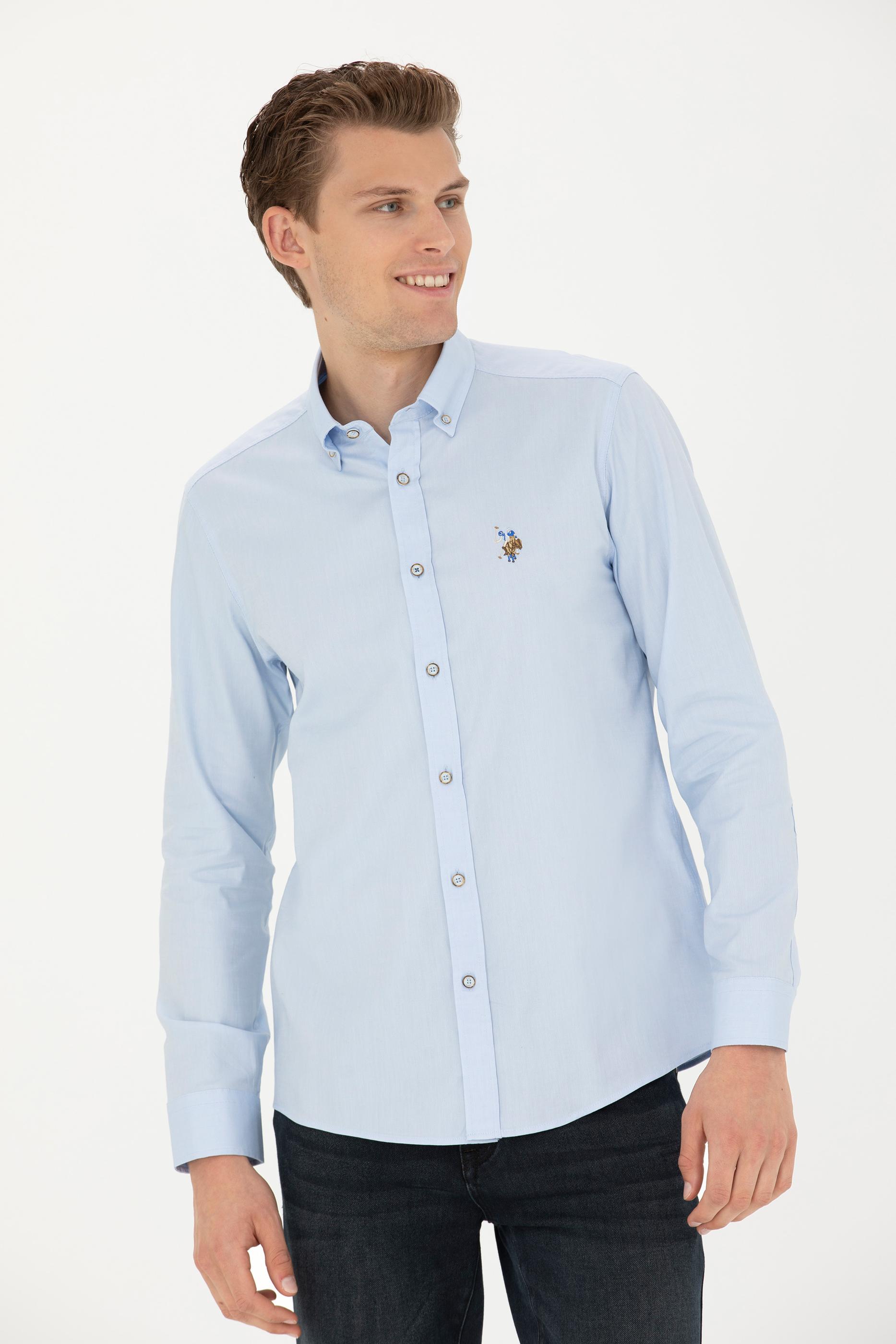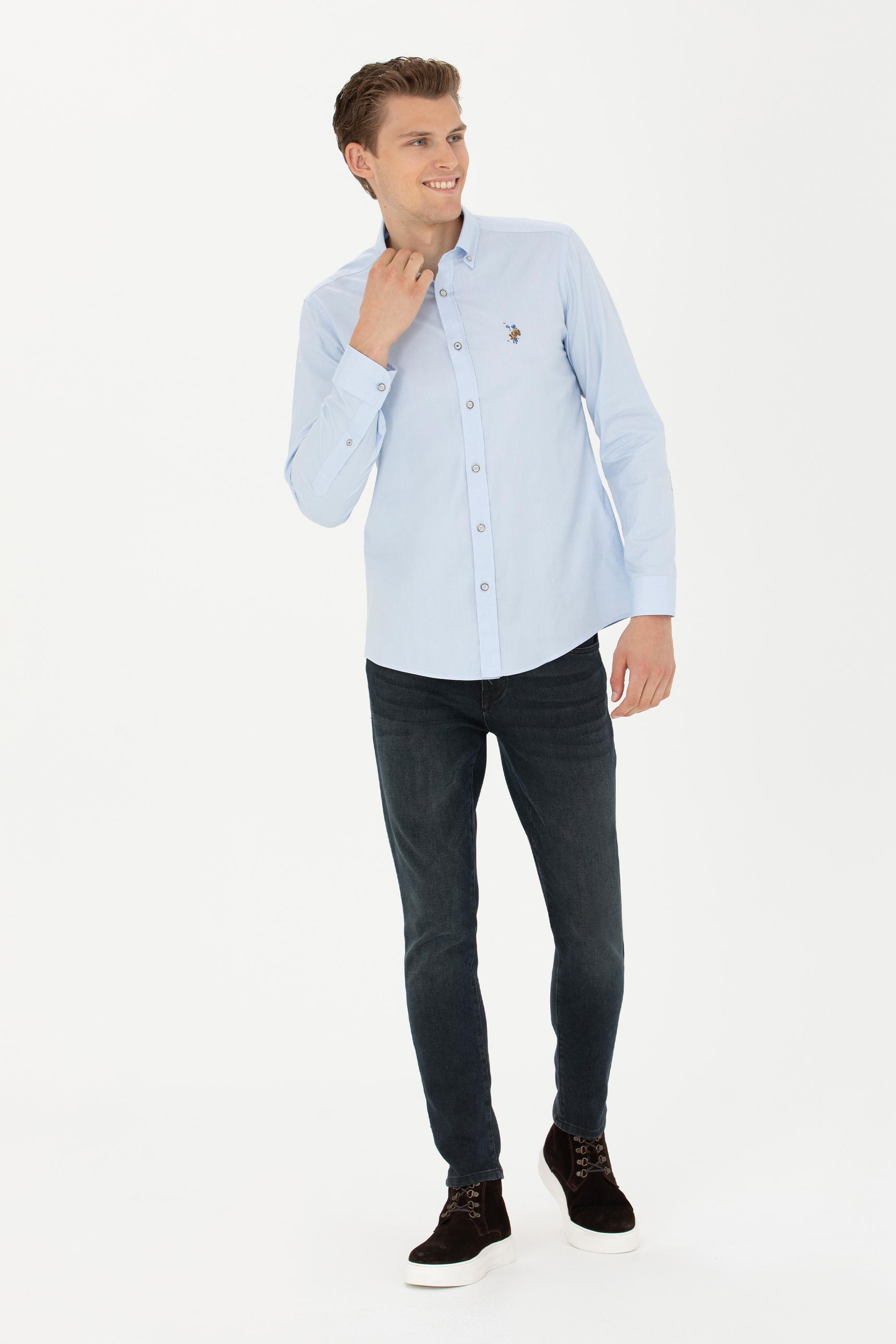 Erkek Açık Mavi Uzun Kollu Basic Gömlek