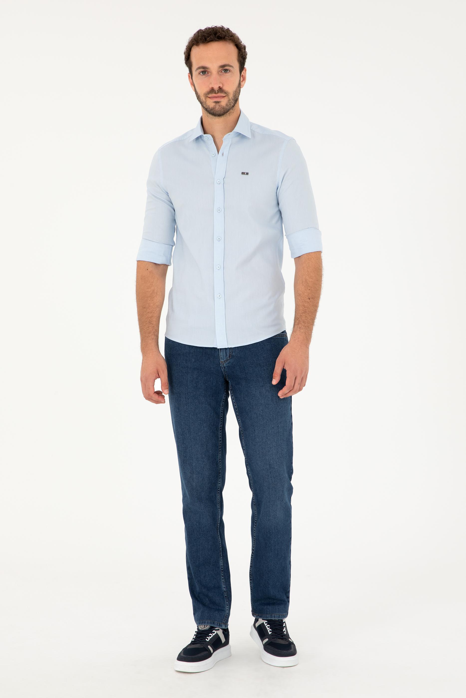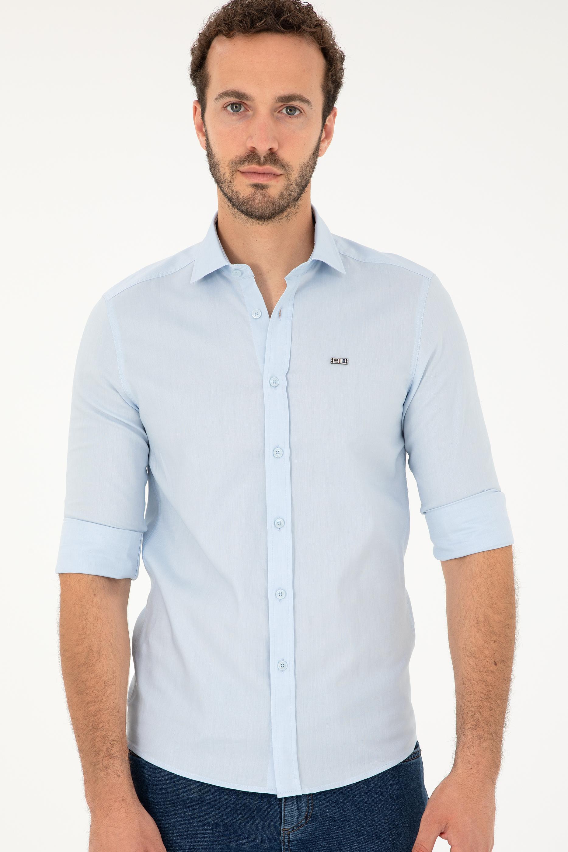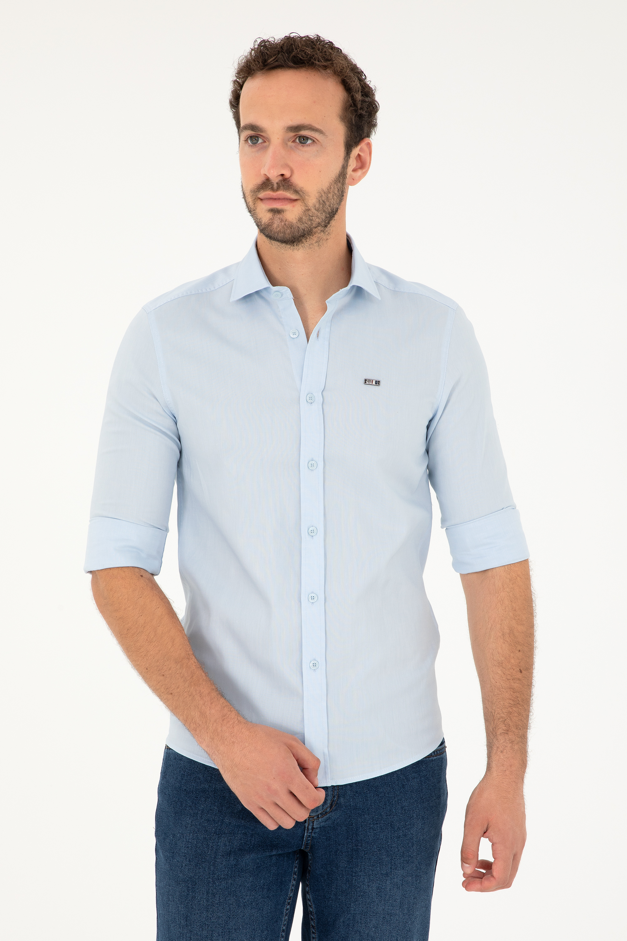 Erkek Açık Mavi Uzun Kollu Basic Gömlek