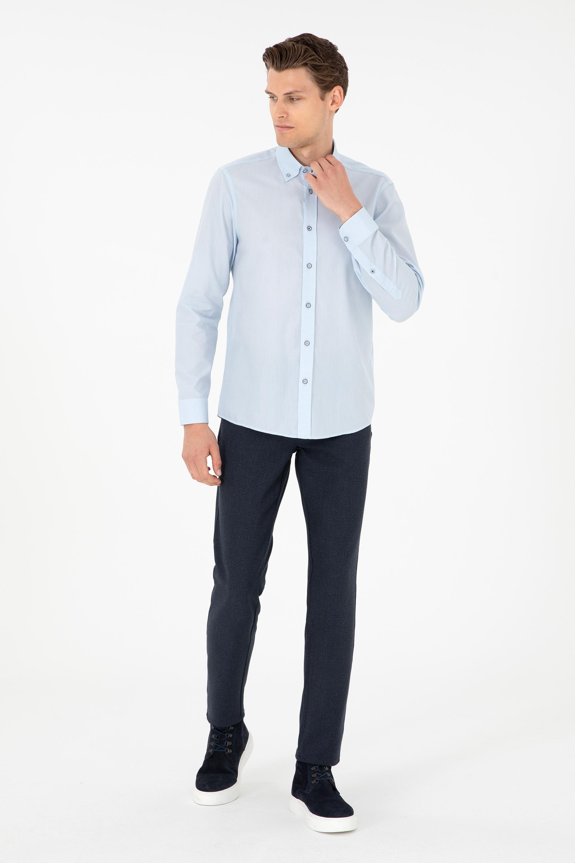 Erkek Açık Mavi Uzun Kollu Basic Gömlek