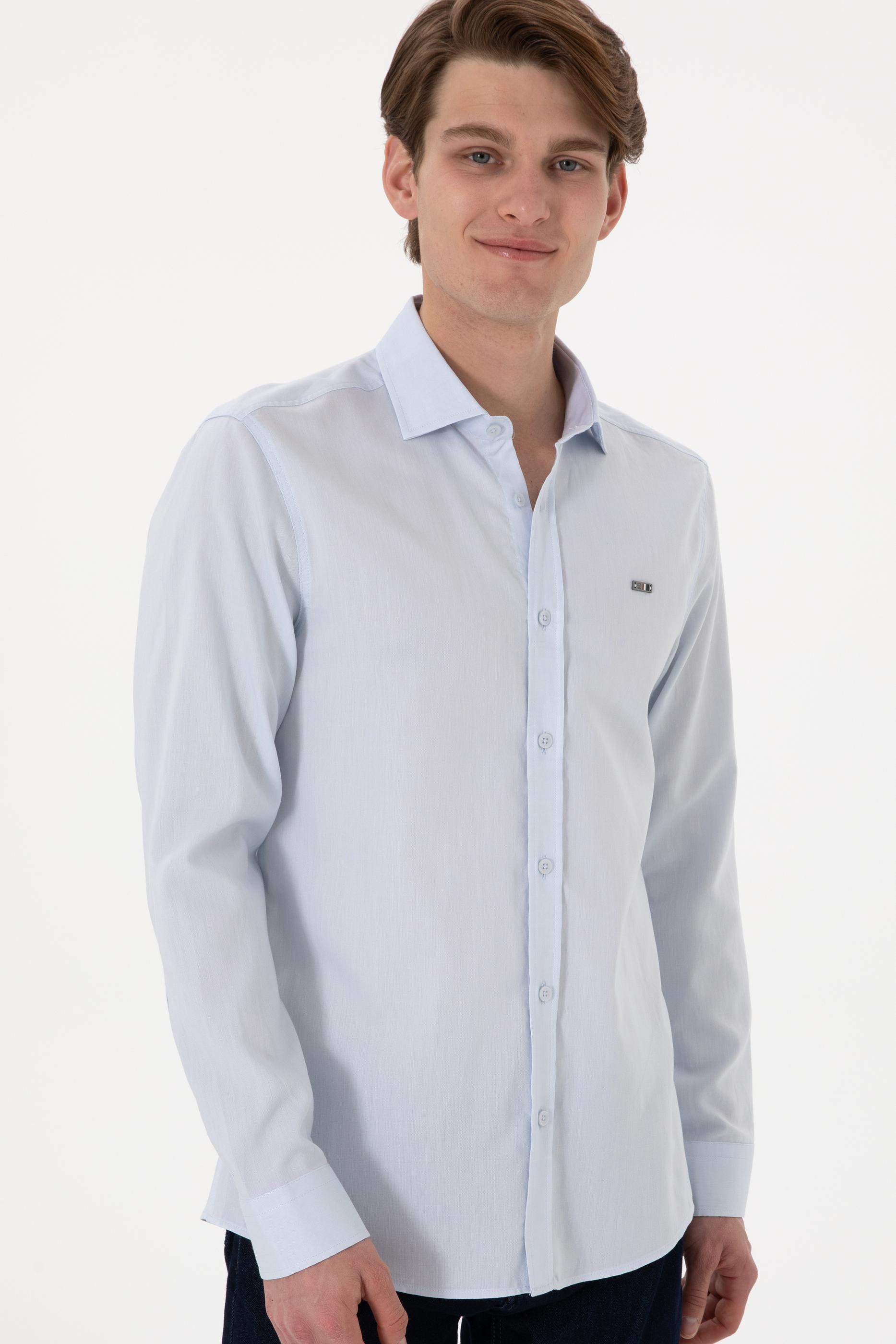 Erkek Açık Mavi Uzun Kollu Basic Gömlek