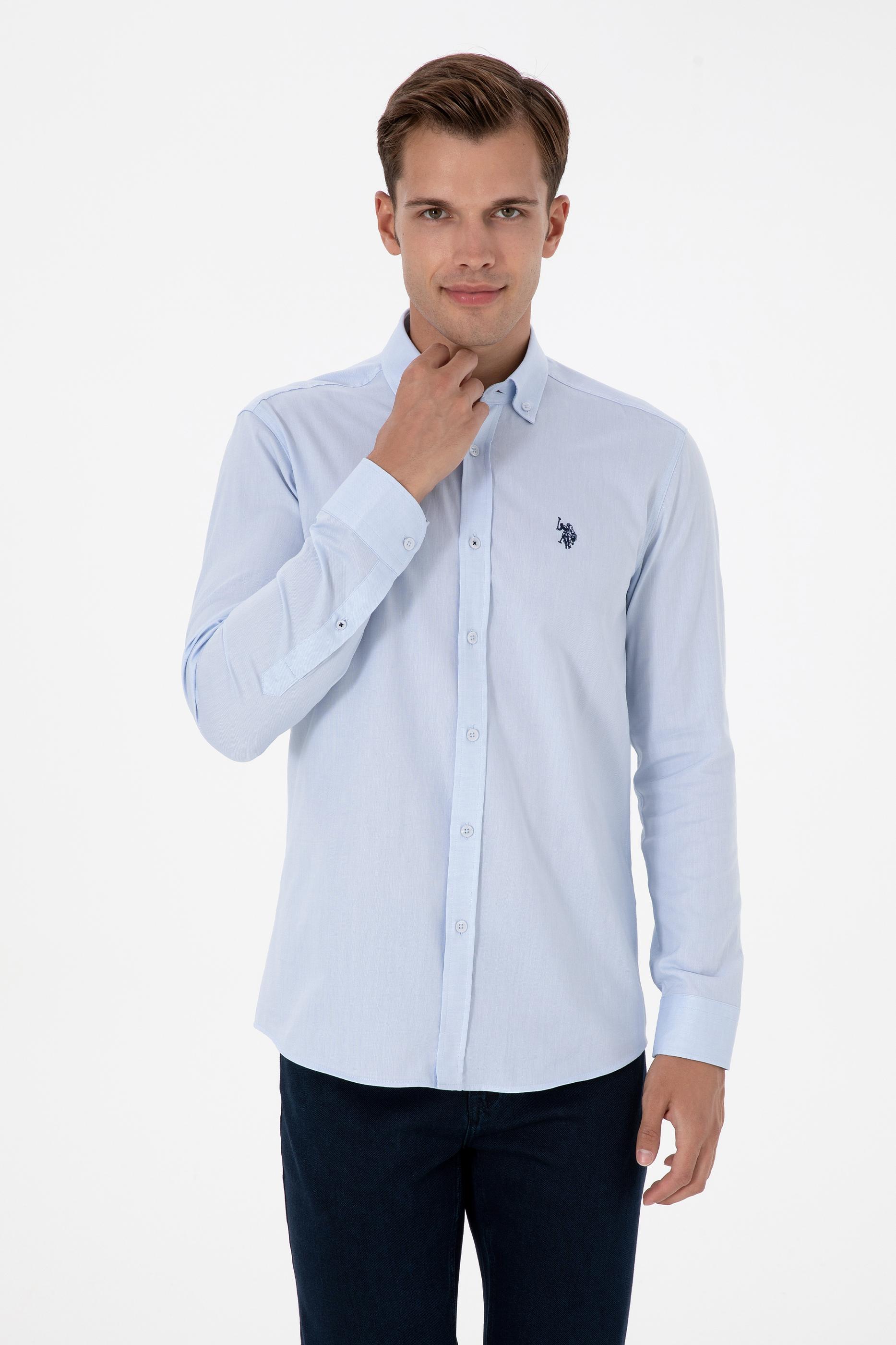 Erkek Açık Mavi Uzun Kollu Basic Gömlek