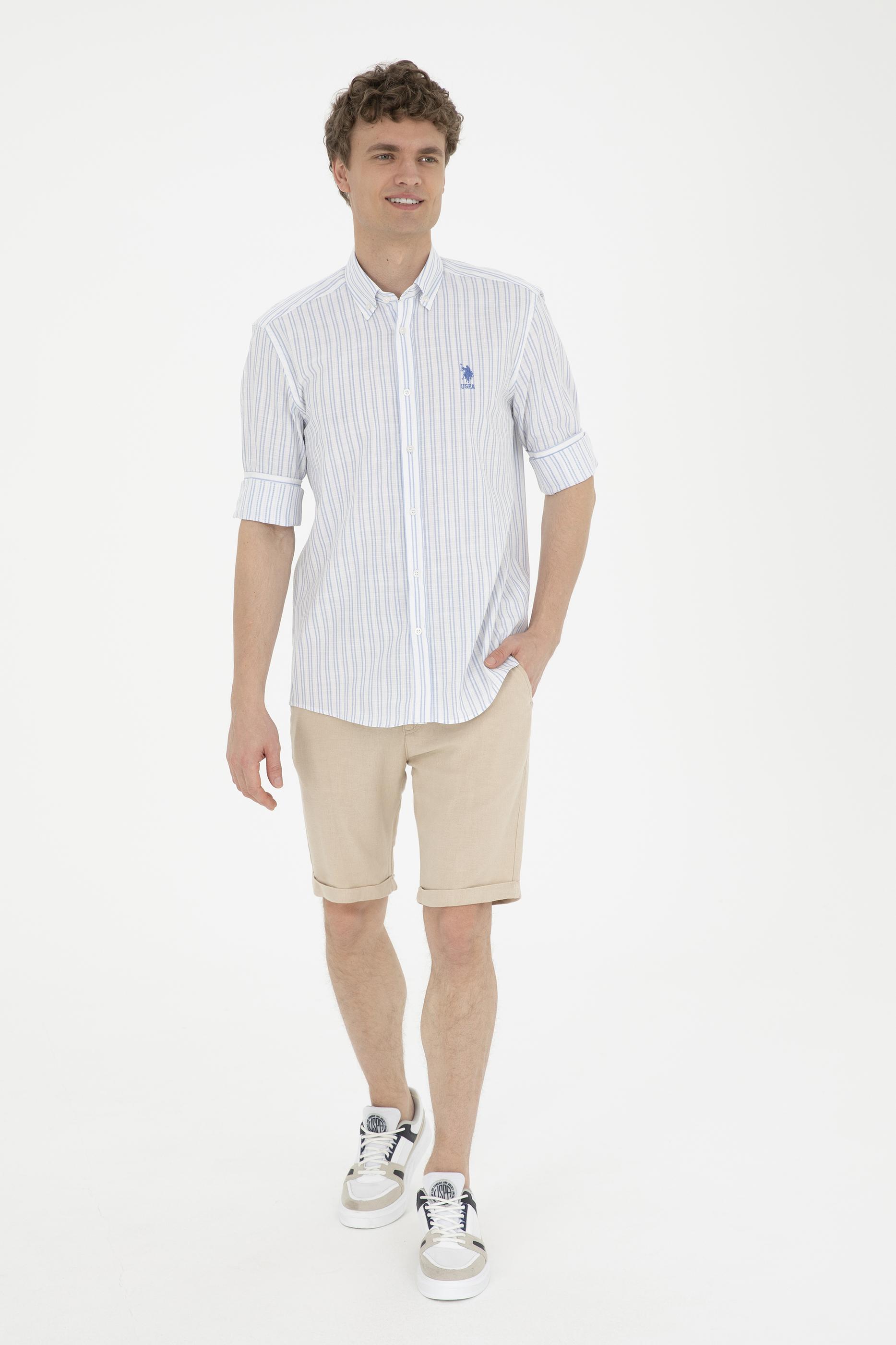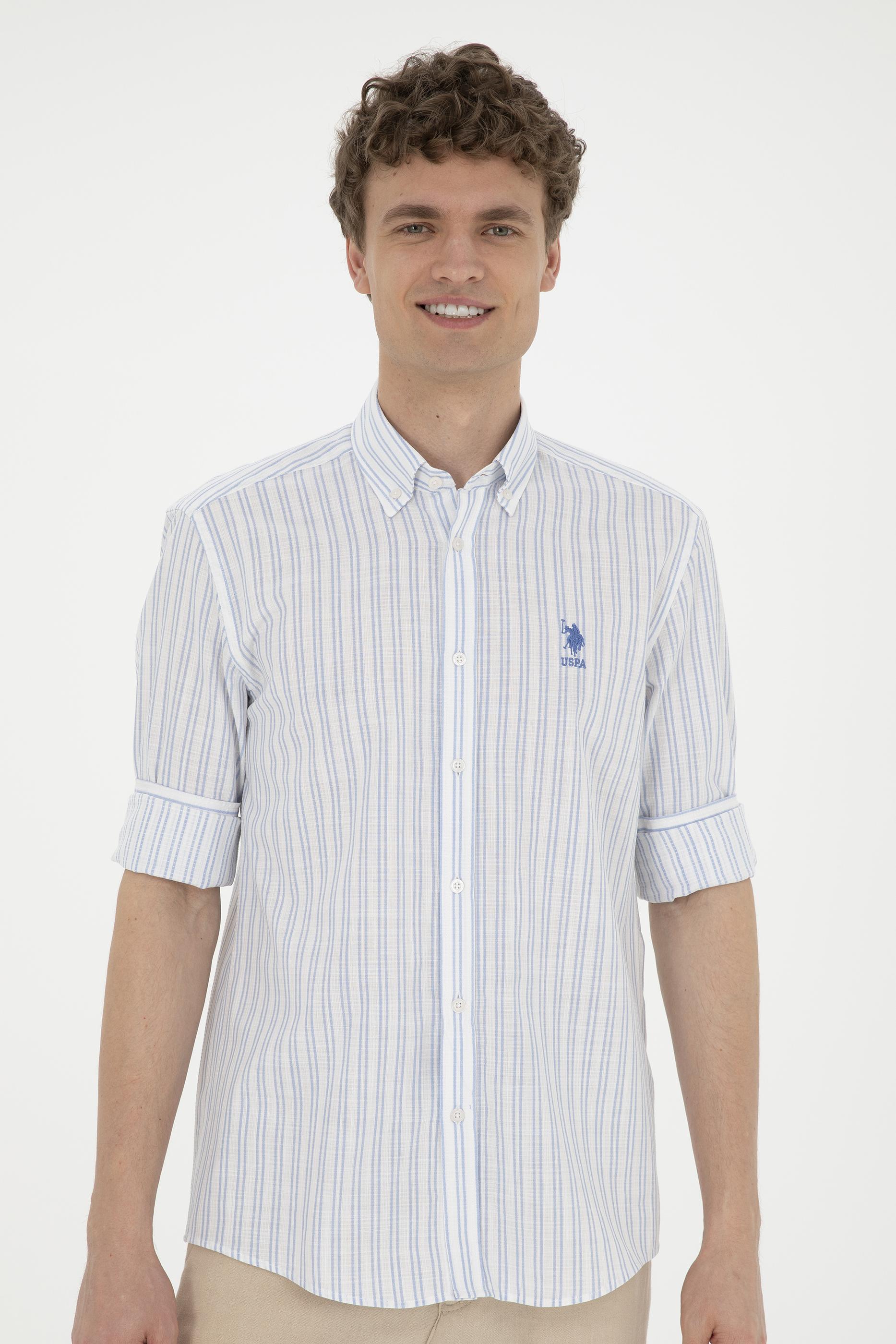 Erkek Açık Mavi Çizgili Beyaz Gömlek