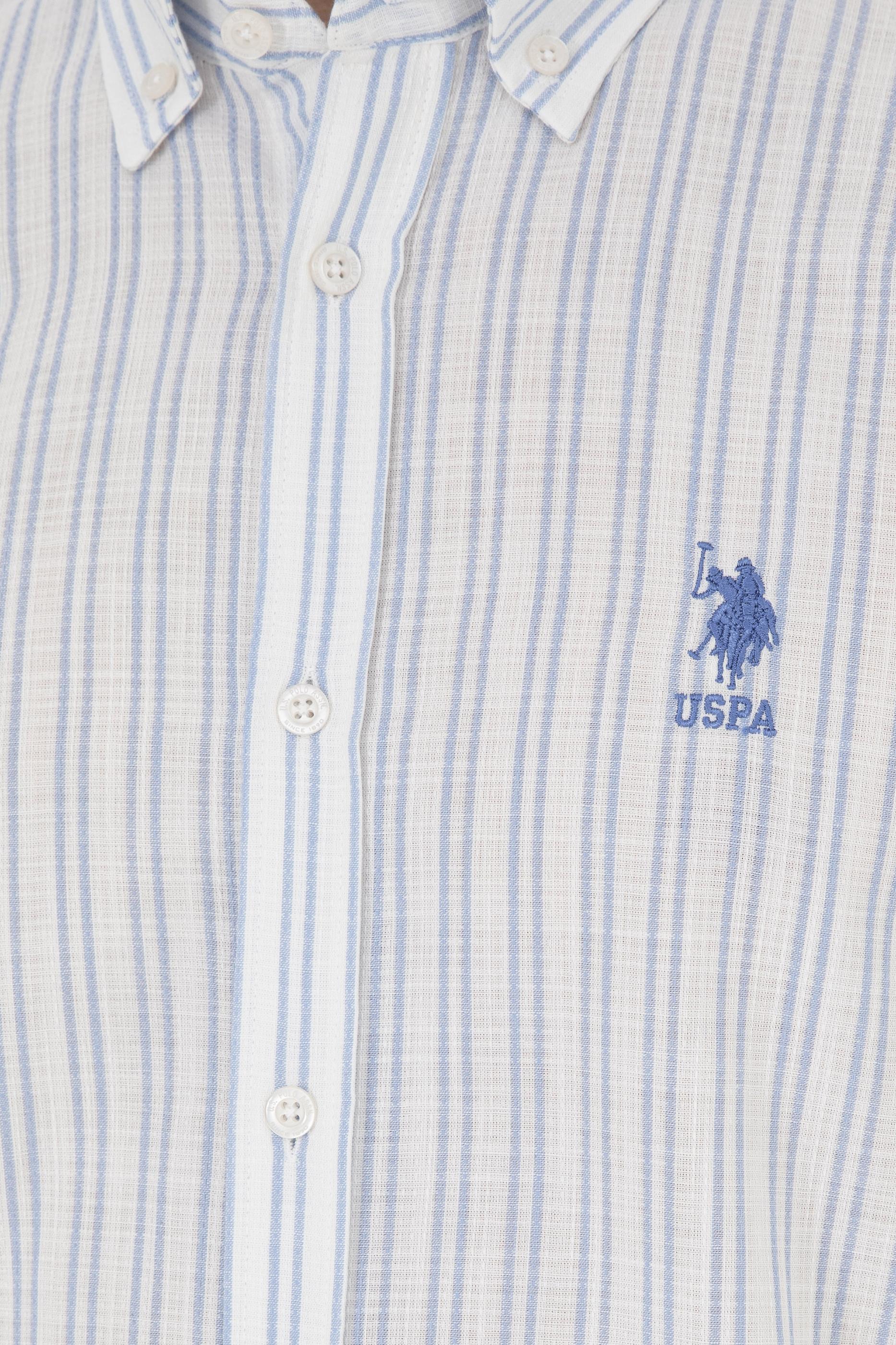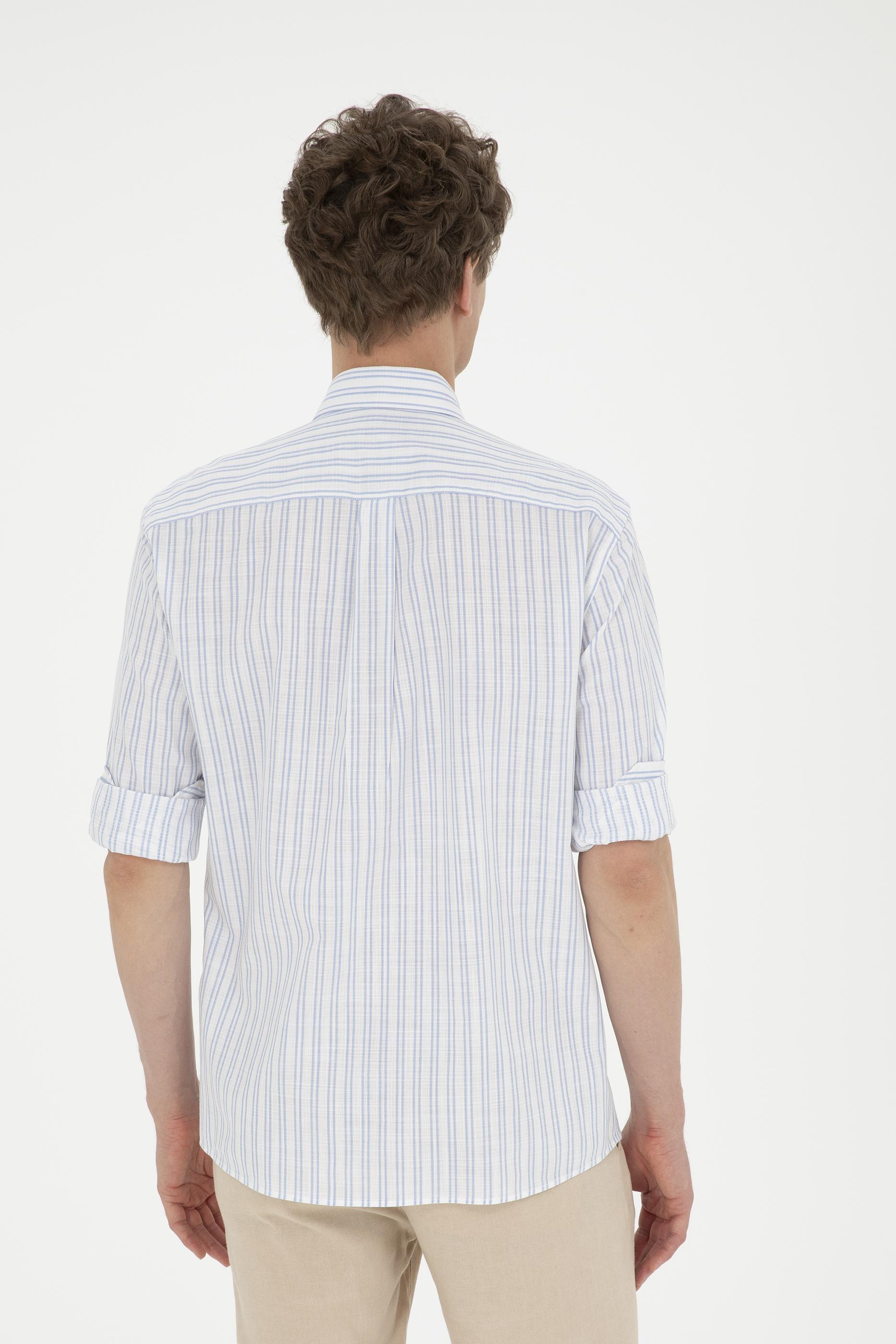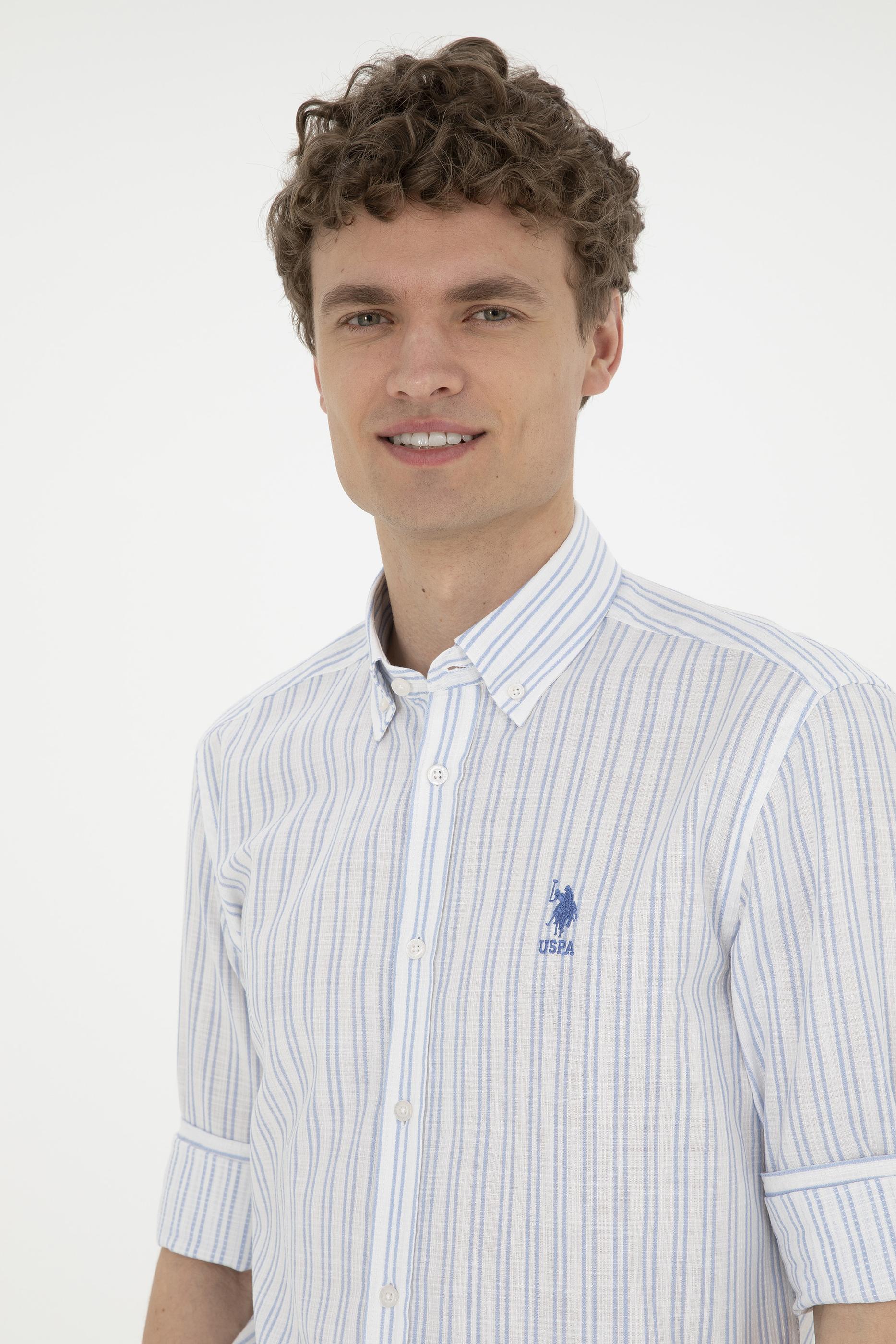 - Erkek Açık Mavi Çizgili Beyaz Gömlek