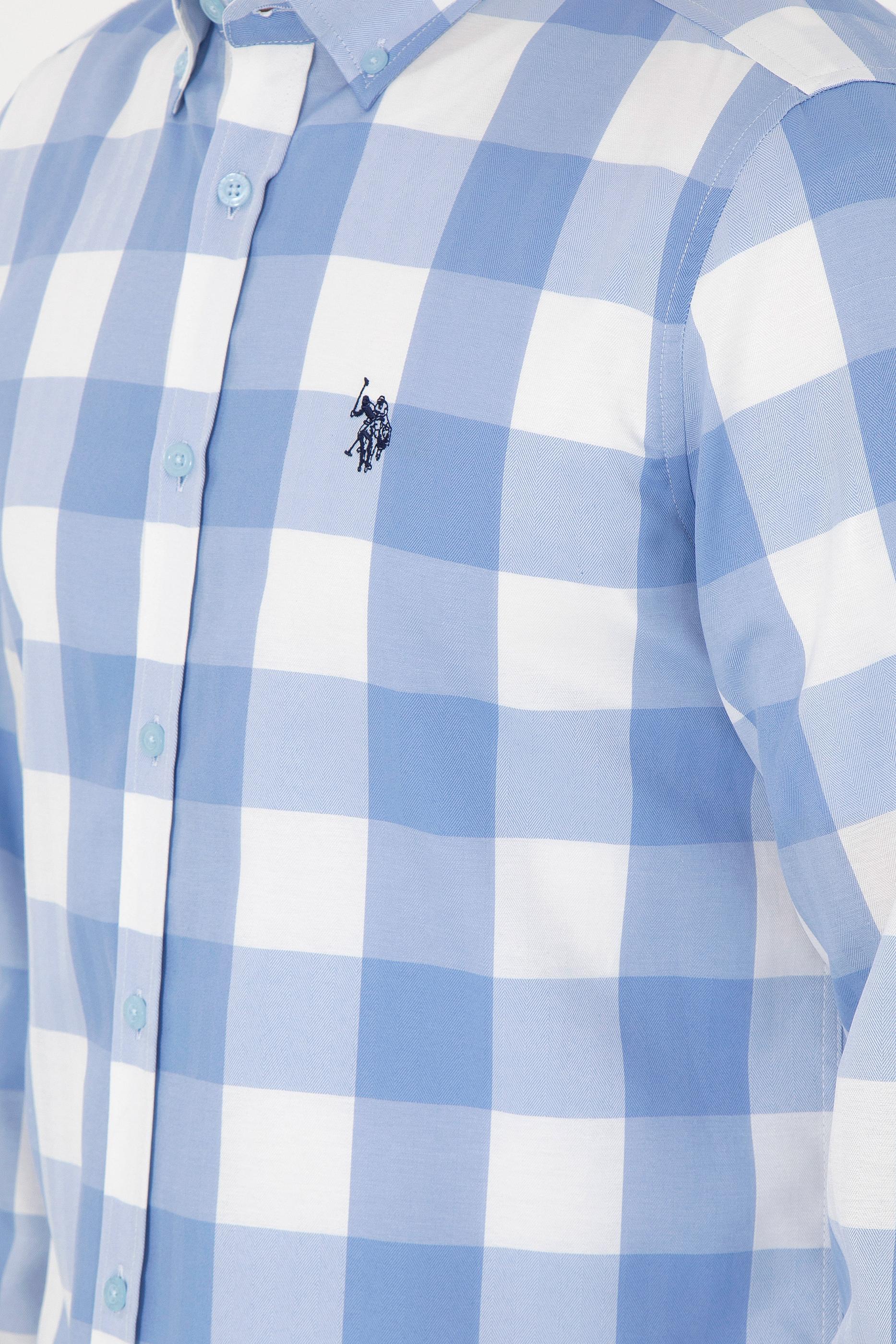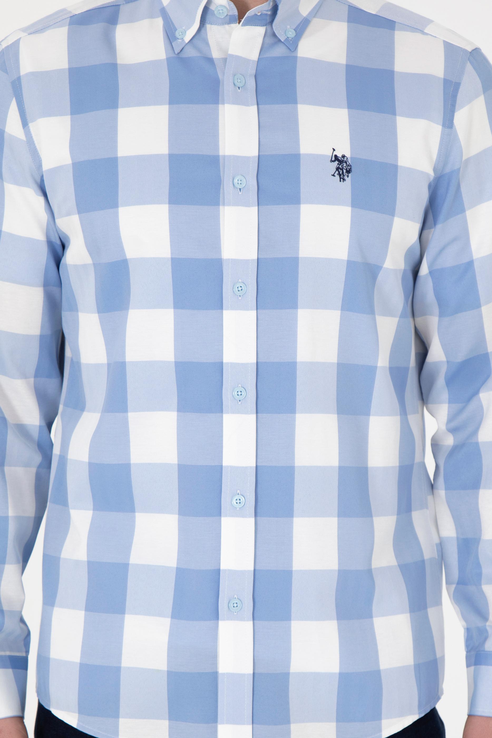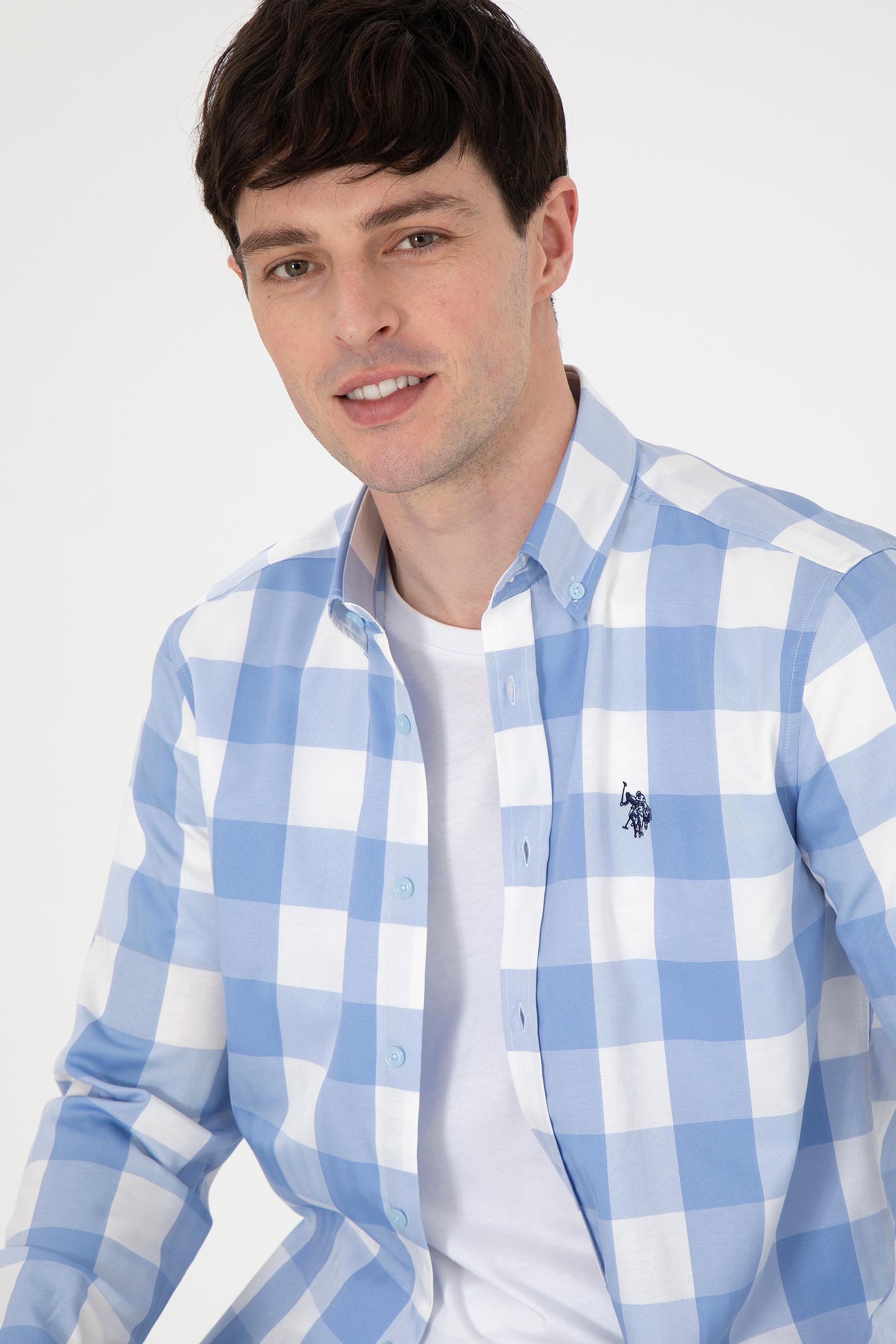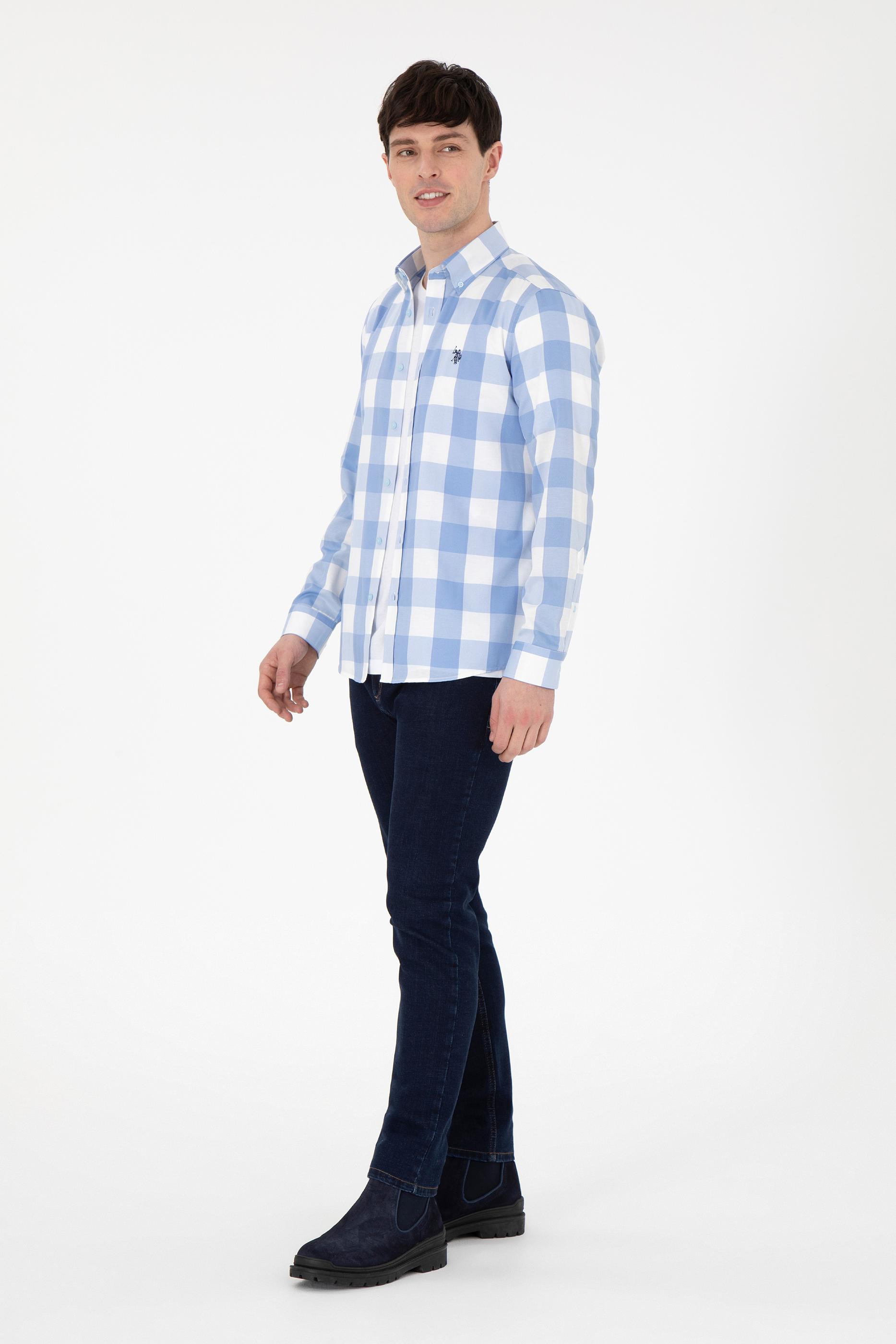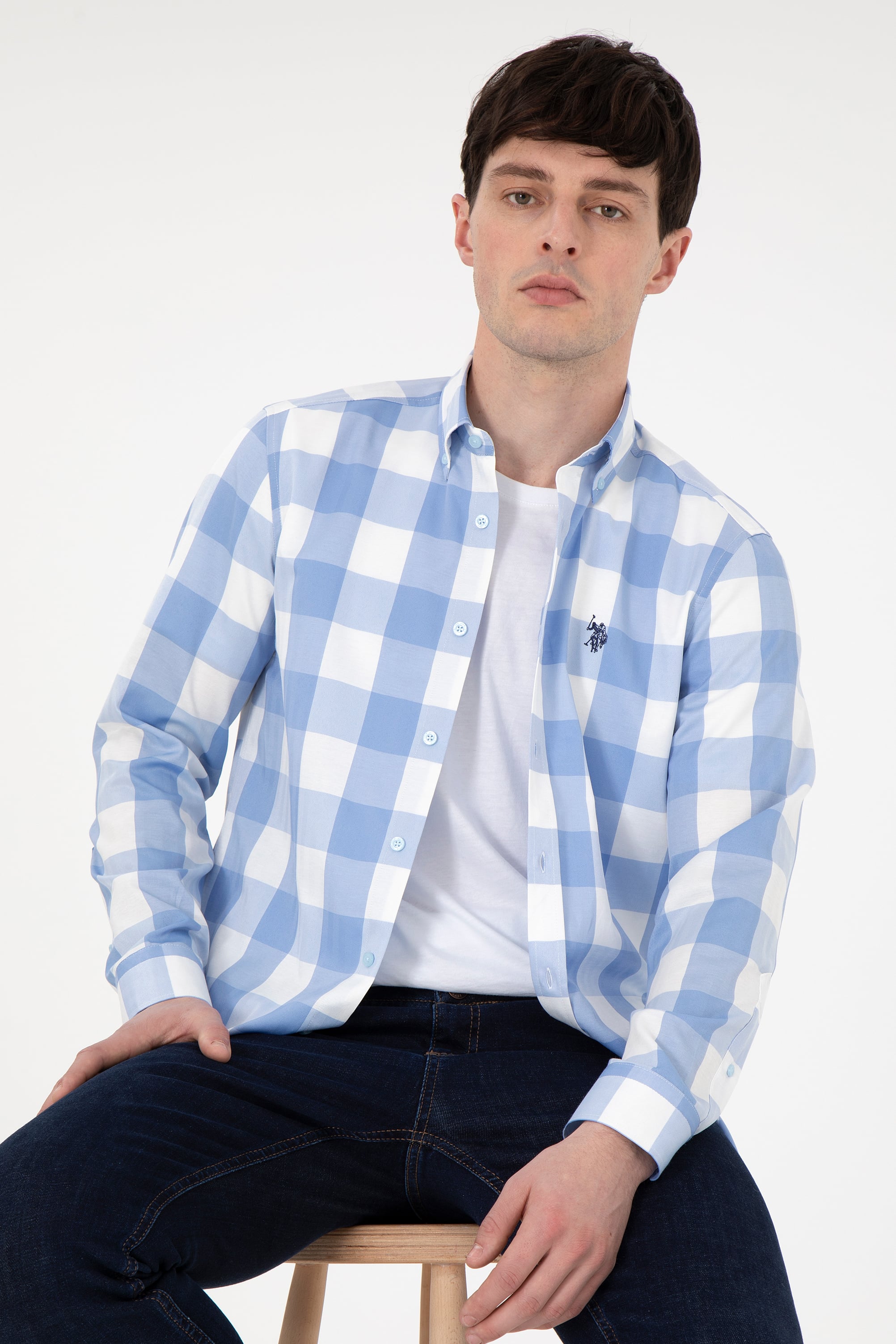 Açık mavi ve ekose desenleri ile öne çıkan uzun kollu erkek gömlek, şıklığı ve rahatlığı bir araya getirir. Ekose desenin klasik havası gömleği hem günlük hem de özel günler için ideal bir seçenek haline getirir. Regular fit kesimi, vücuda tam otururken rahat bir hareket özgürlüğü sunar. Düğmeli yaka tasarımı klasik görünüm kazandırırken, cepsiz tasarımı gömleğin sade ve modern bir çizgide kalmasını sağlar. Göğüs kısmında bulunan nakış detayı şık gömleğe ince bir dokunuş katar ve genel görünümü bozmadan ince etay oluşturur.