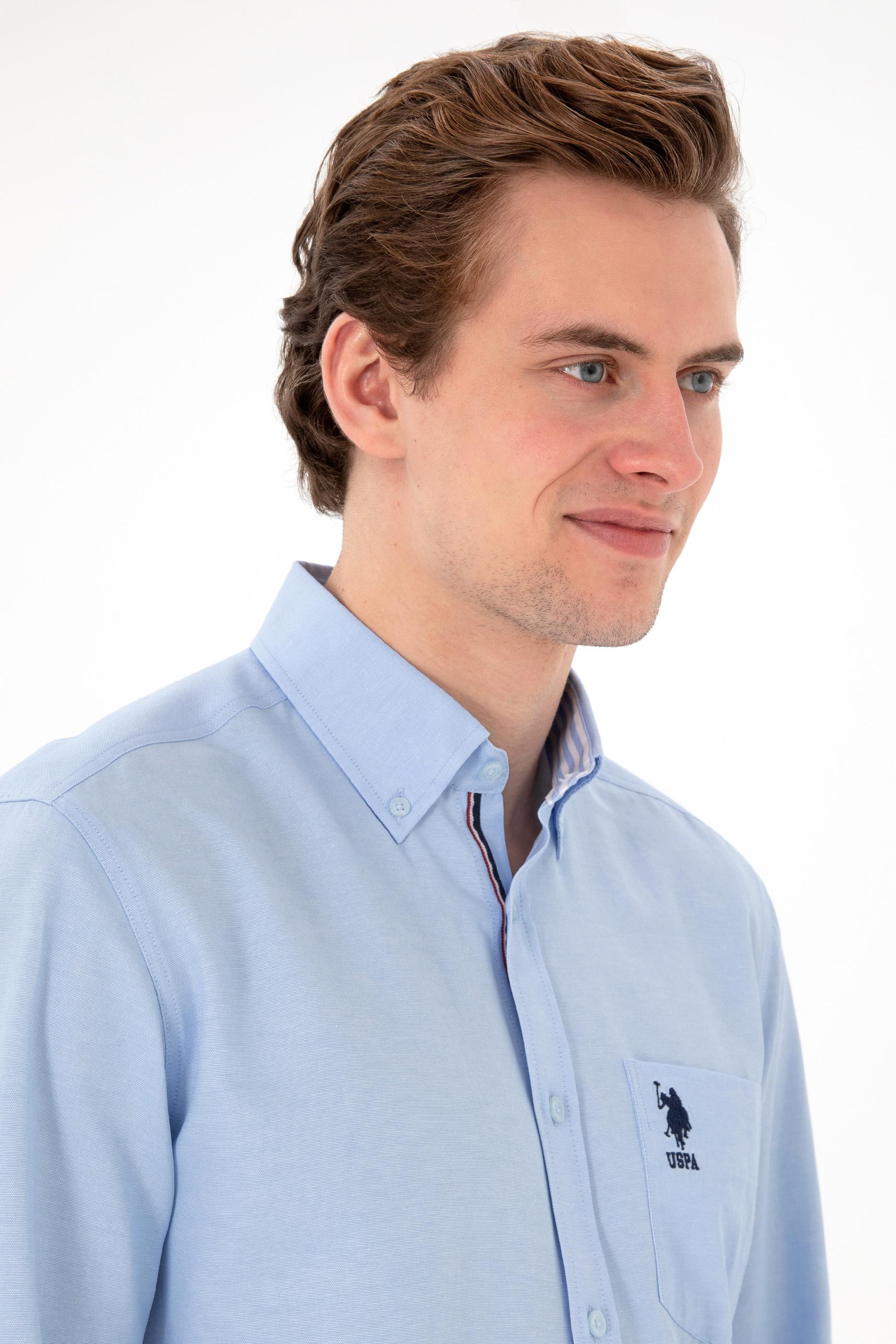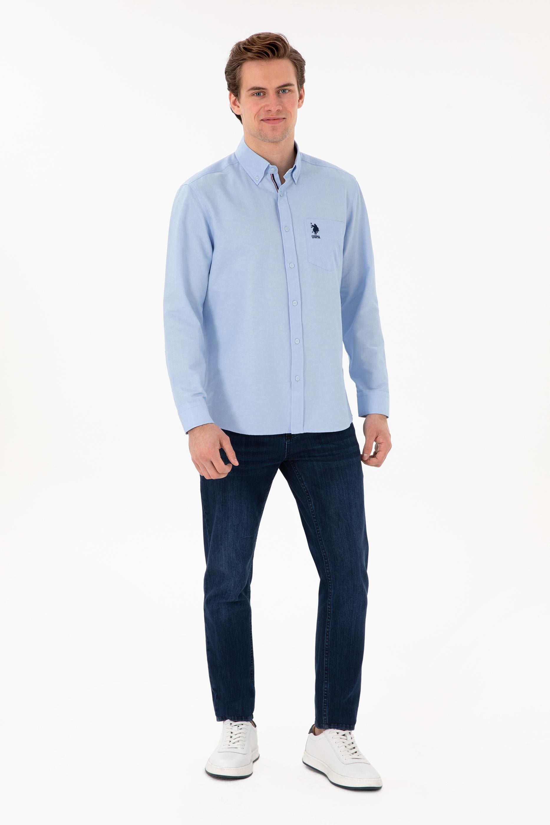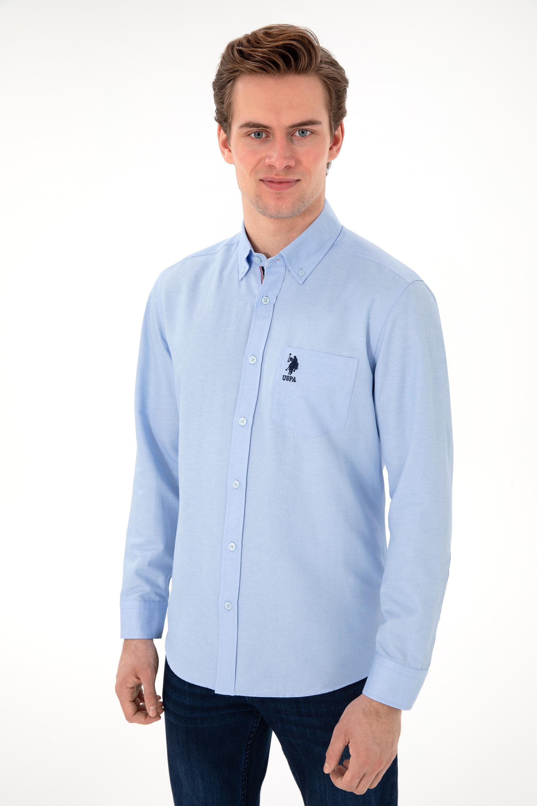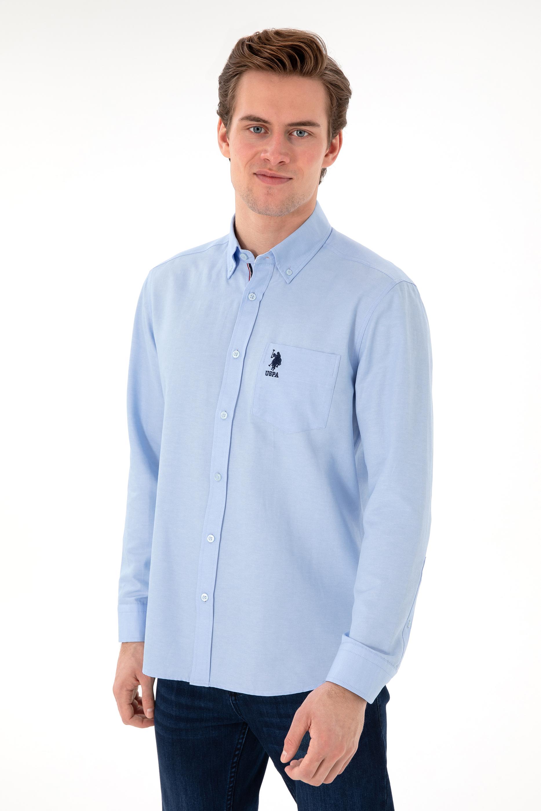 Erkek Açık Mavi Cepli Uzun Kollu Gömlek