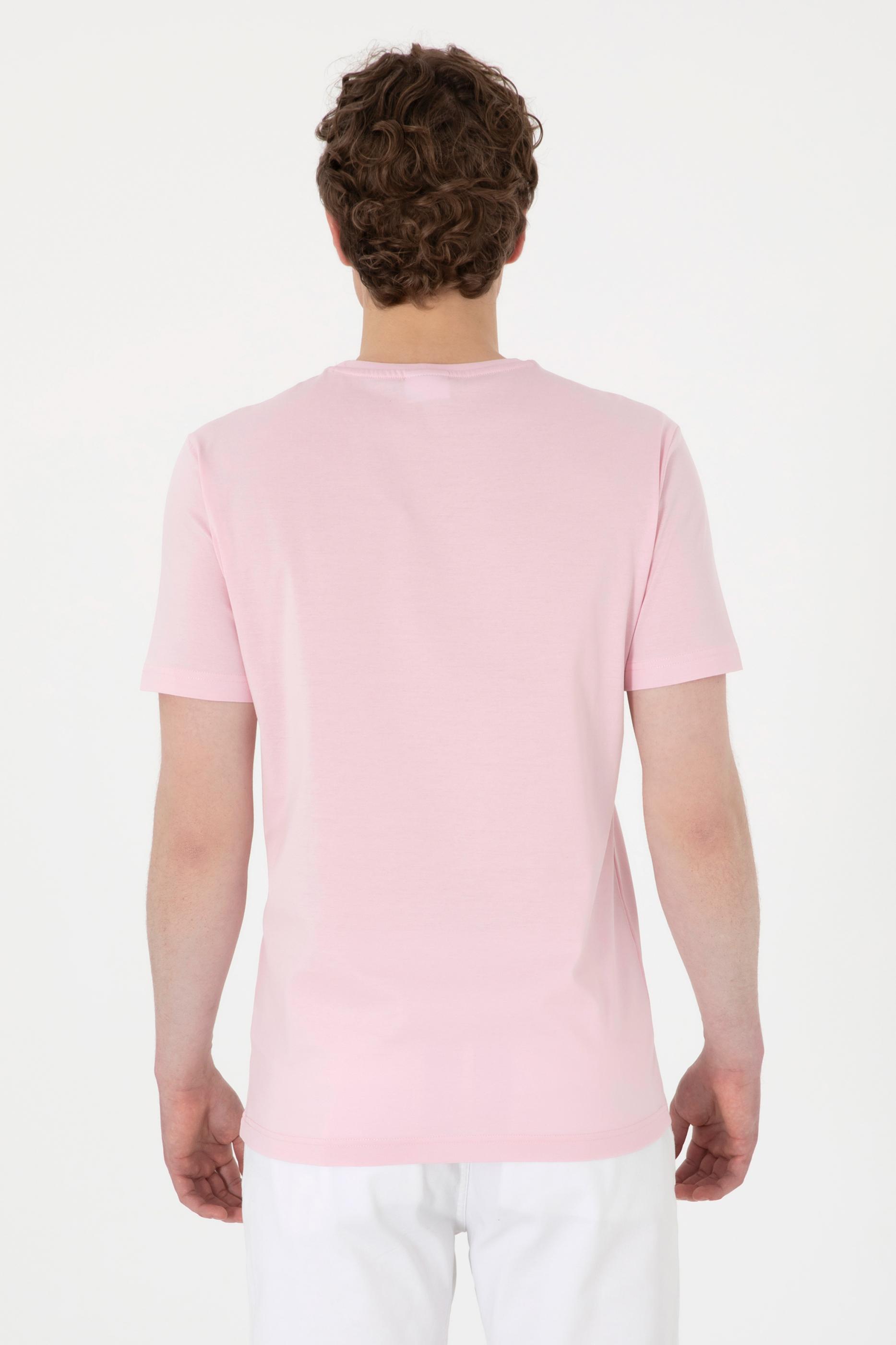 - Erkek Regular Fit Bisiklet Yaka Açık Pembe Basic Tişört