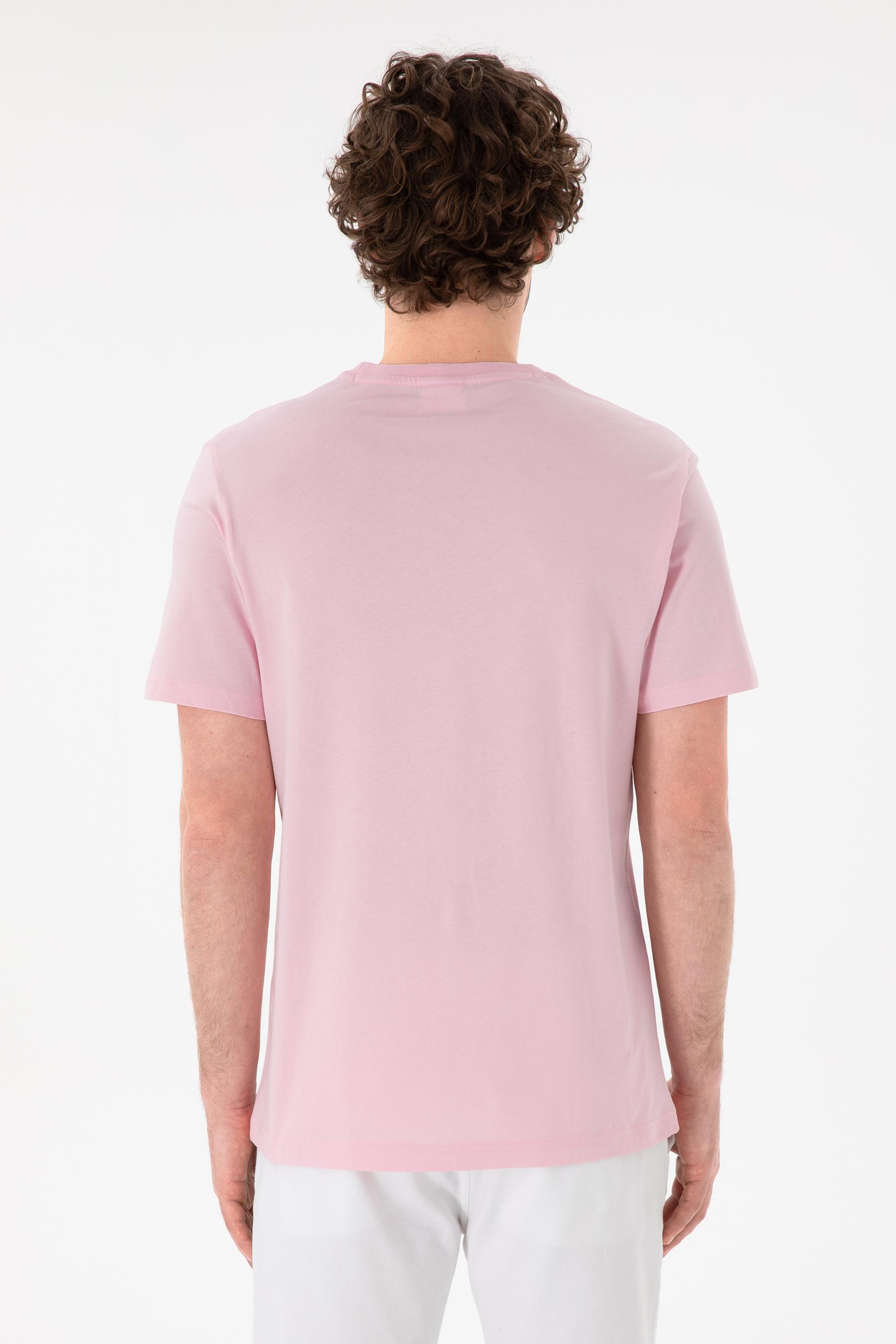 Erkek Regular Fit Bisiklet Yaka Açık Pembe Basic Tişört - 50305928226