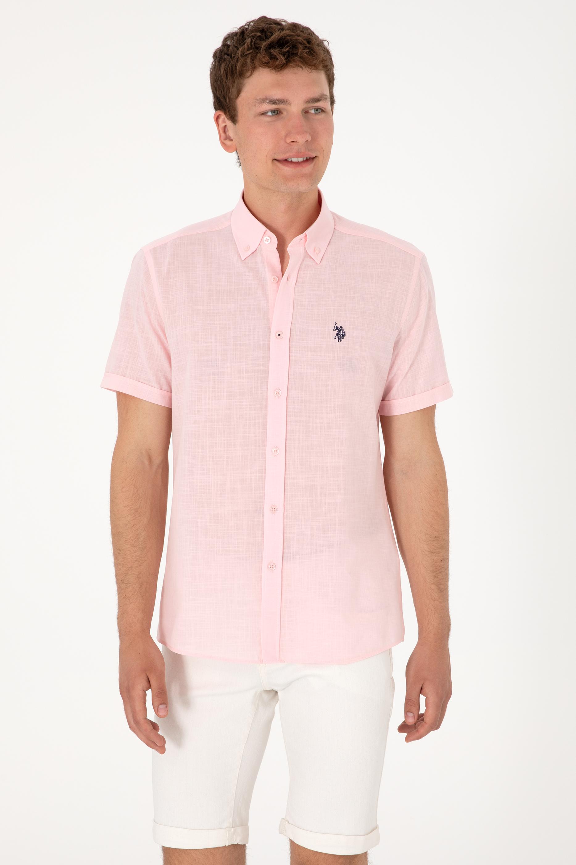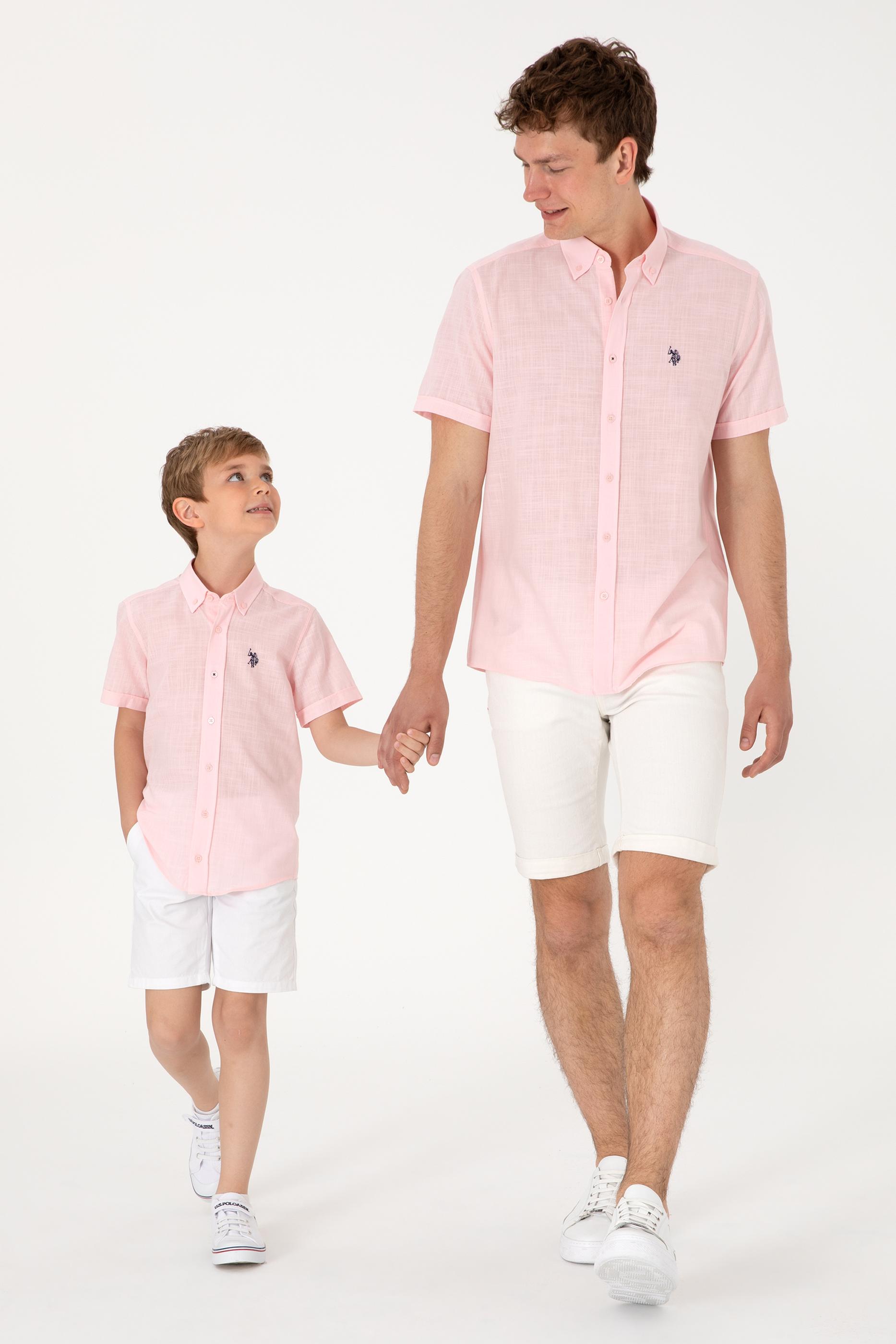 Erkek Açık Pembe Kısa Kollu Gömlek