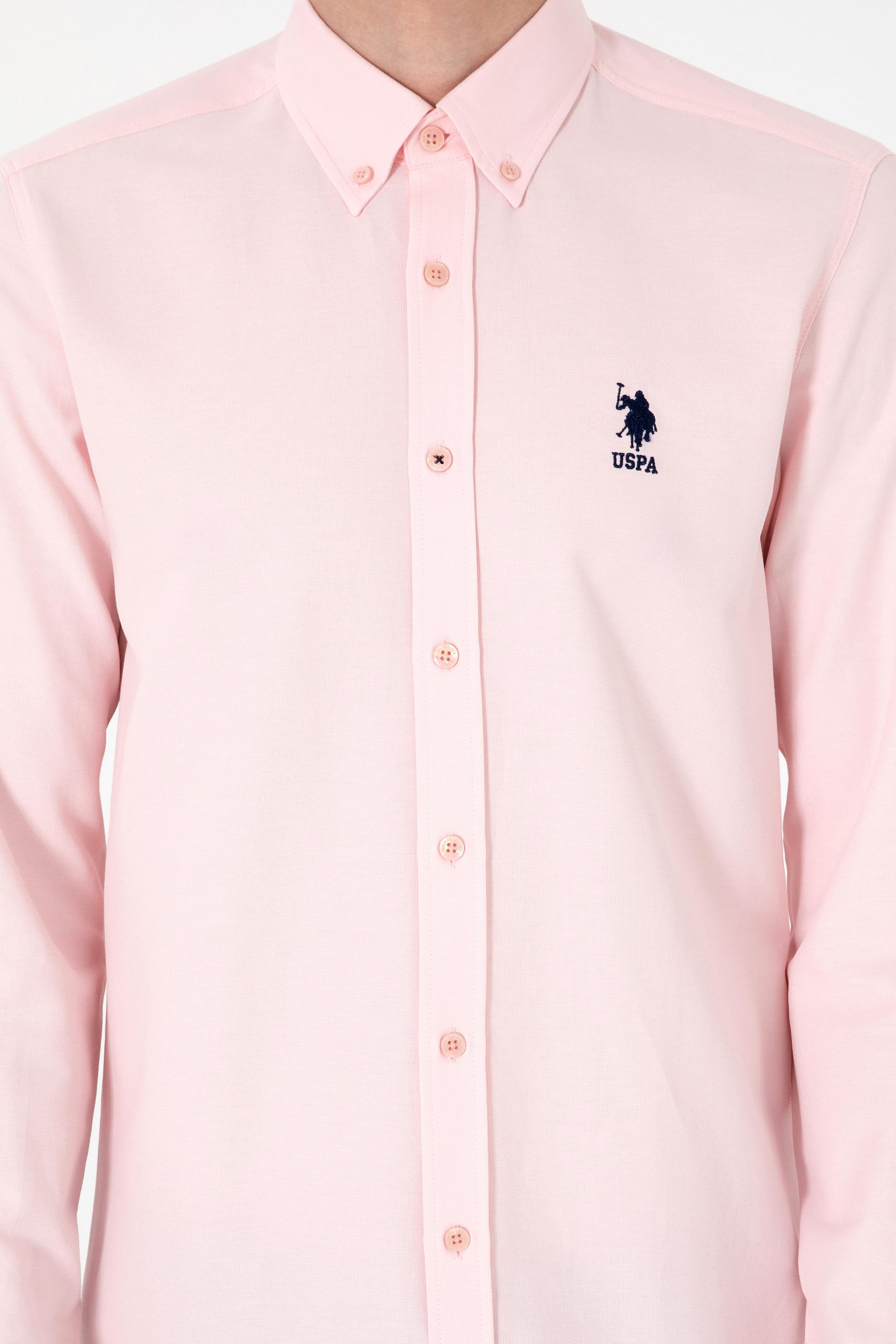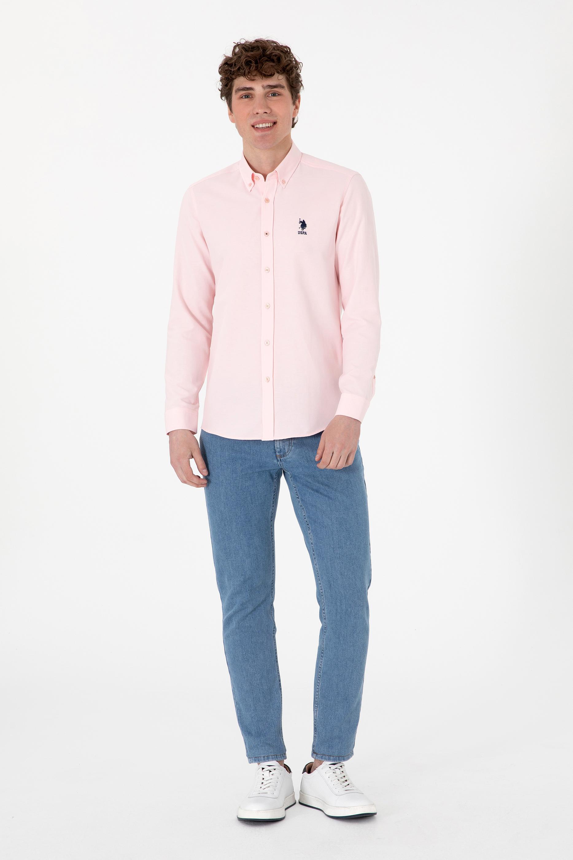 Erkek Açık Pembe Uzun Kollu Basic Gömlek