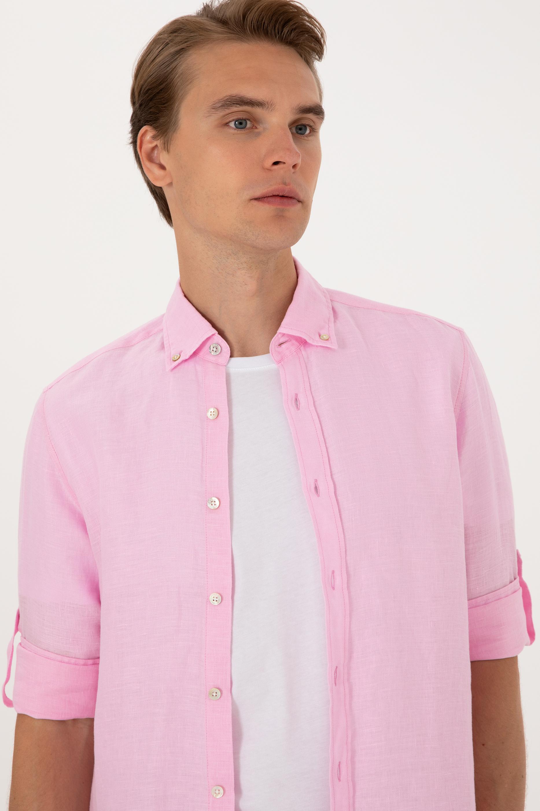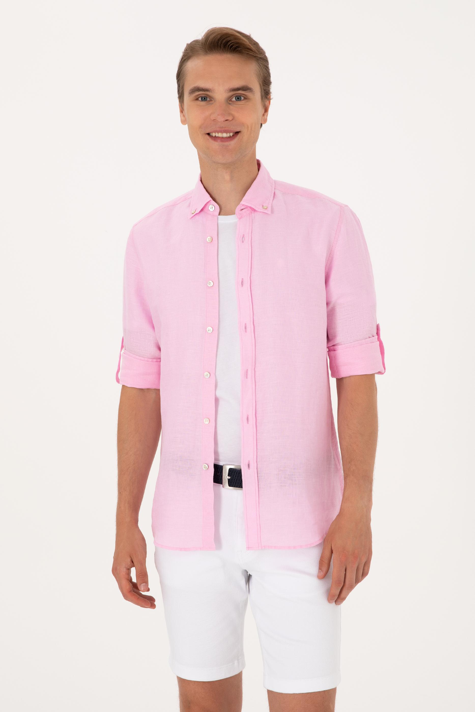 Erkek Açık Pembe Uzun Kollu Gömlek