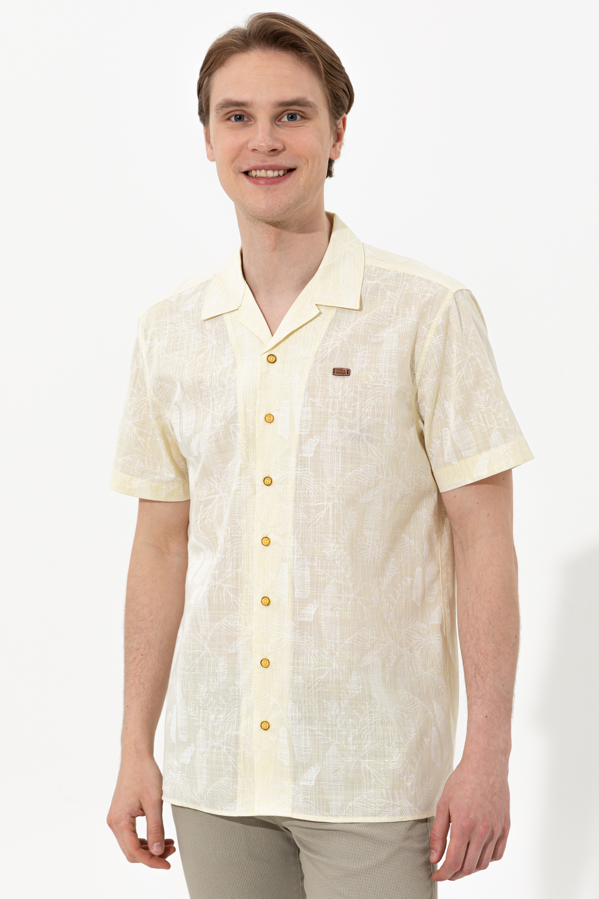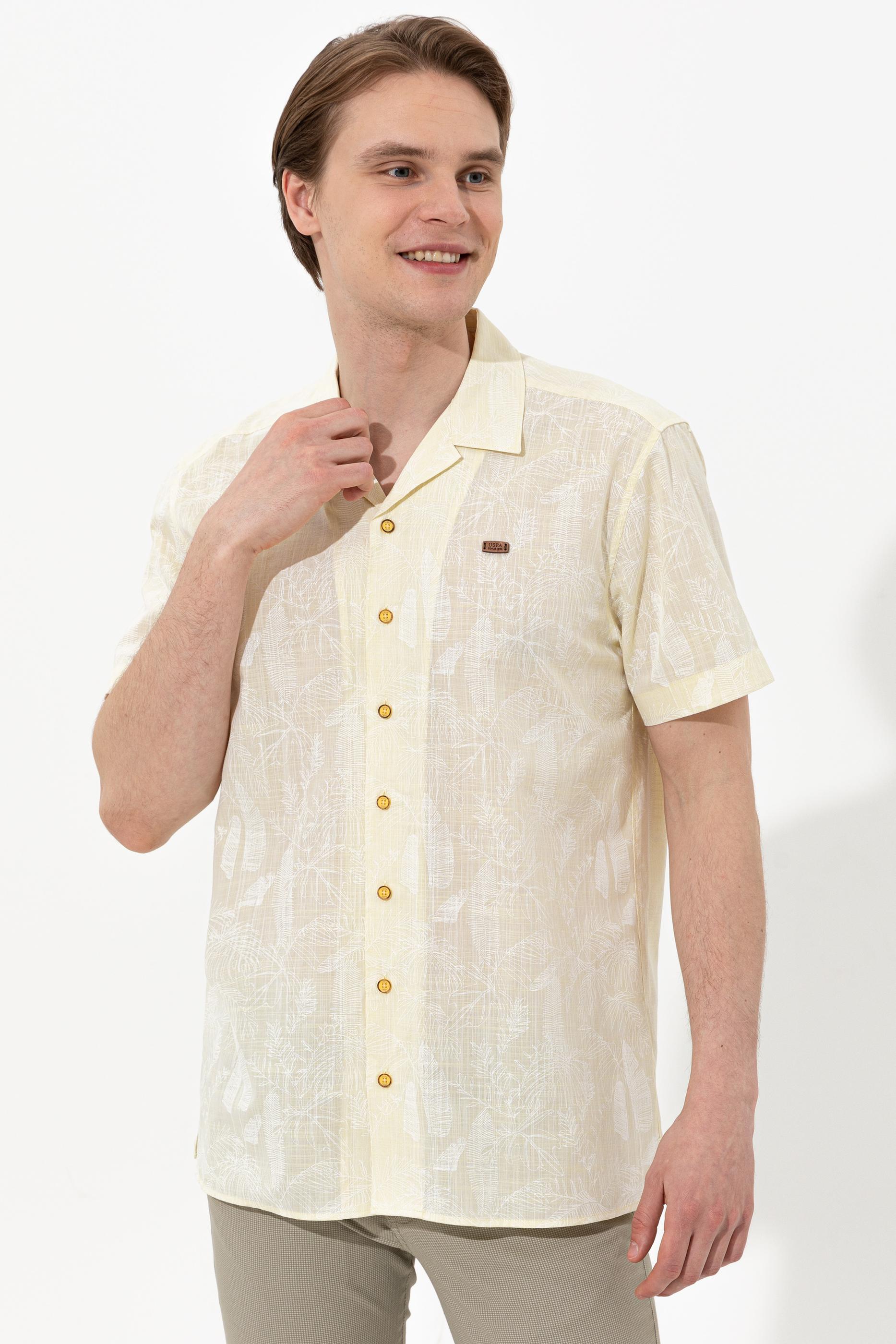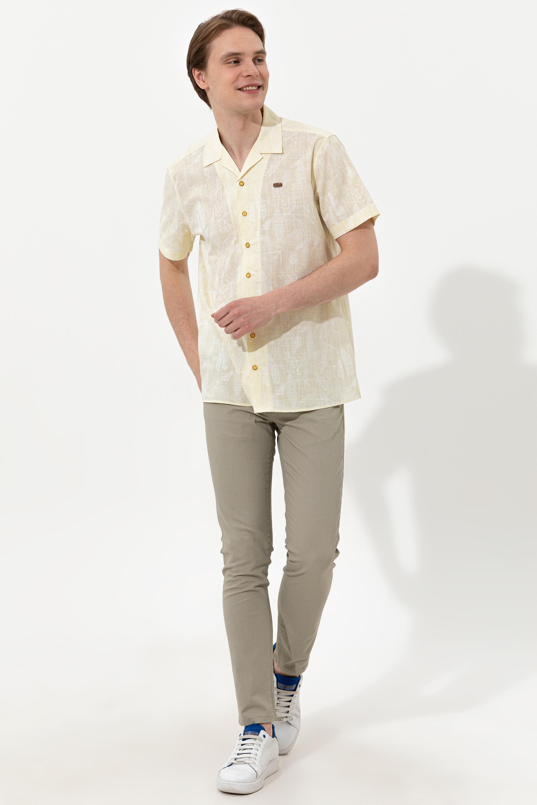Erkek Açık Sarı Kısa Kollu Gömlek