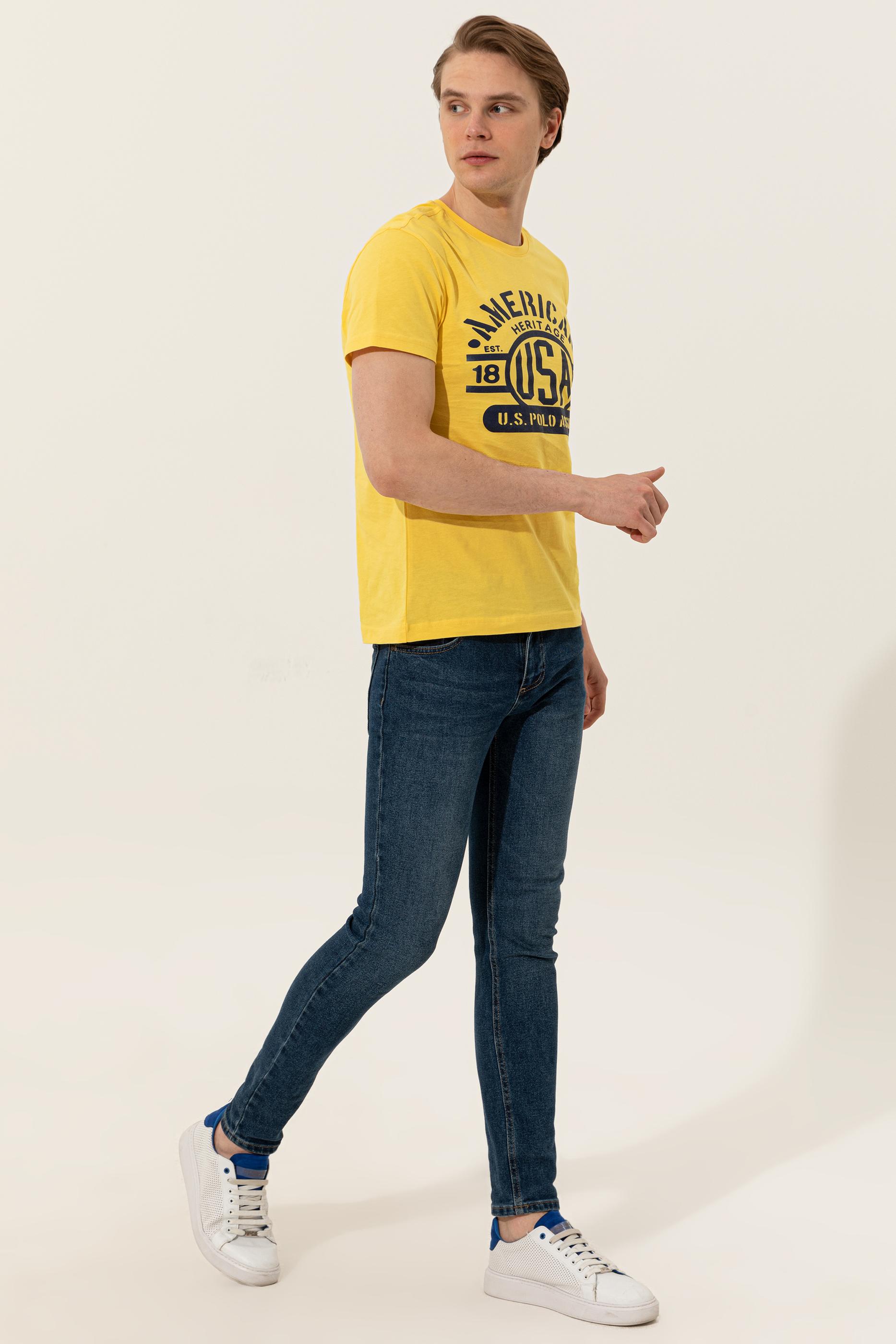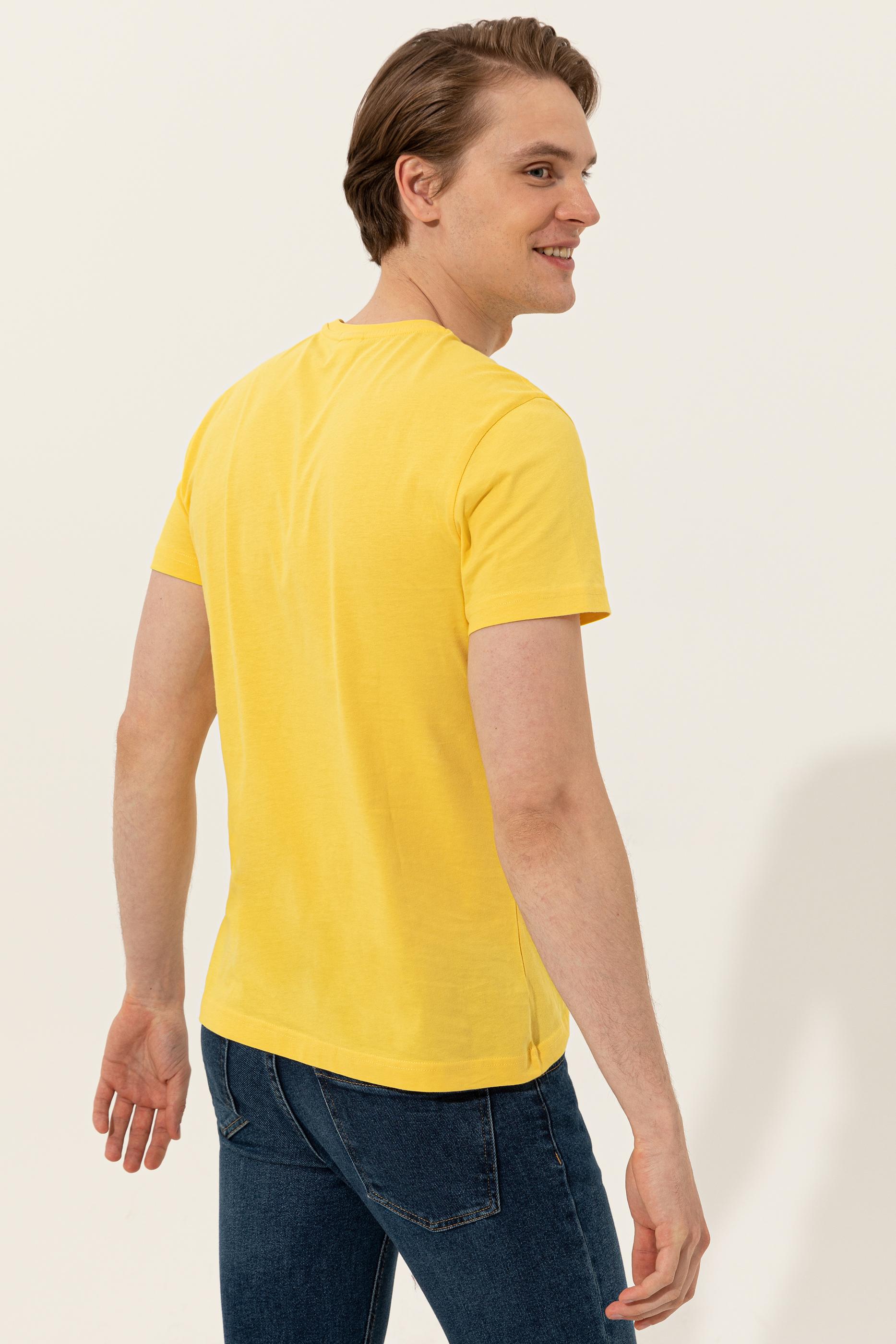 Kolay kombinlenebilen renge sahip, ön kısmında yazılı baskı bulunan slim fit bisiklet yaka erkek tişörtümüz formda görünüm isteyenlerin favorisidir.