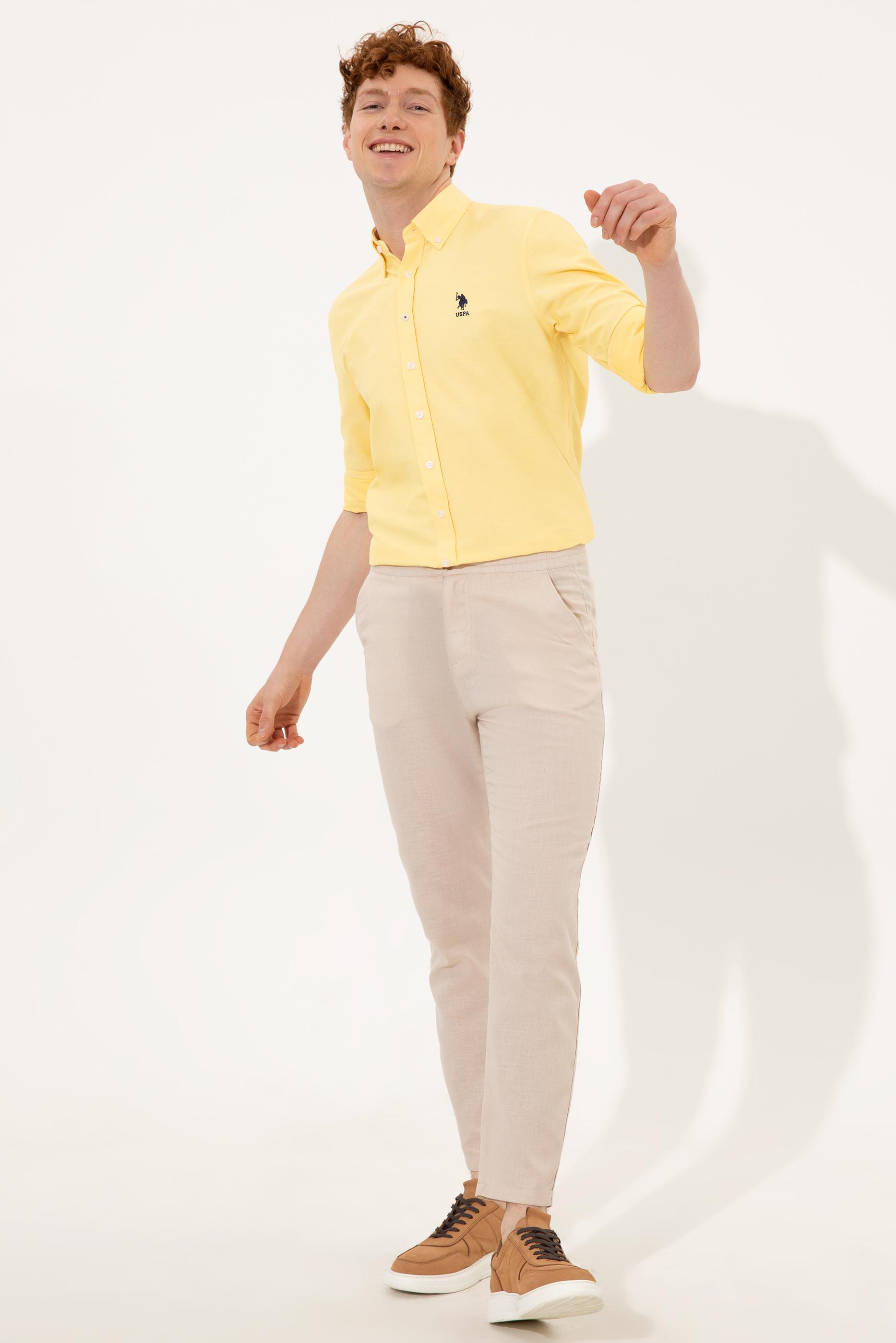 Erkek Açık Sarı Uzun Kollu Basic Gömlek