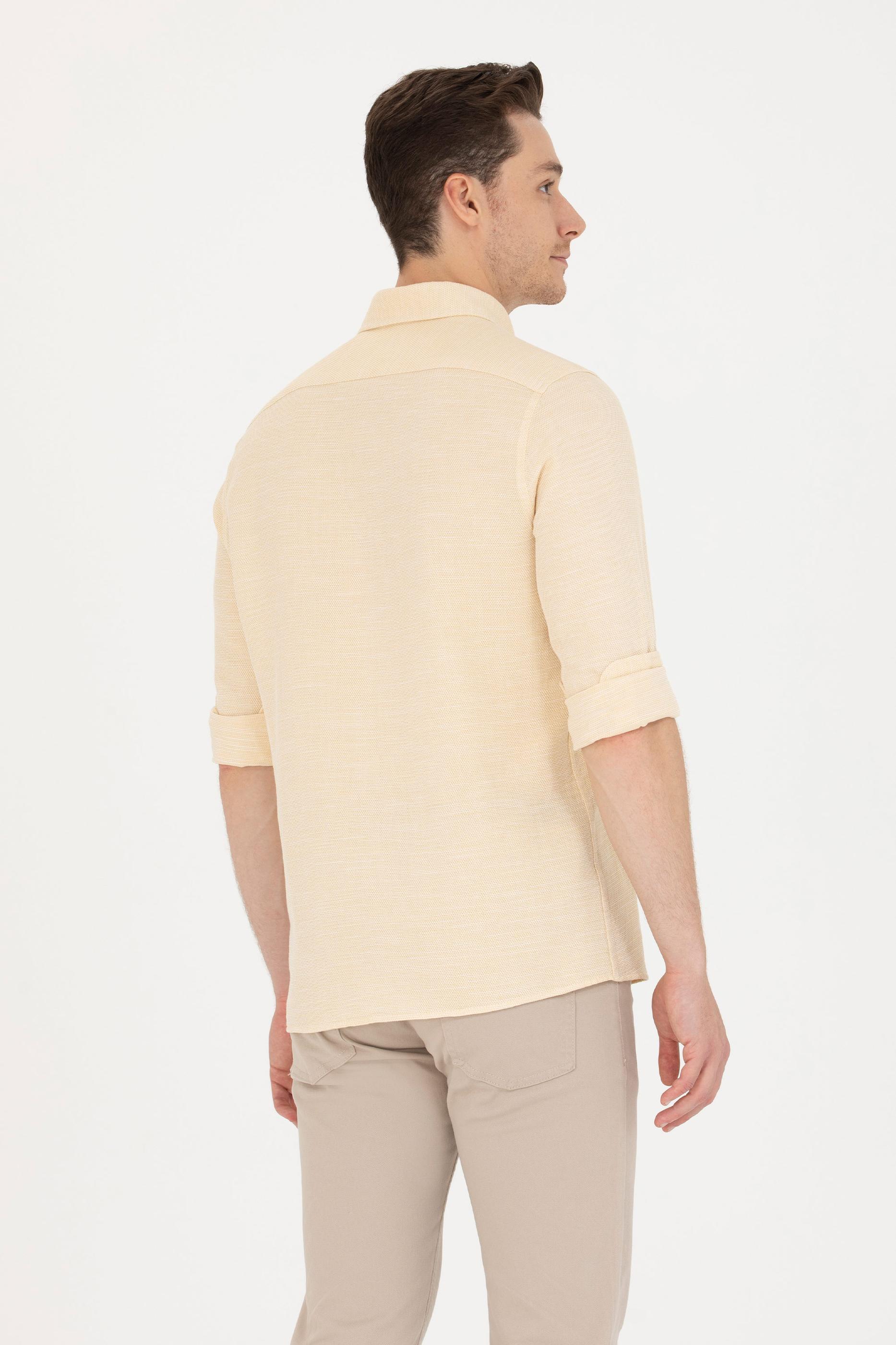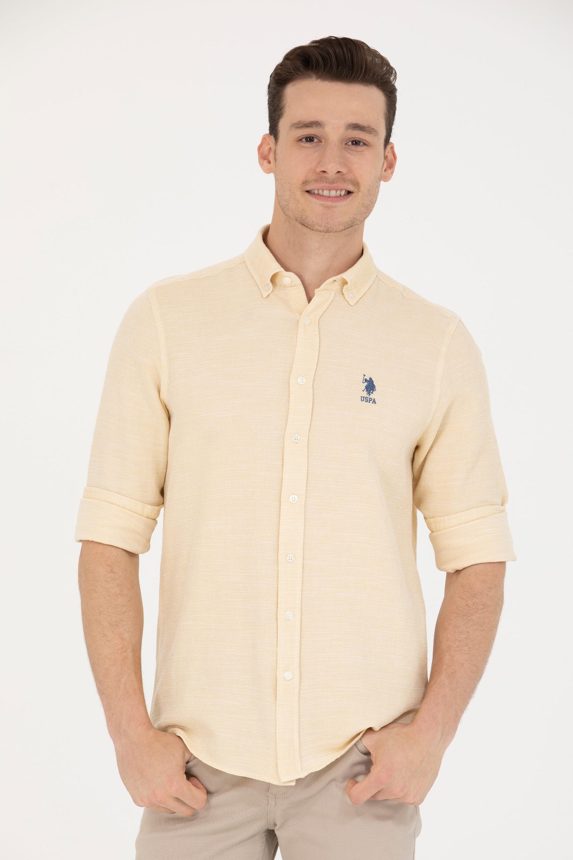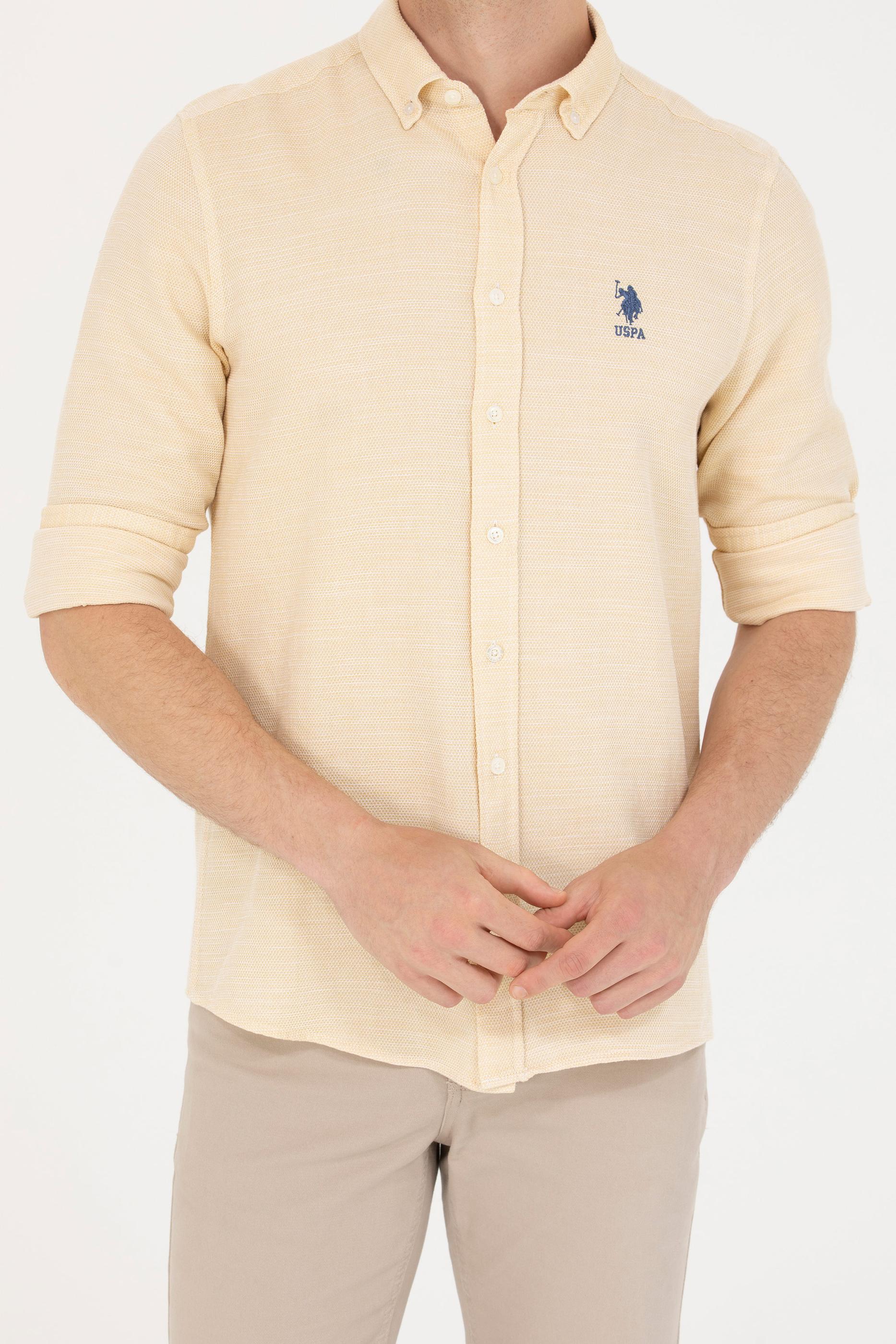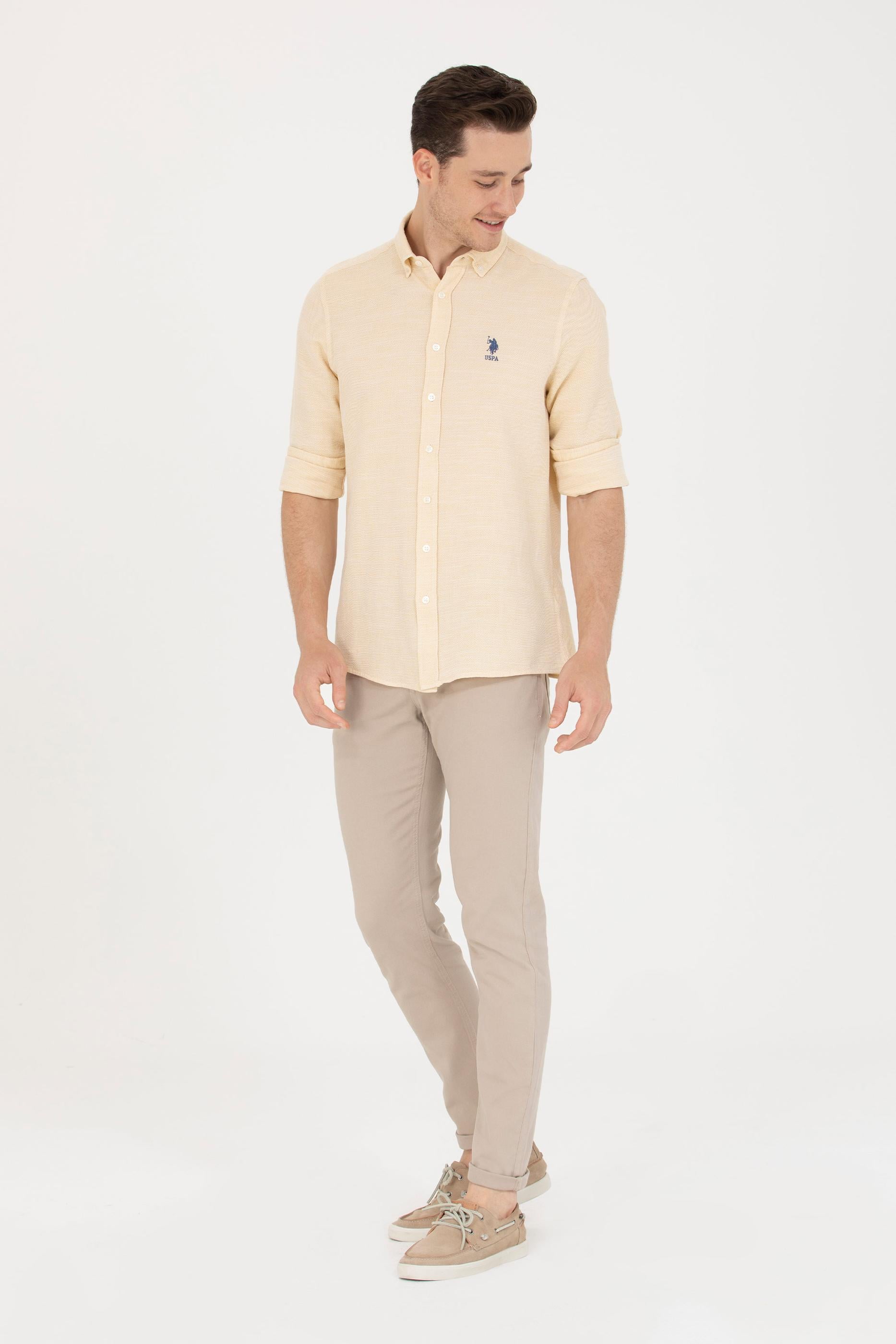 Erkek Açık Sarı Uzun Kollu Gömlek