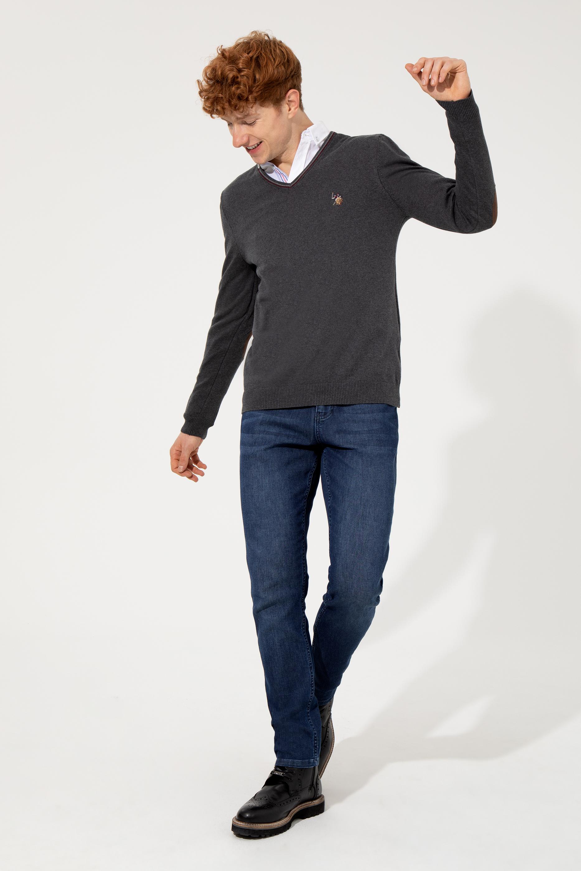 Erkek Antrasit V Yaka Basic Triko Kazak